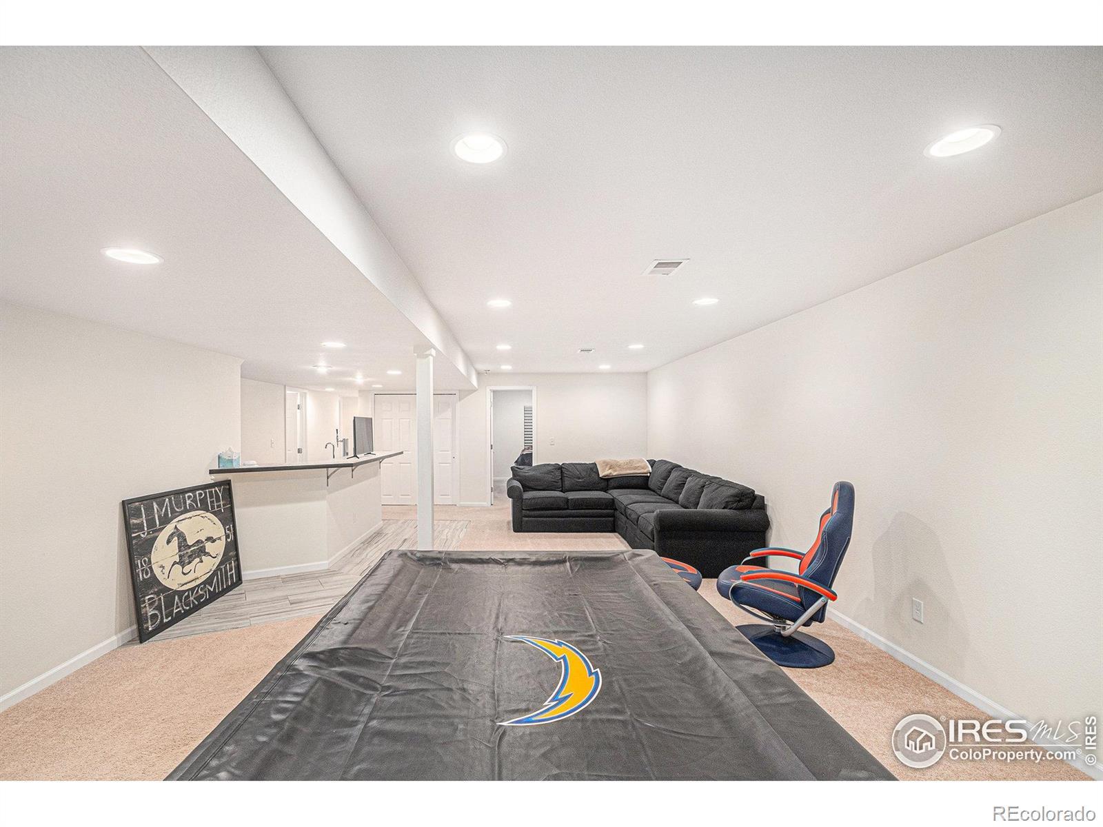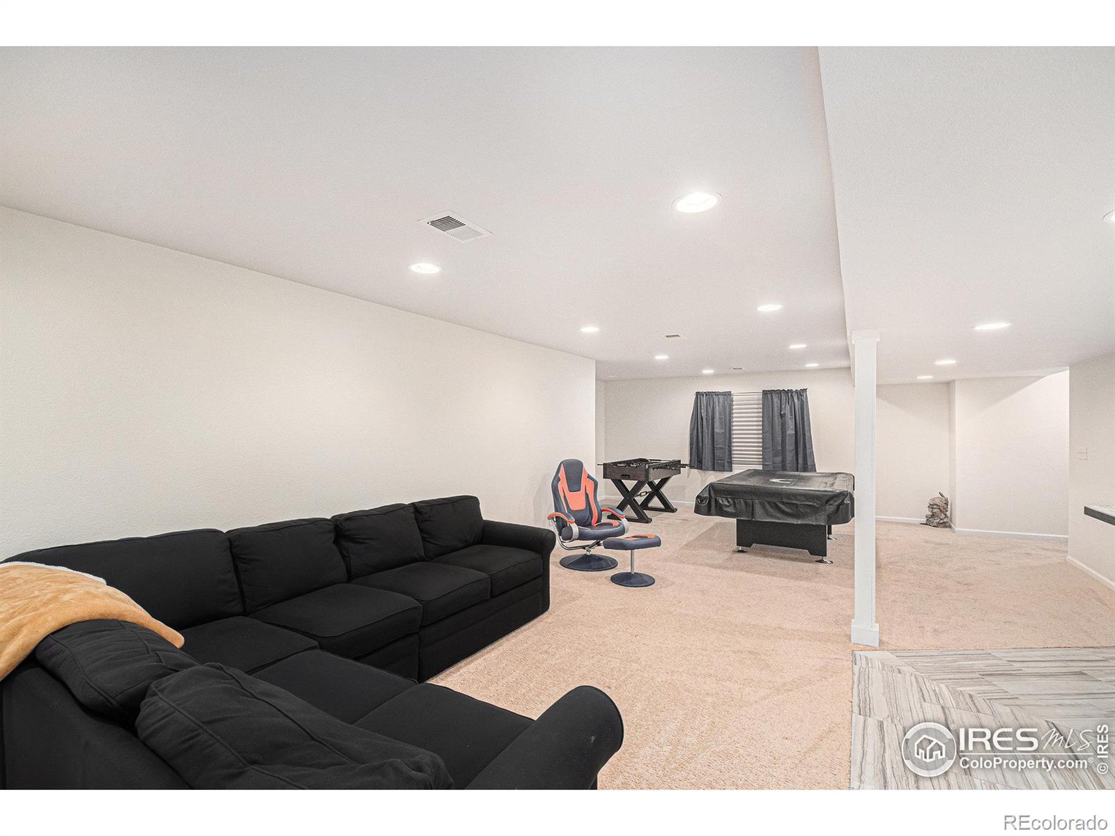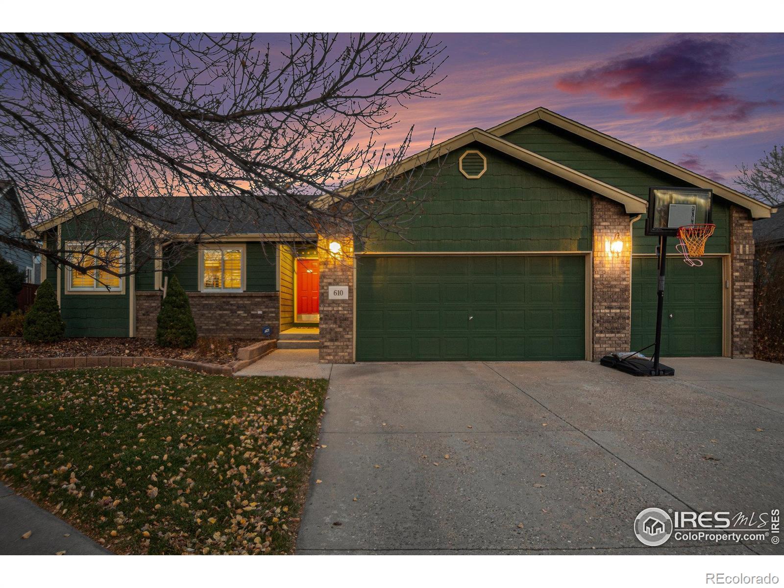 Just in time for the holidays! Enjoy this beautiful ranch home with a finished basement providing 5 bedrooms and 3 baths - room for everyone. Warm wood floors, high ceilings and gas fireplace make the living room a cozy and elegant space to relax. The dining room looks out onto the patio and expansive, fully fenced back yard. The spacious kitchen features stainless steel appliances, gas stove and abundant cabinets. Laundry, large pantry and garage access are conveniently located just off the kitchen. Primary bedroom with a large walk-in closet and 5 piece bath offer a private retreat. The basement rec-room features a large wet bar with a kegerator - perfect for entertaining! The 3 car garage has plenty of room for storage even after filling it with all the cars. The neighborhood park is just across the street with a playground and paths. You will love the location - close to shopping, dining, schools, the Loveland Sports Park and Medical Center of the Rockies.