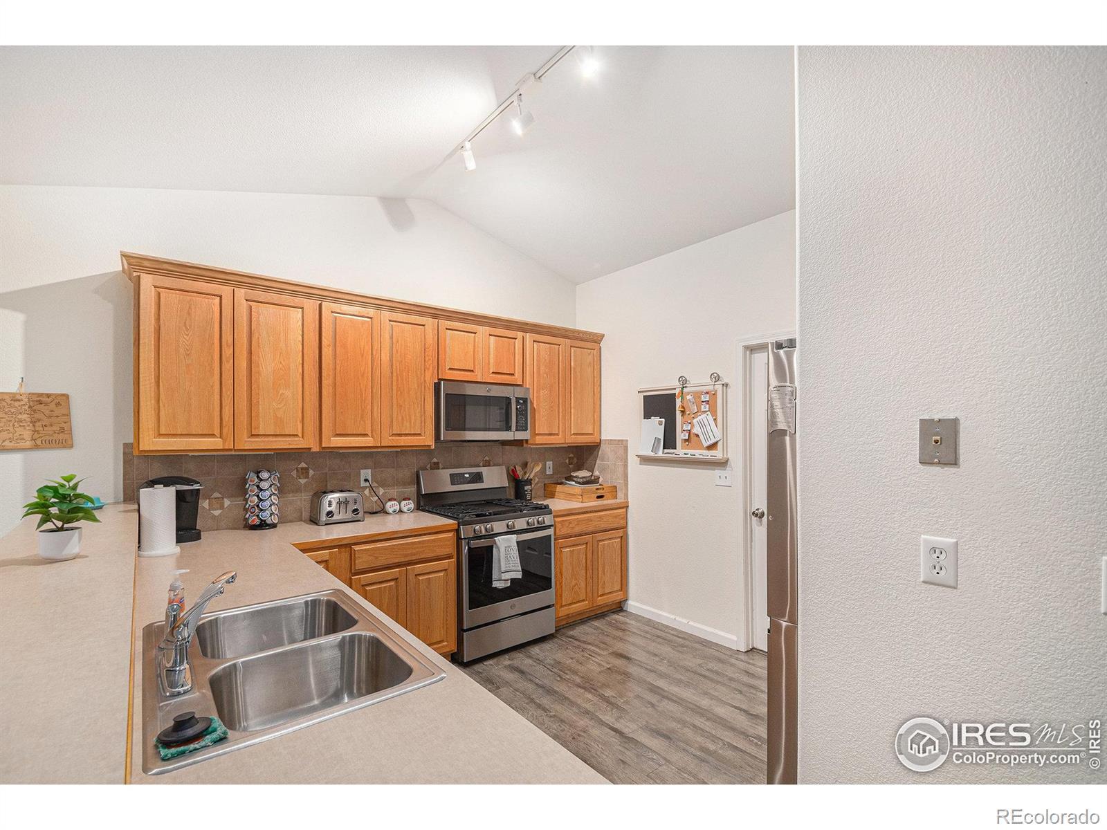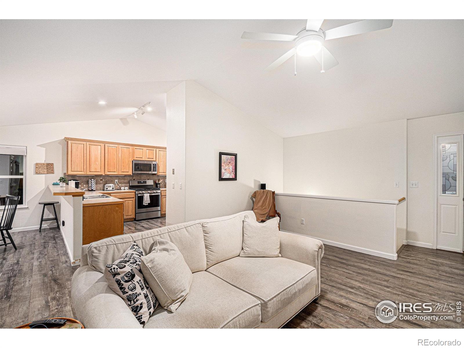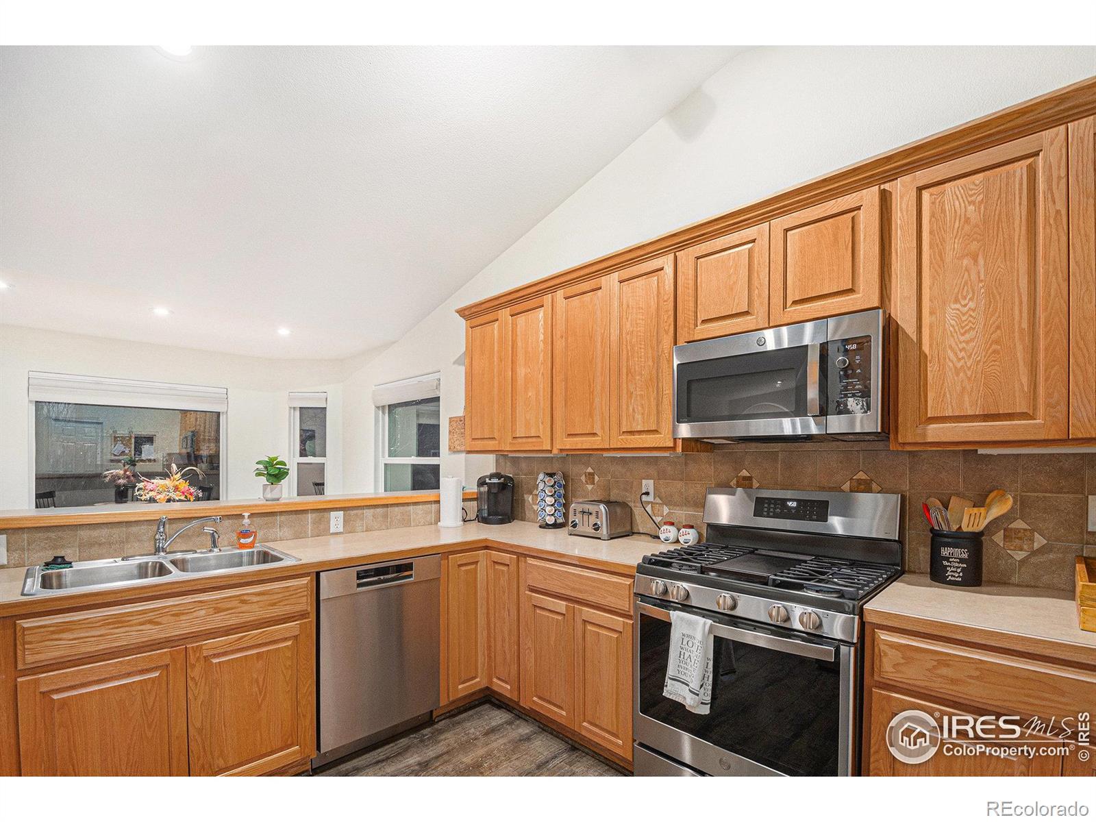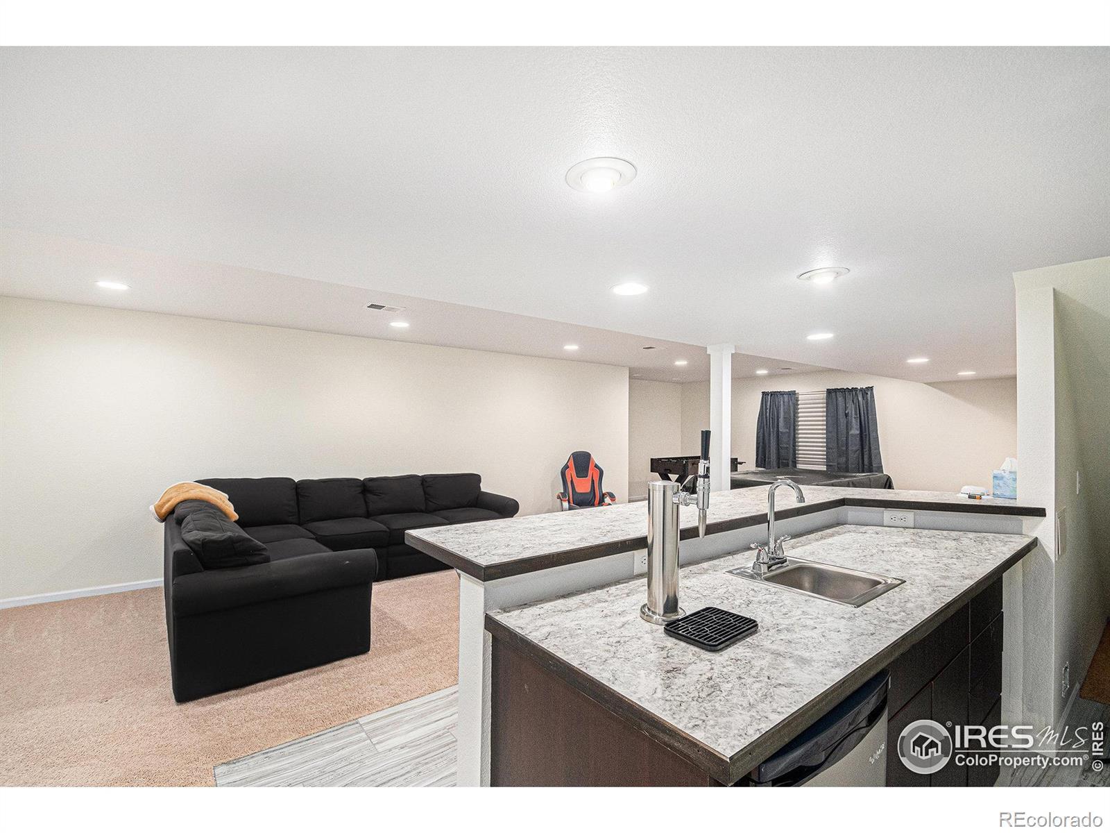 Just in time for the holidays! Enjoy this beautiful ranch home with a finished basement providing 5 bedrooms and 3 baths - room for everyone. Warm wood floors, high ceilings and gas fireplace make the living room a cozy and elegant space to relax. The dining room looks out onto the patio and expansive, fully fenced back yard. The spacious kitchen features stainless steel appliances, gas stove and abundant cabinets. Laundry, large pantry and garage access are conveniently located just off the kitchen. Primary bedroom with a large walk-in closet and 5 piece bath offer a private retreat. The basement rec-room features a large wet bar with a kegerator - perfect for entertaining! The 3 car garage has plenty of room for storage even after filling it with all the cars. The neighborhood park is just across the street with a playground and paths. You will love the location - close to shopping, dining, schools, the Loveland Sports Park and Medical Center of the Rockies.