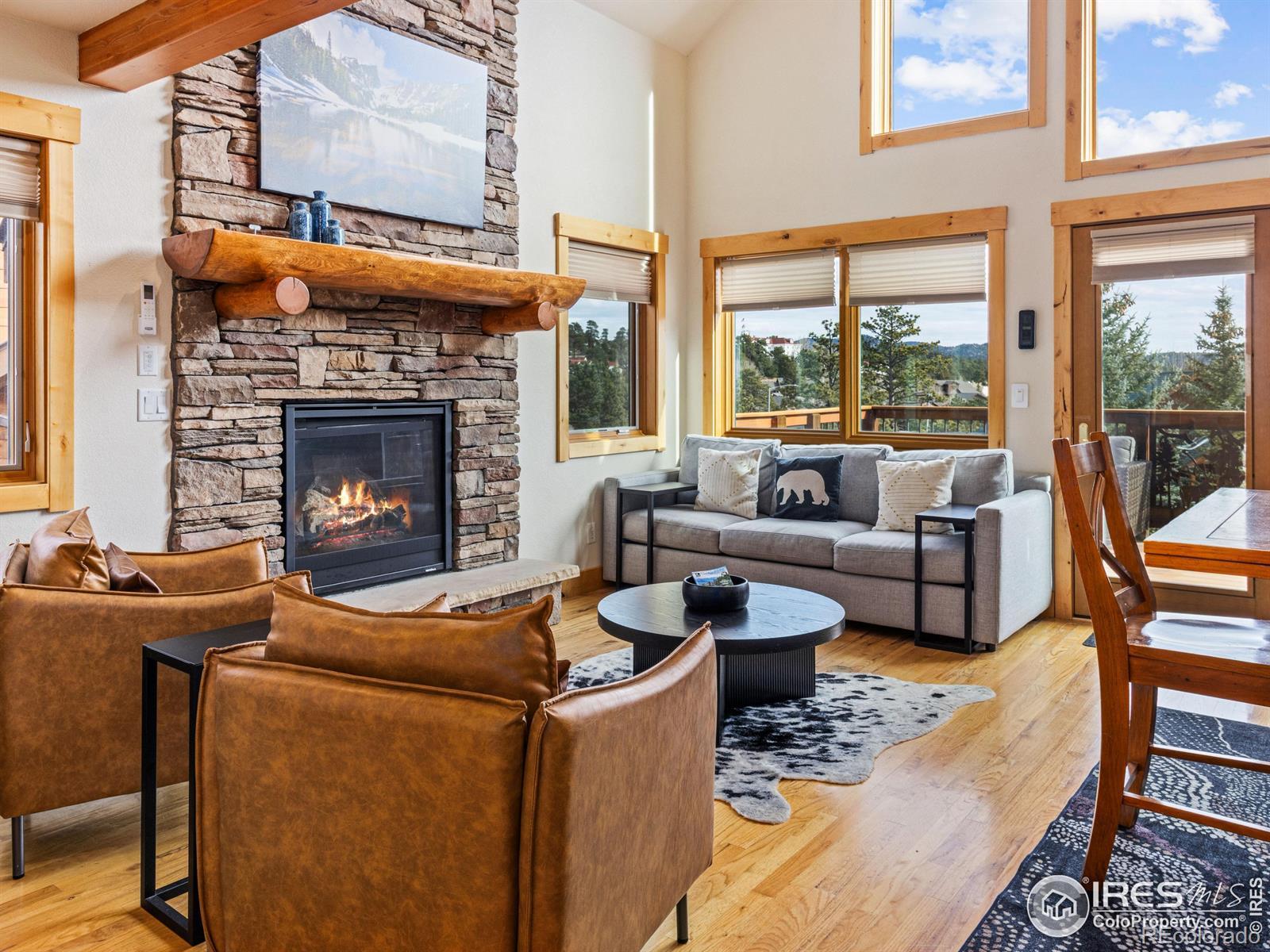 Beautiful, fully furnished Wonderview Village townhome, with STR license(!!!). This successful vacation rental offers easy living w/ open floorplan, vaulted ceilings, gourmet kitchen w/ granite counters, 3 bedroom suites, & beautiful fireplace. Enjoy entertaining on the spacious deck with Lumpy Ridge and Stanley Hotel views. Five-minute walk to downtown Estes & The Stanley for Micro-Brews, eateries, shopping, and Salt-water Taffy! Each of the two main entrances to Rocky Mountain Nat'l Park are just up the road. This well maintained townhome has high-end finishes, granite, hardwood floors, large deck, spacious floor plan, cathedral ceilings, & new roof. Perfect full-time home, weekend retreat, or turnkey income property. Lake Estes and the Lake Trail is also walkable or a quick drive. Lumpy Ridge trailhead is 2 minutes away. You'll have easy access to Rocky Mountain National Park, hiking, biking, fishing & enjoying the things that make Estes Park the special mountain town it is. This beautifully maintained townhome is truly designed for enjoying yourself while living the mountain dream. This could be everything you've been looking for in an Estes home. There's hiking in the morning & wining & dining in the evening. You will cherish your time spent at your Estes Home!