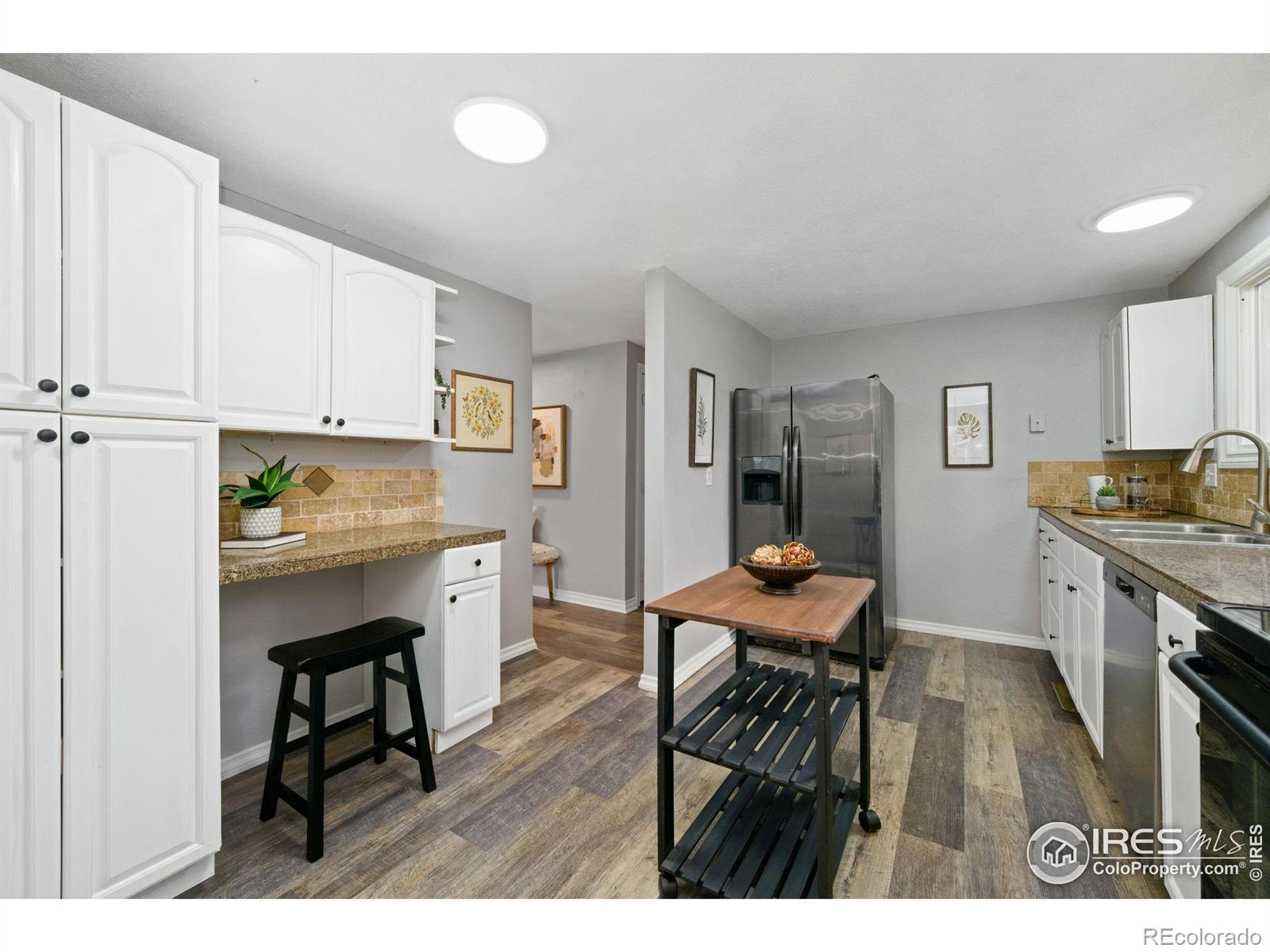 This one is worth a look! This home is move-in ready! New furnace, new hot water heater, new flooring, newer windows, new window blinds, new bathroom vanities, interior recently painted, all kitchen appliances + washer and dryer included. Backyard has a nice patio for entertaining. Great location with quick access to the Spring Creek Trail and close to Horsetooth Reservoir.
