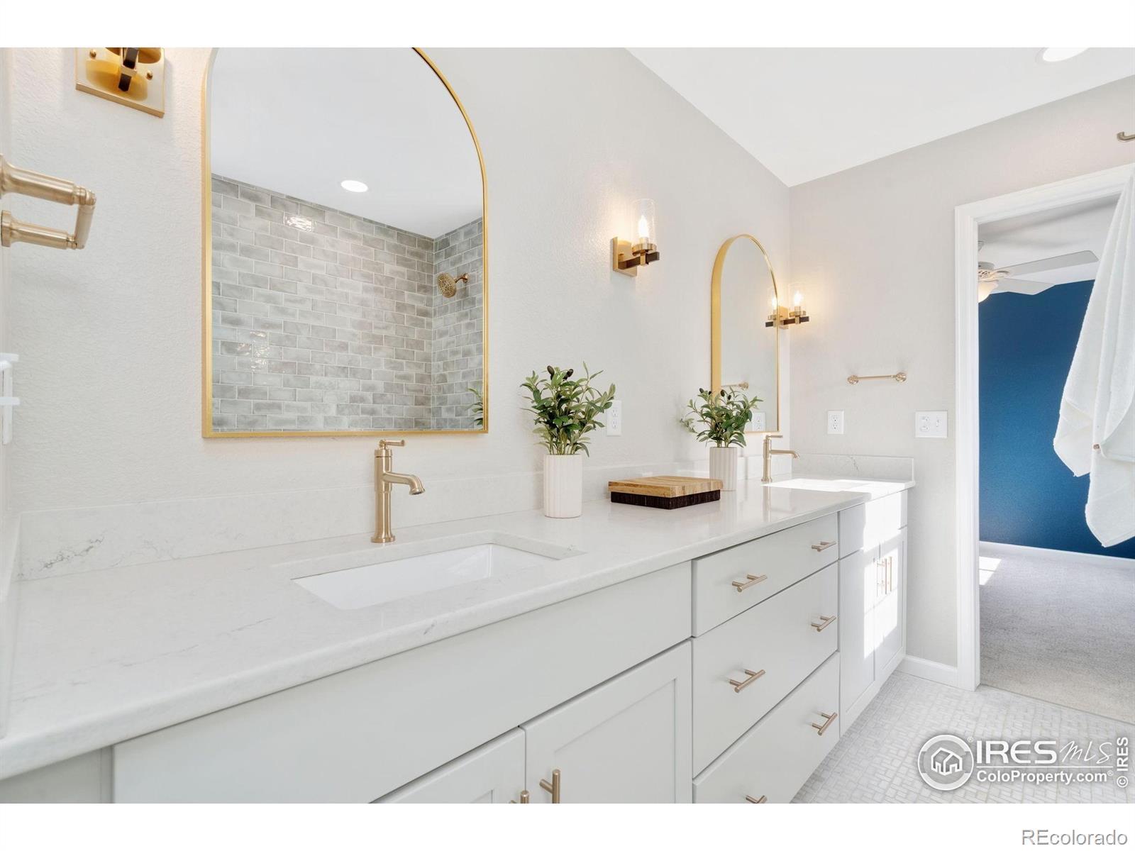 Exquisitely upgraded and impeccably maintained, this southwest Loveland home blends refined living with thoughtful design and exceptional craftsmanship. The sun-filled main level features an inviting great room with southern exposure windows and gas fireplace, a beautifully refreshed kitchen with updated finishes, 42" cabinetry, stainless-steel appliances, a large center island, and an oversized eat-in layout. A generous walk-in pantry adds exceptional convenience. A newly finished lower-level retreat offers a private sanctuary for guests, featuring a bedroom, spa-inspired bathroom with a luxurious steam shower, custom cabinetry, full-size sink, dishwasher, and refrigerator/freezer-ideal for extended stays or visiting family and friends. Upstairs, the expansive primary suite serves as a true haven, complete with a sitting room or yoga space, dual walk-in closets, and a lavish 5-piece bath enhanced with premium fixtures. Two additional bedrooms share a well-appointed bathroom, complemented by a bonus room/bedroom and dedicated laundry area. Newer carpet and fresh interior paint throughout provide a crisp, refined finish. Modern improvements elevate comfort and peace of mind, A serene sunroom overlooks the large rear yard and open space, creating the perfect setting to unwind. Outside, the almost 1-acre lot provides great space for entertaining; accented with concrete patios with covered areas and play court. The Class IV roof and newly replaced shed siding offer durability and long-term value. Outbuildings are permitted with Architectural Approval. Situated in a quiet, desirable neighborhood with easy access to parks, trails, and top Loveland amenities, this move-in-ready home delivers a rare blend of luxury, comfort, and thoughtful upgrades throughout.