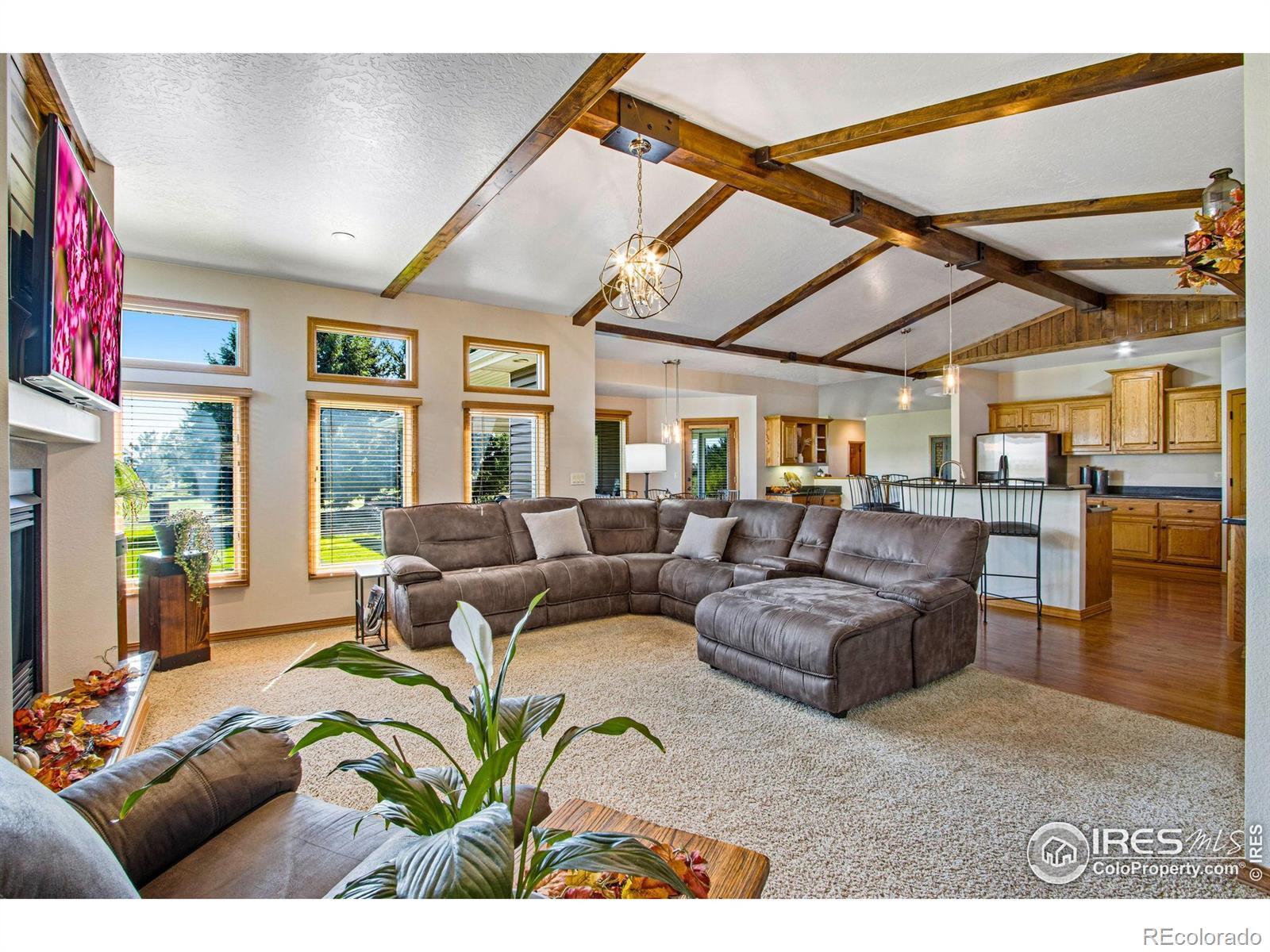 Pre-Inspected with 1 Year Gold Plan Blue Ribbon Home Warranty. This sprawling ranch sits on a 2.53-acre lot and features nearly 6,000 total square feet with 5,829 finished. The property includes an oversized 628 sq. ft. attached garage plus a 1,560 sq. ft. detached RV/Boat/Toy garage/shop. Incredible finishes inside and out. The main level offers a spacious foyer, formal dining, formal living, laundry room, great room with gas fireplace, three guest bedrooms (one easily used as an executive office), and a primary suite with retreat, walk-in closet, and five-piece bath. The kitchen boasts cityscape cabinets, granite slab countertops, a large center island, pantry, and stainless-steel appliances. The professionally finished basement includes three recreation spaces, a family room with a second gas fireplace, a flex room, and two additional bedrooms. Two high-efficiency furnaces, two water heaters, two AC units, and many more upgrades throughout, including hardwood floors, vaulted ceilings, iron railing, tile, six-panel doors, and a premium lighting package. The exterior features mature landscaping, a front courtyard, and a large covered backyard patio with beautiful lake views, sprinkler/drip system, outdoor bar and water feature. There is plenty of room for additional flower or vegetable gardens. The west-facing front provides plenty of natural sunlight and snow melt for the driveway, plus stunning nightly sunsets, while the east-facing back offers cool summer shade, lake views, and breathtaking sunrises. Call today for a detailed list of features, a floor plan, or to schedule a private showing.