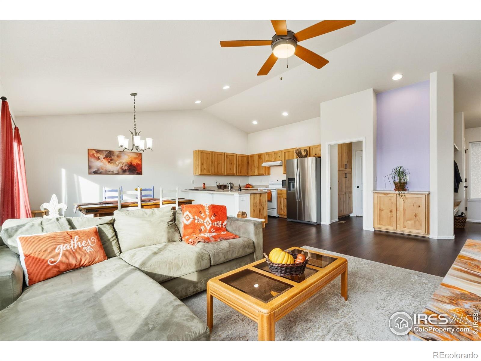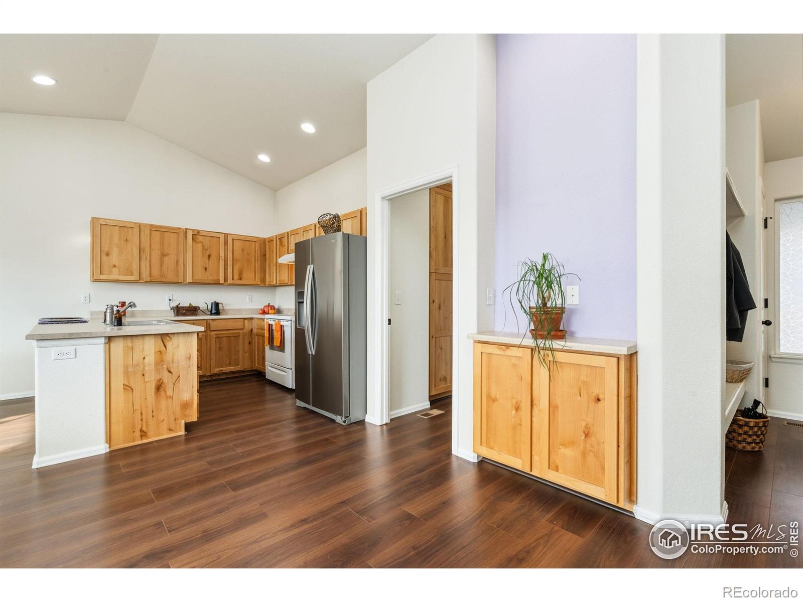 Welcome to this clean and well maintained home! Bright and open floorplan has vaulted ceiling in living room with LVP flooring. Open kitchen has breakfast bar, beautiful knotty alder cabinets and built in custom pantry. Spacious primary bedroom has 6x11 walk-in closet, and large attached 3/4 bath with double sink vanity. Full unfinished basement has egress windows that are partially above grade allowing for direct sunlight. It is a fantastic blank-slate for adding more finished square footage and has bath rough in. Backyard has a composite deck with a fully fenced yard and a sprinkler system. Lot is positioned for long view to South. Neighborhood has several parks. Stroll to Plum Park and relax while the kids play.