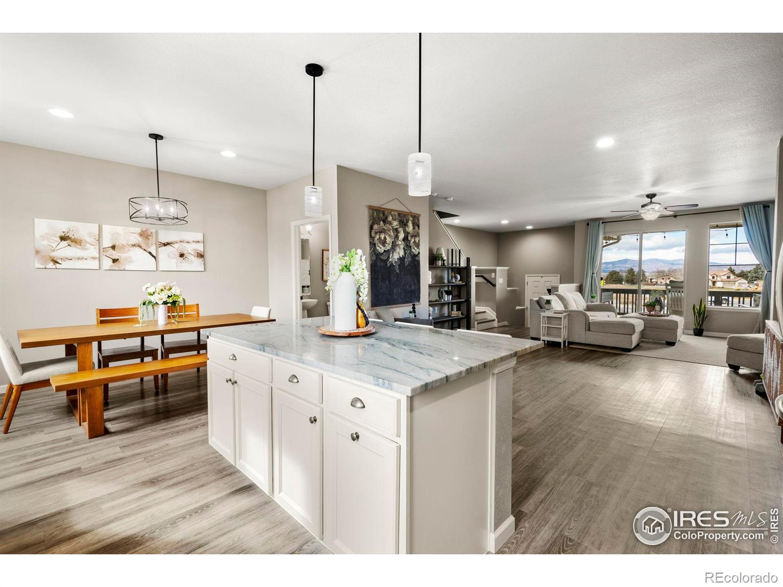 Lender Incentive- 1% lower rate for first year!! Enjoy beautiful mountain and Boyd Lake views, low maintenance living, and a rare 3-car tandem garage! This thoughtfully designed home offers an open main floor and thoughtfully chosen builder upgrades. The kitchen features a large island with additional storage, a stylish subway tile backsplash, quartz countertops, and a gas range. Luxury vinyl flooring adds a modern, seamless feel throughout the home. Upstairs, all bedrooms and the upgraded laundry are located on one level for practical, easy living. The 3-car garage provides room for vehicles, gear, or workspace. Located in a beautiful community with quick access to I-25, you're perfectly positioned for commuting or exploring the entire Front Range. Amenities include parks/playgrounds/pavillions, dog park, clubhouse with grills and fire pit area, and a pool expected in the near future. Don't miss the opportunity to tour this standout townhome-its views and upgrades are even better in person.