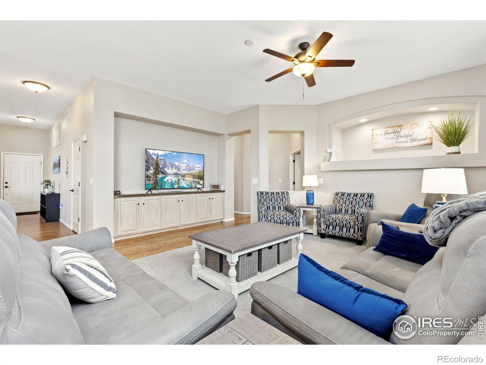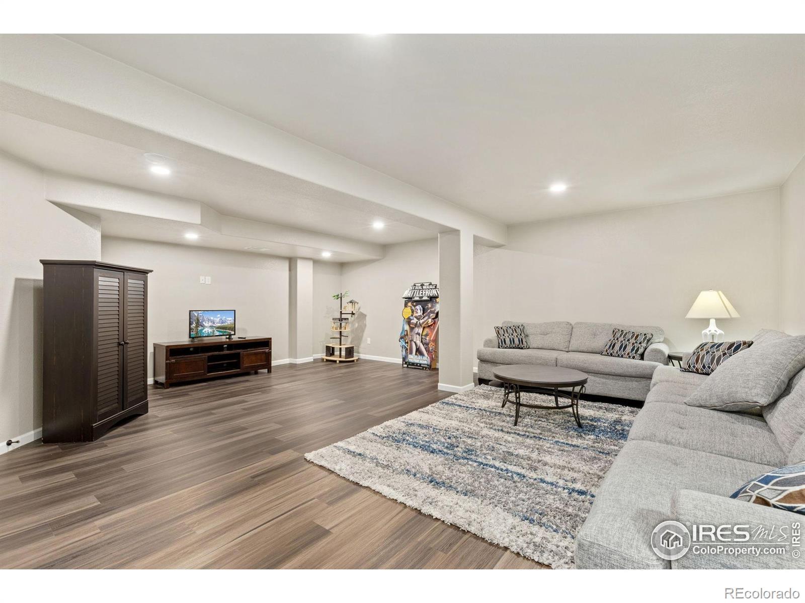 Welcome to this beautifully updated and lovingly maintained 3-bedroom, 2-bath ranch in the highly sought-after St. Vrain Ranch neighborhood. Ideally situated on a quiet corner cul-de-sac and backing directly to Patterson Park, this home offers a rare combination of privacy, convenience, and authentic Colorado living. Step inside to an inviting open floor plan filled with natural light from windows that frame the surrounding greenery. Fresh finishes, warm hardwood flooring, and thoughtful upgrades create a welcoming atmosphere throughout. The kitchen features refreshed cabinetry, modern lighting, upgraded appliances, and an effortless connection to the great room, ideal for everyday comfort and entertaining alike. The primary suite feels like a peaceful retreat with a stylish barn door and calming ambiance. Every space reflects exceptional care, from newer paint and flooring to upgraded fixtures and features designed to elevate daily life. The finished basement extends your living space with an office, a comfortable family room, luxury vinyl flooring, and a dedicated workshop, perfect for hobbies, storage, or creative projects. Outside, the backyard is crafted for both relaxation and durability, offering a newly poured patio, renewed landscaping, and direct gated access to Patterson Park. A recently installed Class 4 roof, upgraded mechanical systems including A/C and water heater, oversized garage, and numerous additional improvements provide comfort and peace of mind. Close to the library, dog park, frisbsee golf course, the Firestone Trail, restaurants, shopping, and easy access to I-25. All information is deemed reliable but not guaranteed. Buyer and Buyer's Agent to verify all information.