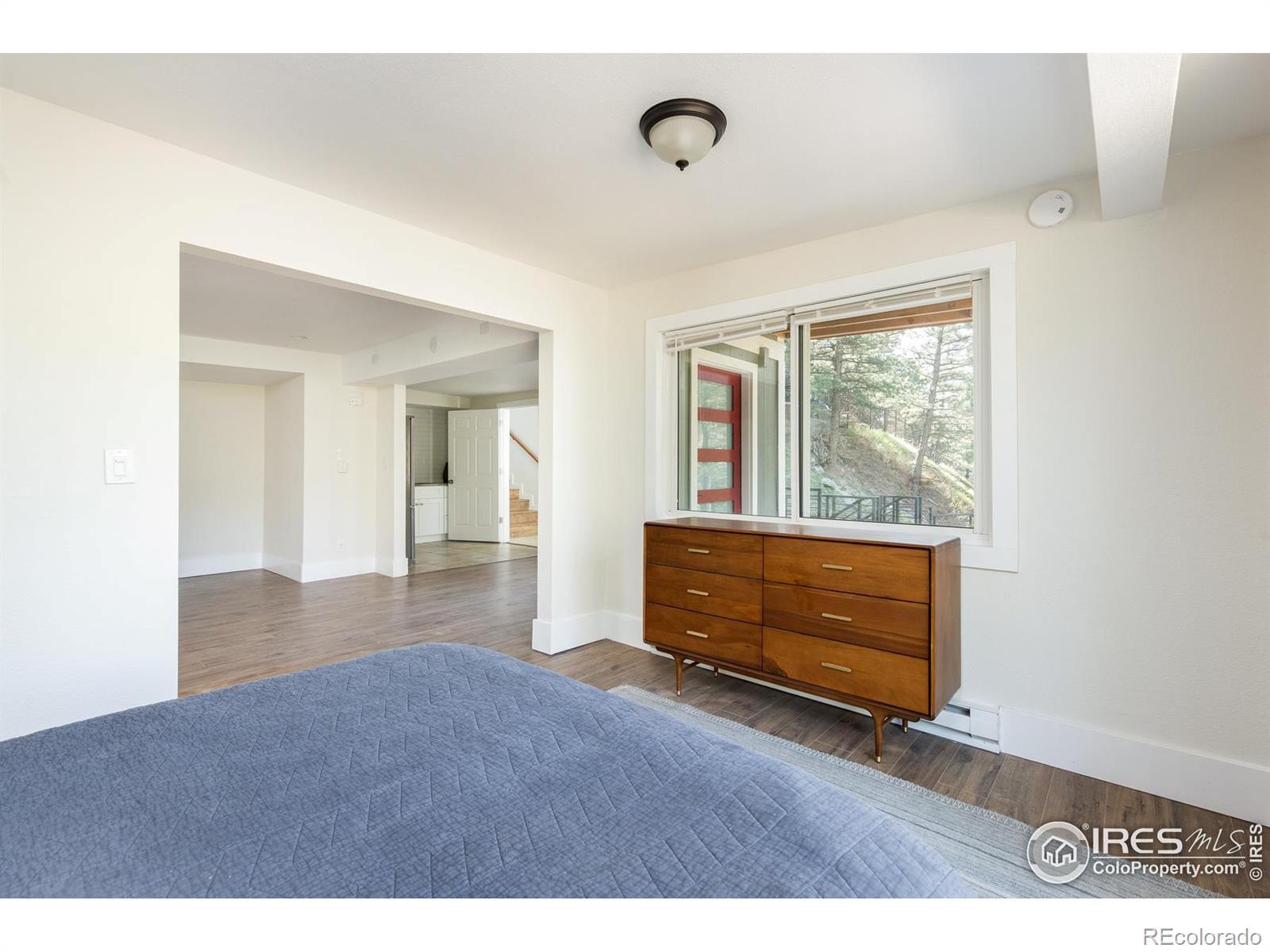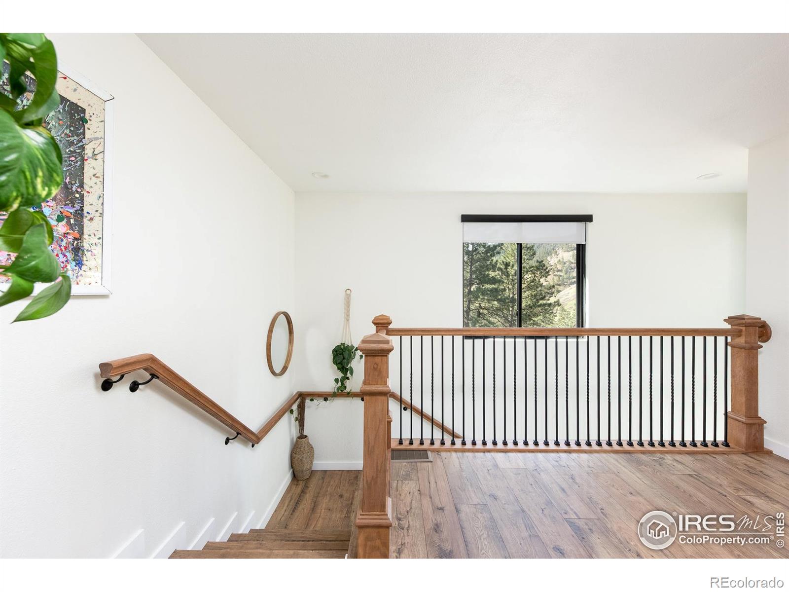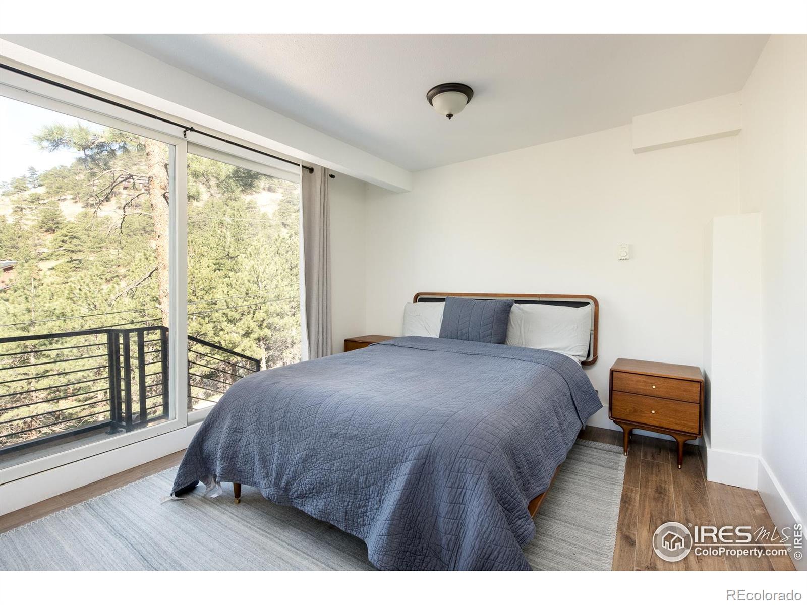 Located in the sought-after Pine Brook Hills community, this beautifully remodeled home offers the best of mountain living just 10 minutes from downtown Boulder and steps from scenic hiking trails. Soaring 20-foot ceilings brighten the living room, leading to an inviting main floor with a spacious living area, dining room, updated kitchen, bedroom, and full bath. Upstairs, the primary suite features a private patio alongside an additional bedroom and bath. The low-maintenance backyard includes crisp white rock landscaping and a flat side yard perfect for relaxing or entertaining. With thoughtful updates throughout the last two years-including solar panels, a new electrical panel, motorized blinds, a new furnace and water heater, induction stove, lower-level ADU entrance, added shelving, radon mitigation, enhanced HVAC ventilation, new ceiling fans, Ring doorbell, and updated front-yard lighting-this move-in-ready home pairs comfort and style in one of Boulder's most desirable neighborhoods.