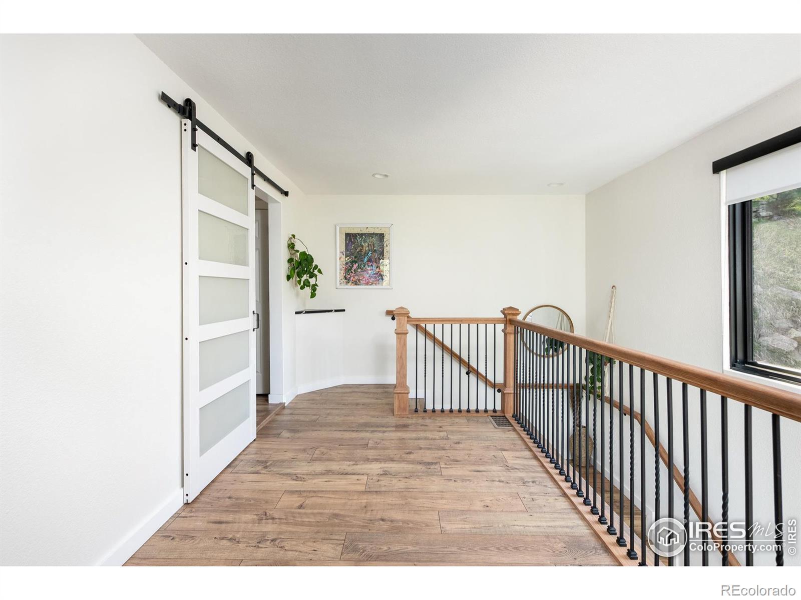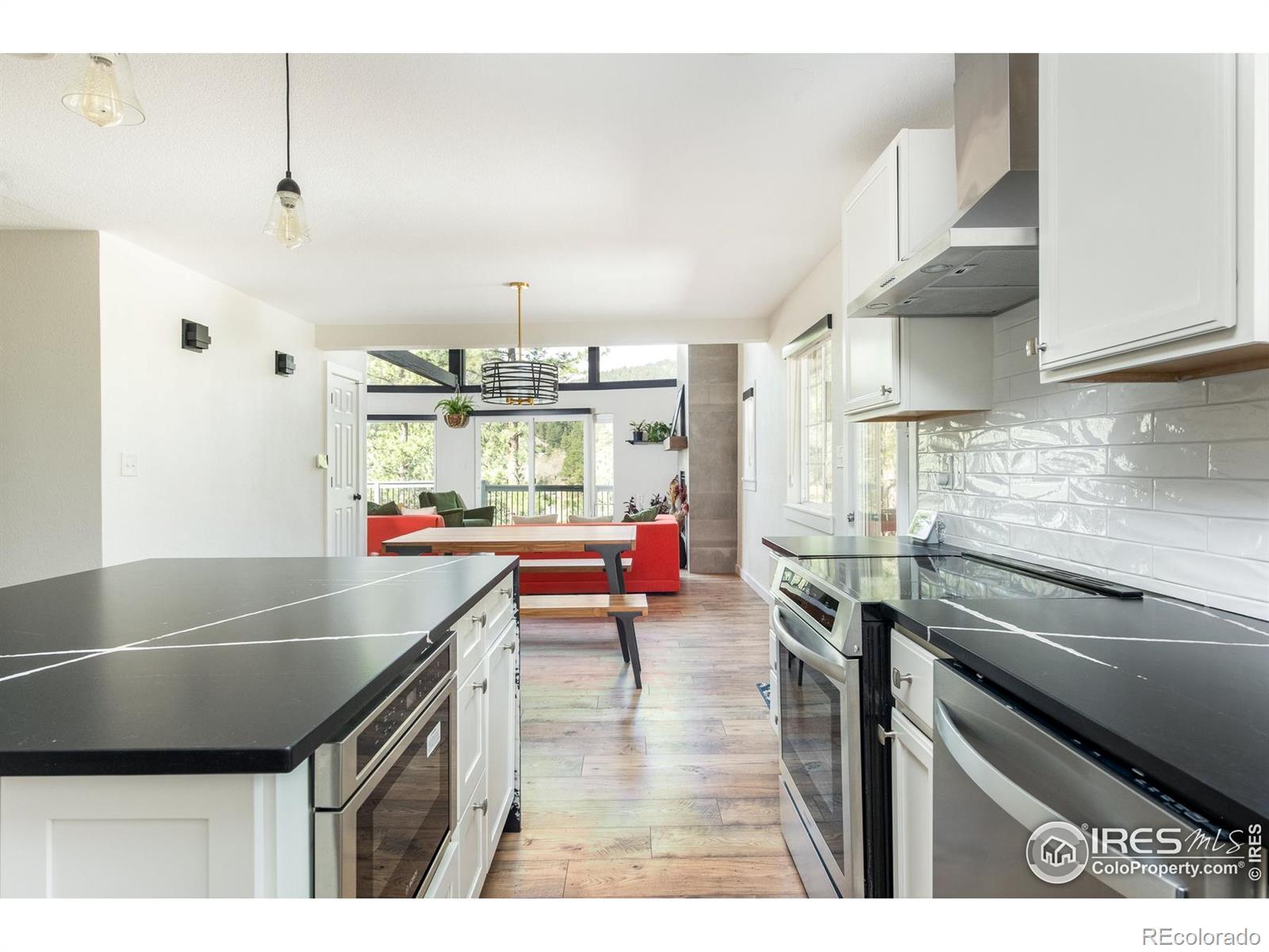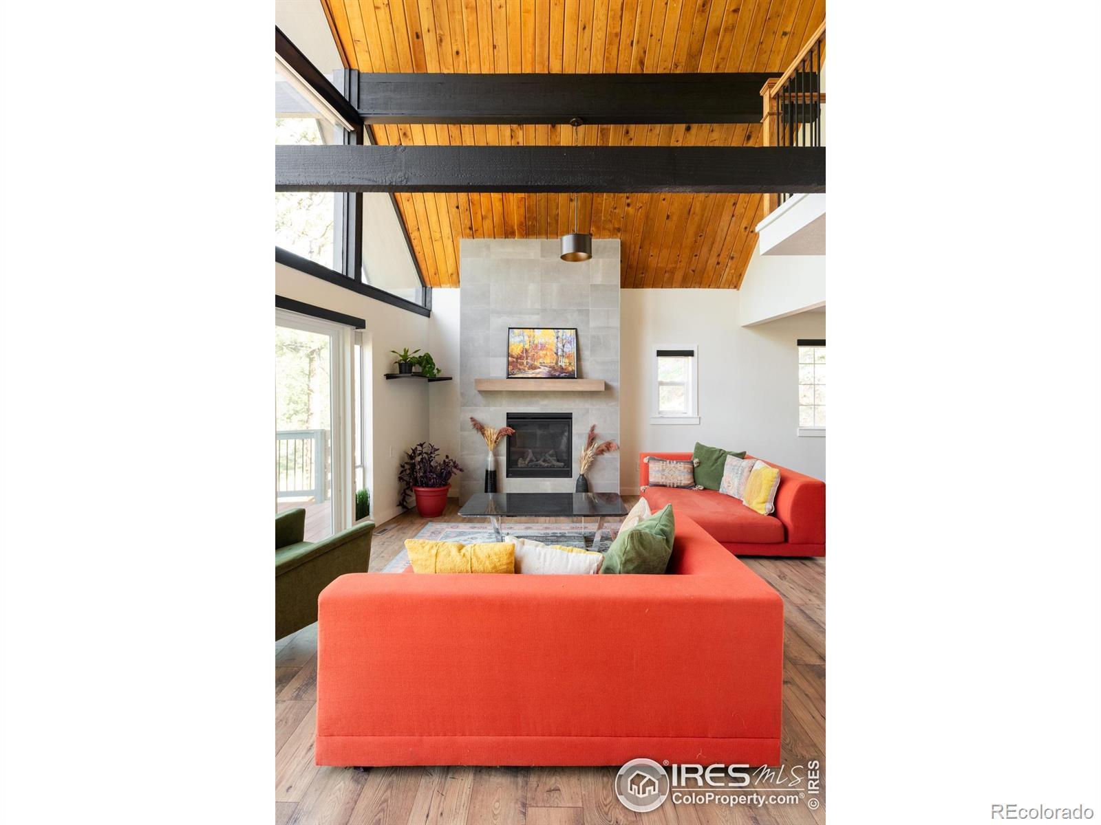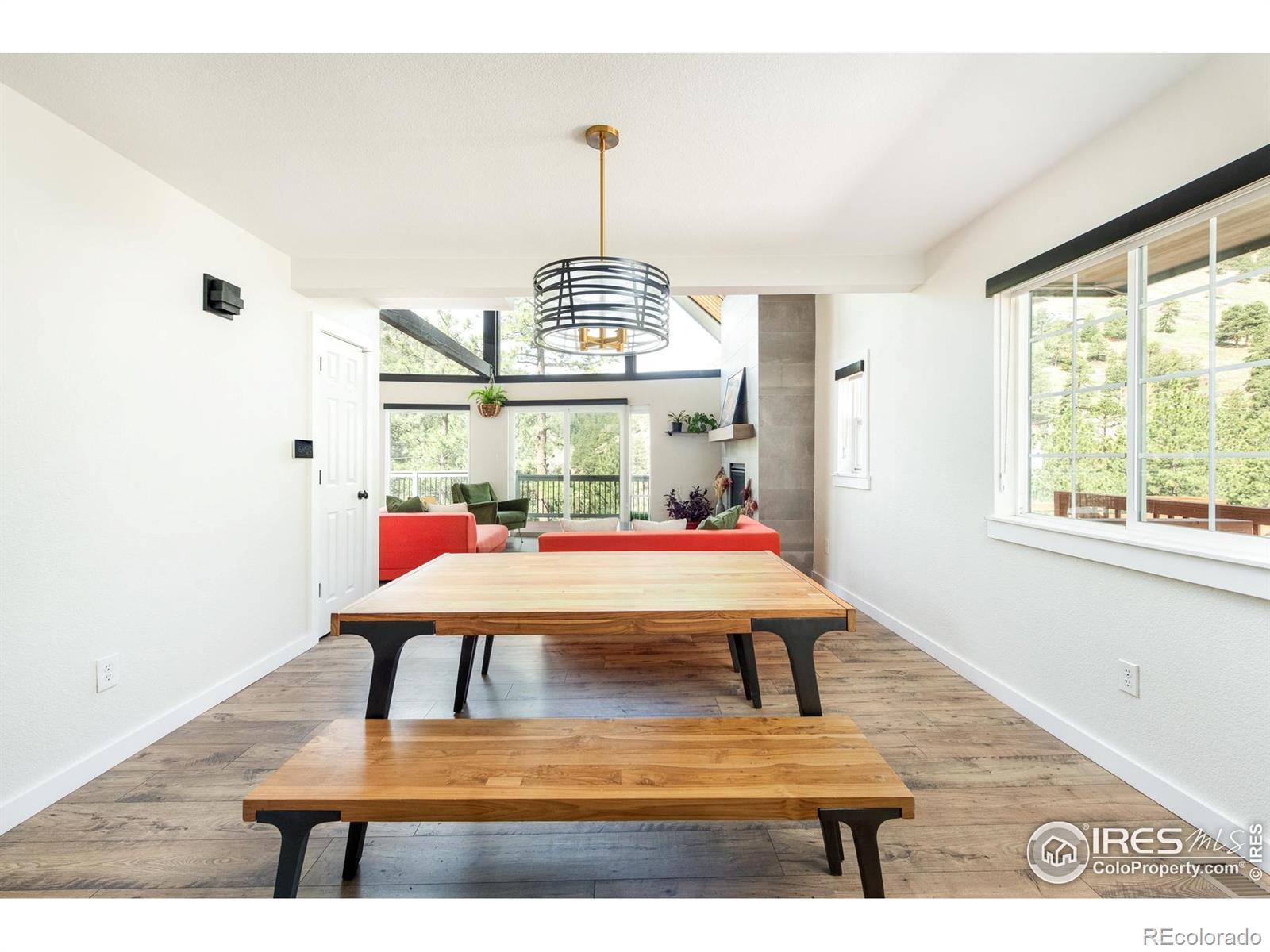 Located in the sought-after Pine Brook Hills community, this beautifully remodeled home offers the best of mountain living just 10 minutes from downtown Boulder and steps from scenic hiking trails. Soaring 20-foot ceilings brighten the living room, leading to an inviting main floor with a spacious living area, dining room, updated kitchen, bedroom, and full bath. Upstairs, the primary suite features a private patio alongside an additional bedroom and bath. The low-maintenance backyard includes crisp white rock landscaping and a flat side yard perfect for relaxing or entertaining. With thoughtful updates throughout the last two years-including solar panels, a new electrical panel, motorized blinds, a new furnace and water heater, induction stove, lower-level ADU entrance, added shelving, radon mitigation, enhanced HVAC ventilation, new ceiling fans, Ring doorbell, and updated front-yard lighting-this move-in-ready home pairs comfort and style in one of Boulder's most desirable neighborhoods.
