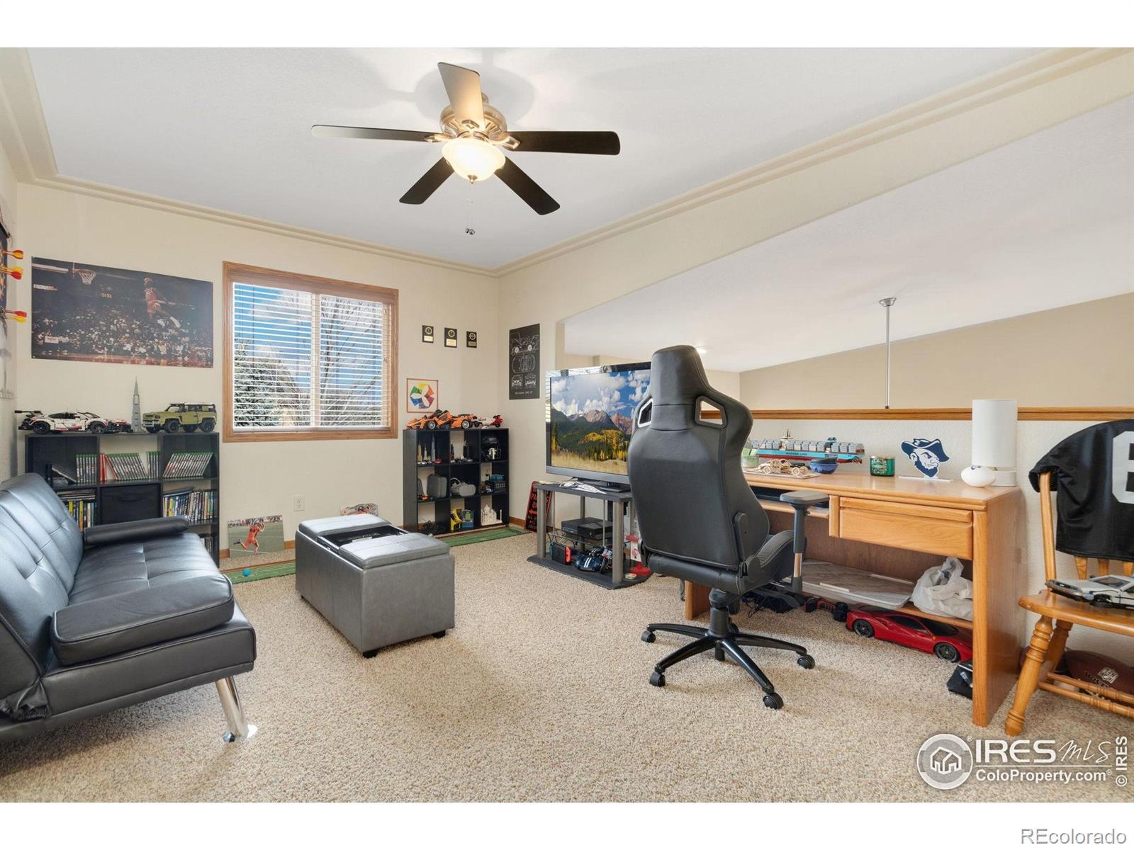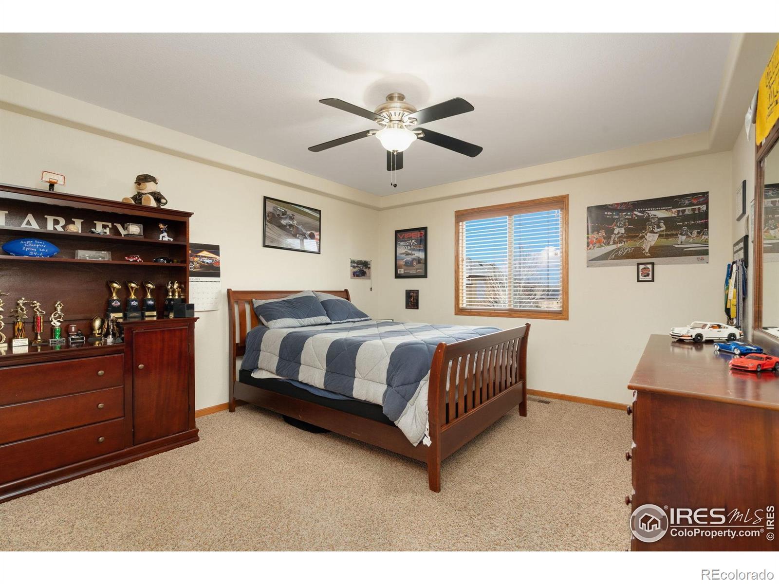 Truly one-of-a-kind custom home situated on a desirable south-facing cul-de-sac lot in Fossil Lake Ranch. Originally built as the personal residence of a local custom home builder, this property showcases exceptional craftsmanship and thoughtful upgrades throughout. Ideally located within minutes of Zach Elementary, Preston and Kinard Middle Schools, and Fossil Ridge High School, this home offers convenience for all grade levels. A standout feature of this residence is the impressive heated and fully insulated RV/boat/car garage, designed with unmatched functionality. It includes an oversized 54-foot third bay, a 10' x 12' door, an RV dump station, water spigot, and floor drain. Lift-Master shaft-drive garage door openers pair with the option to purchase two car lifts, expanding the garage to a 7 car setup. The exterior is equally well cared for, featuring fresh paint and Class 4 Duration impact-resistant roof (2018). The seamless, no-lip driveway entry provides smooth, easy access. Inside, the home offers a thoughtful and inviting layout, beginning with the main-floor primary suite, which boasts an expansive walk-in closet complete with an island, abundant shelving, and a built-in ironing board. The chef-sized kitchen with an eat-in area provides ample space for cooking and gathering. Upstairs, a flexible loft/office/bedroom adds versatility for work, guests, or hobbies. The finished basement extends the living space with two additional bedrooms, a 3/4 bath, laundry hook-ups in the furnace room, and an expansive recreation area ideal for pool, ping-pong, gaming, or a home theater. A commercial-grade hot water heater and a 2024 Carrier furnace and A/C system add comfort and long-term reliability. Outdoors, the backyard features a private basketball court, offering a great space for recreation and entertainment. With unmatched garage capabilities, quality construction, and premium features throughout, this exceptional property is truly one you won't want to miss.