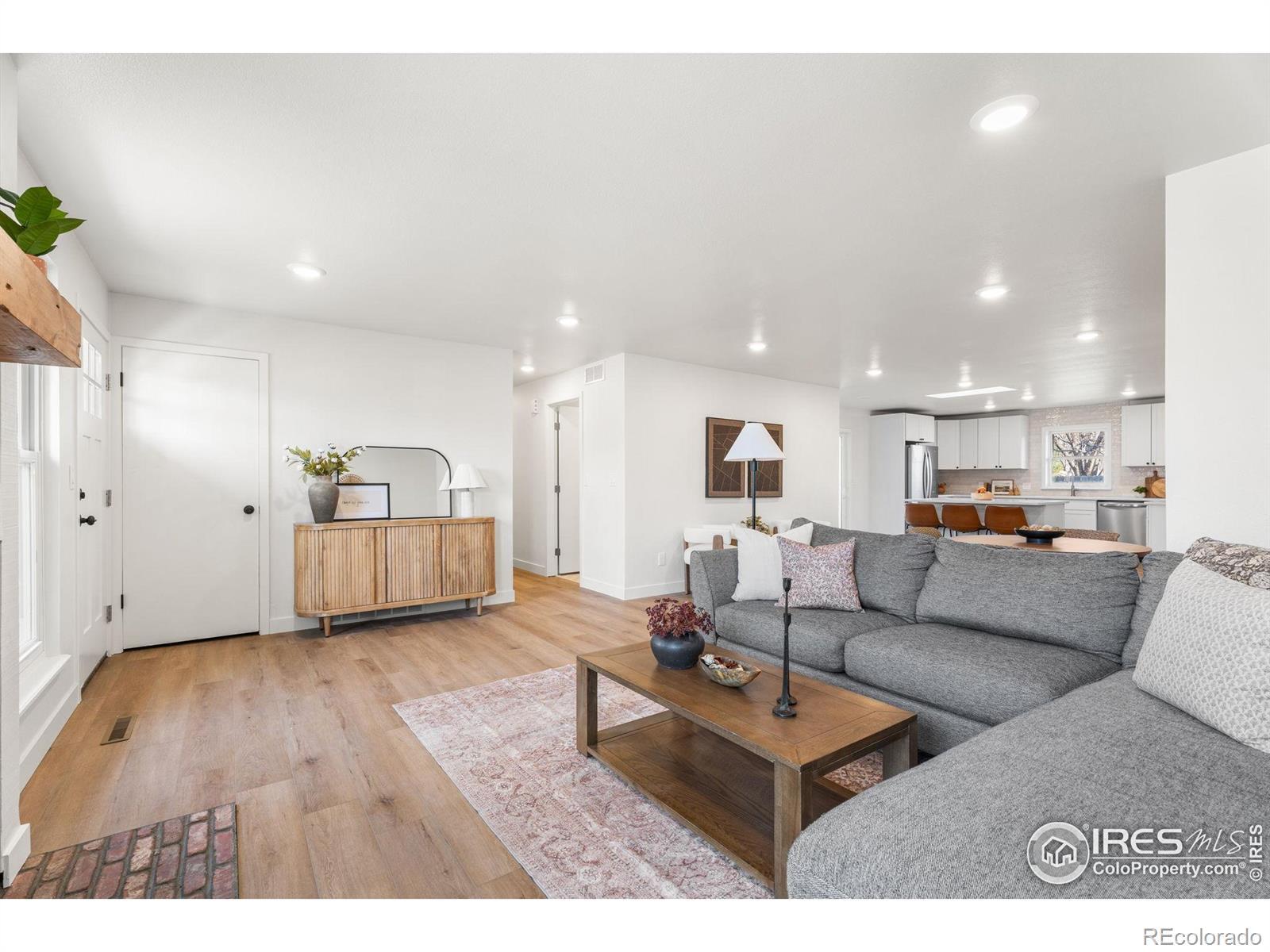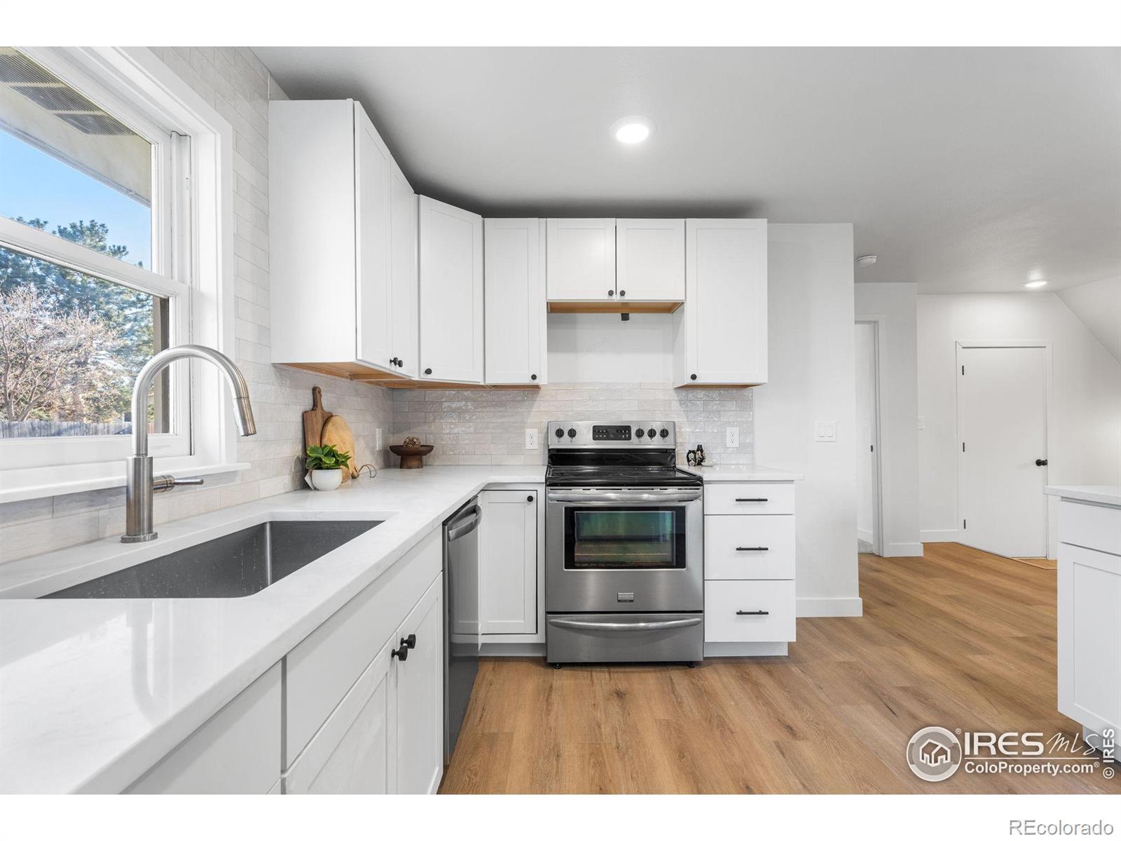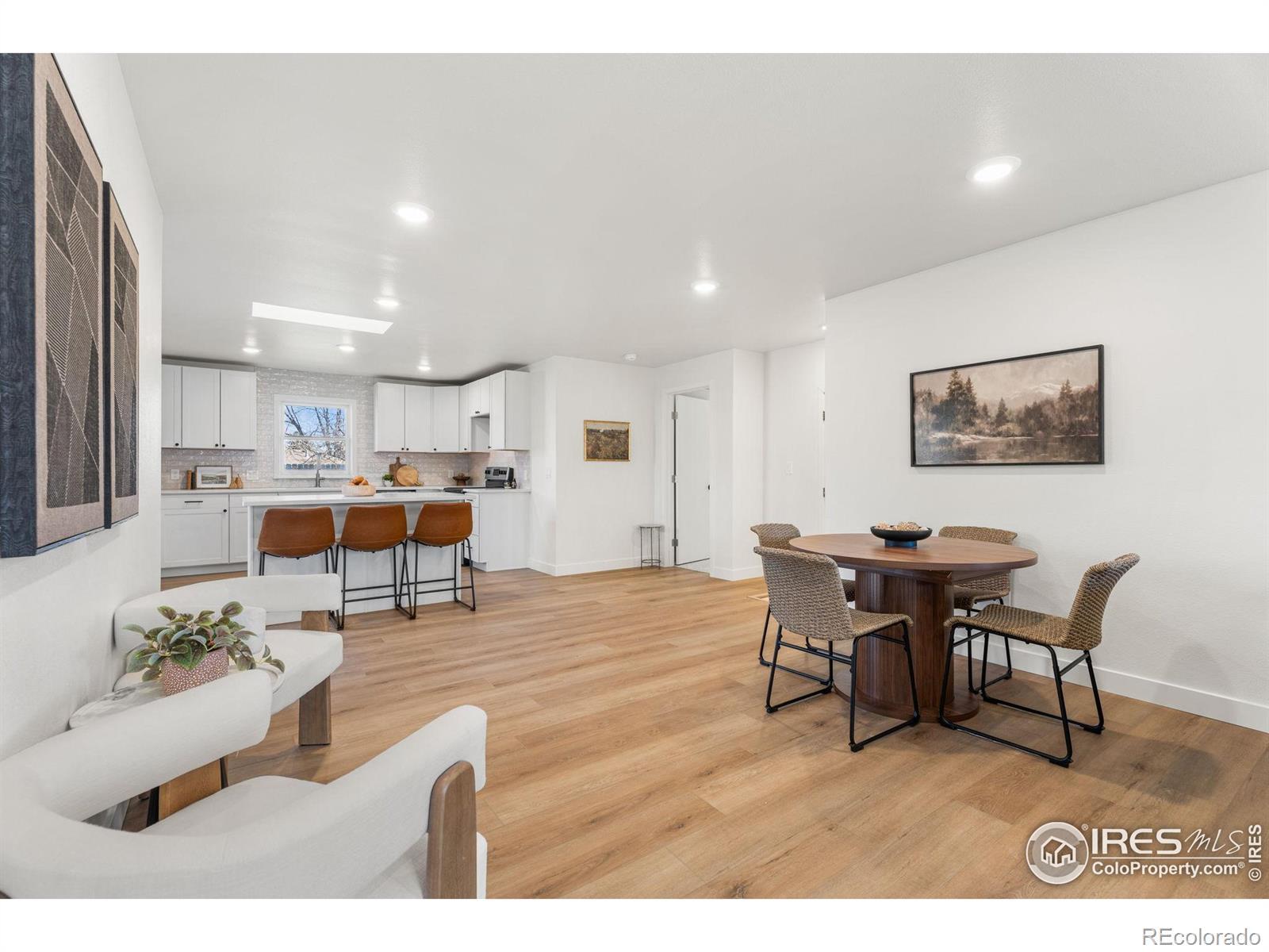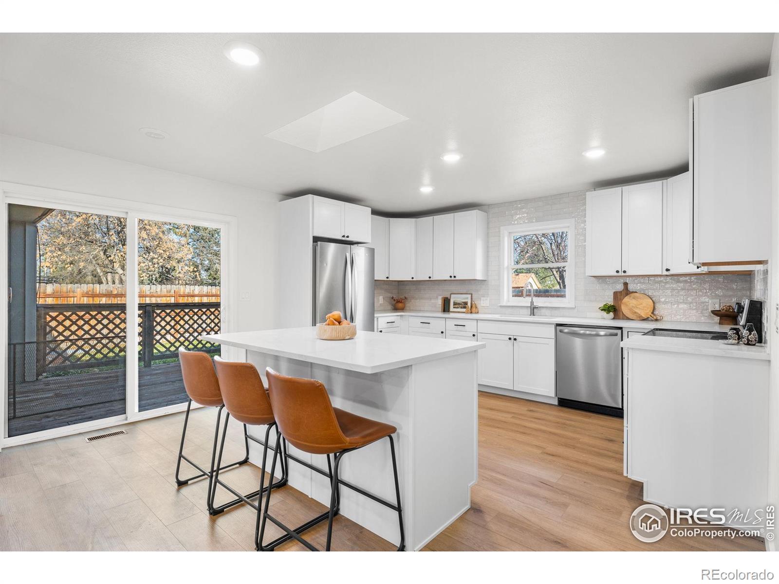Reimagined 1977 Ranch: Modern Meets Vintage Character in the Heart of Loveland. Discover the perfect blend of solid, classic construction and high-end modern living in this fully remodeled 4-bedroom, 3-bathroom ranch. Built in 1977, this home has been thoughtfully reimagined to offer a seamless open-concept floor plan while preserving the timeless charm we love-including the original exterior brickwork and a statement fireplace that anchors the living space with undeniable character.Step inside to find a home that is effectively brand new. The interior features fresh paint, plush new carpet, and modern flooring throughout. The heart of the home is the kitchen, boasting new cabinets, gleaming countertops, and a full suite of new appliances, all illuminated by a perfectly placed skylight over the island. The thoughtful layout includes a private "South Wing" primary suite, offering a true retreat with dual closets and a fully renovated bathroom bathed in natural light from its own skylight. Two additional bathrooms have also been completely modernized with high-end finishes. Practicality meets potential with a spacious two-car garage featuring extensive cabinet storage and workshop space, plus a large unfinished basement ready for your custom touch. The exterior is just as impressive, featuring a fully revamped backyard with a brand-new sprinkler system and new sod. Located in an unbeatable Loveland location, you are just 5 minutes from Loveland High School and the renowned Benson Sculpture Park, and only 100 yards from the Woodmere Park access point. This is a rare opportunity to own a "like-new" home with the soul of a classic.