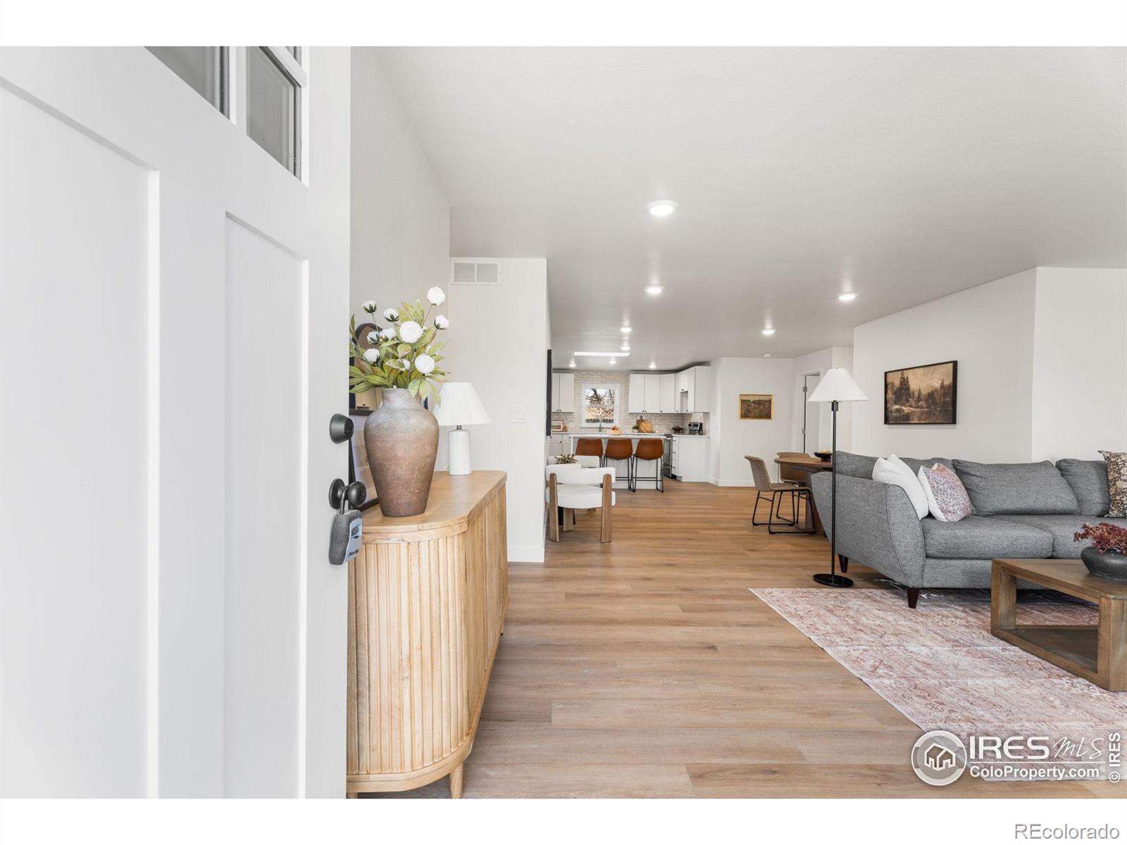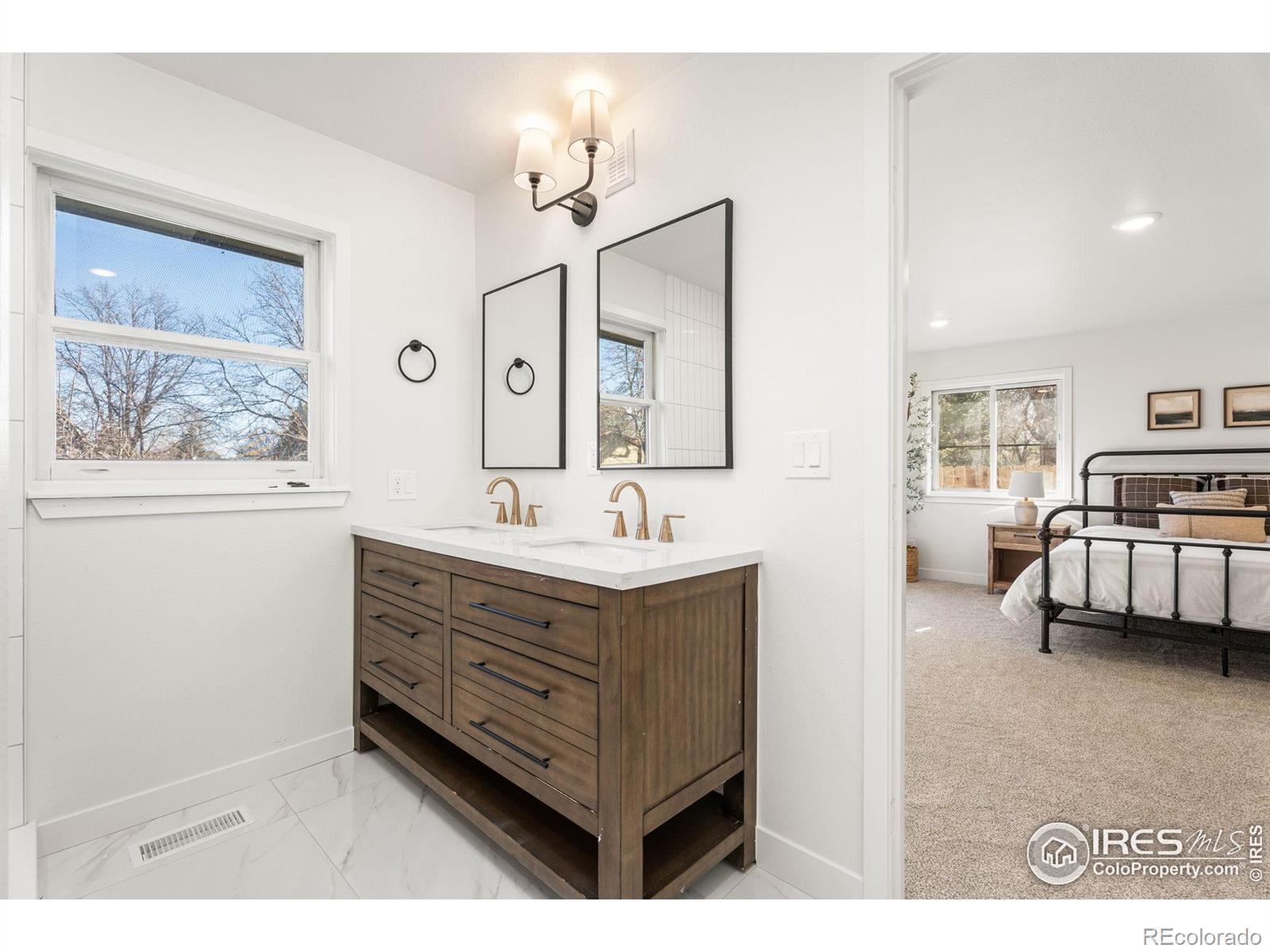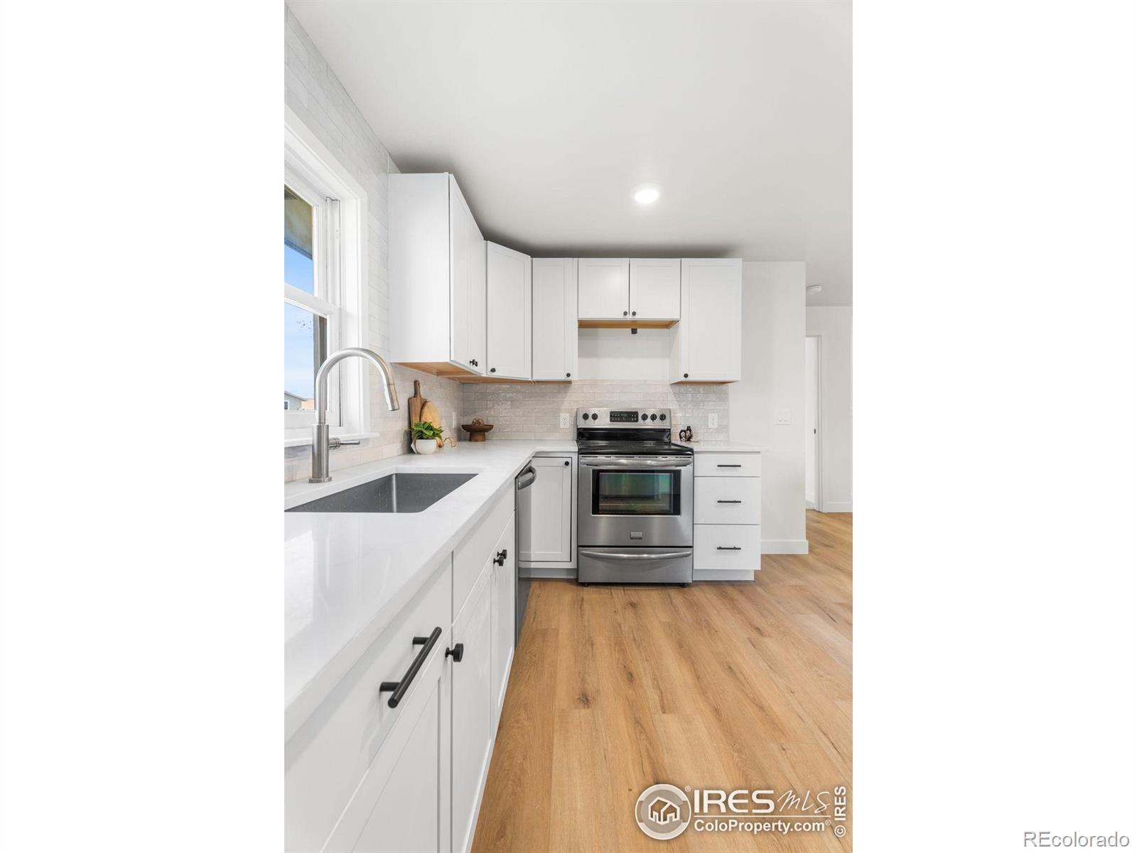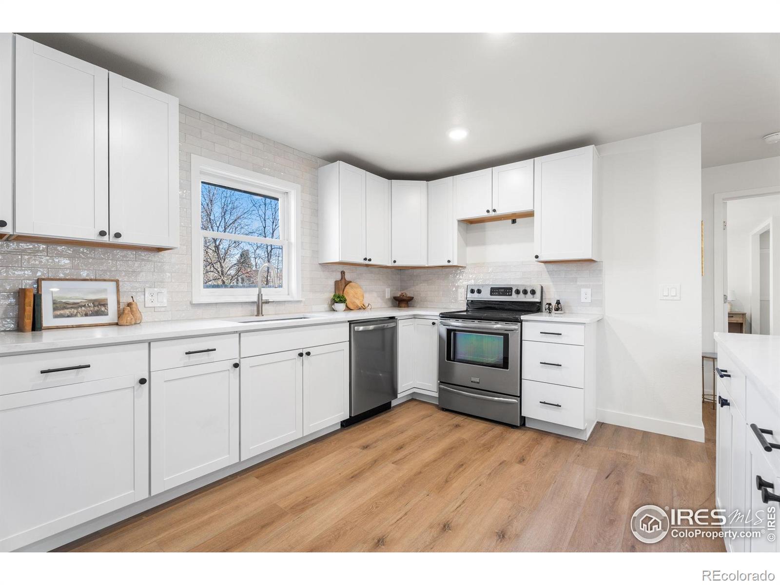 Reimagined 1977 Ranch: Modern Meets Vintage Character in the Heart of Loveland. Discover the perfect blend of solid, classic construction and high-end modern living in this fully remodeled 4-bedroom, 3-bathroom ranch. Built in 1977, this home has been thoughtfully reimagined to offer a seamless open-concept floor plan while preserving the timeless charm we love-including the original exterior brickwork and a statement fireplace that anchors the living space with undeniable character.Step inside to find a home that is effectively brand new. The interior features fresh paint, plush new carpet, and modern flooring throughout. The heart of the home is the kitchen, boasting new cabinets, gleaming countertops, and a full suite of new appliances, all illuminated by a perfectly placed skylight over the island. The thoughtful layout includes a private "South Wing" primary suite, offering a true retreat with dual closets and a fully renovated bathroom bathed in natural light from its own skylight. Two additional bathrooms have also been completely modernized with high-end finishes. Practicality meets potential with a spacious two-car garage featuring extensive cabinet storage and workshop space, plus a large unfinished basement ready for your custom touch. The exterior is just as impressive, featuring a fully revamped backyard with a brand-new sprinkler system and new sod. Located in an unbeatable Loveland location, you are just 5 minutes from Loveland High School and the renowned Benson Sculpture Park, and only 100 yards from the Woodmere Park access point. This is a rare opportunity to own a "like-new" home with the soul of a classic.