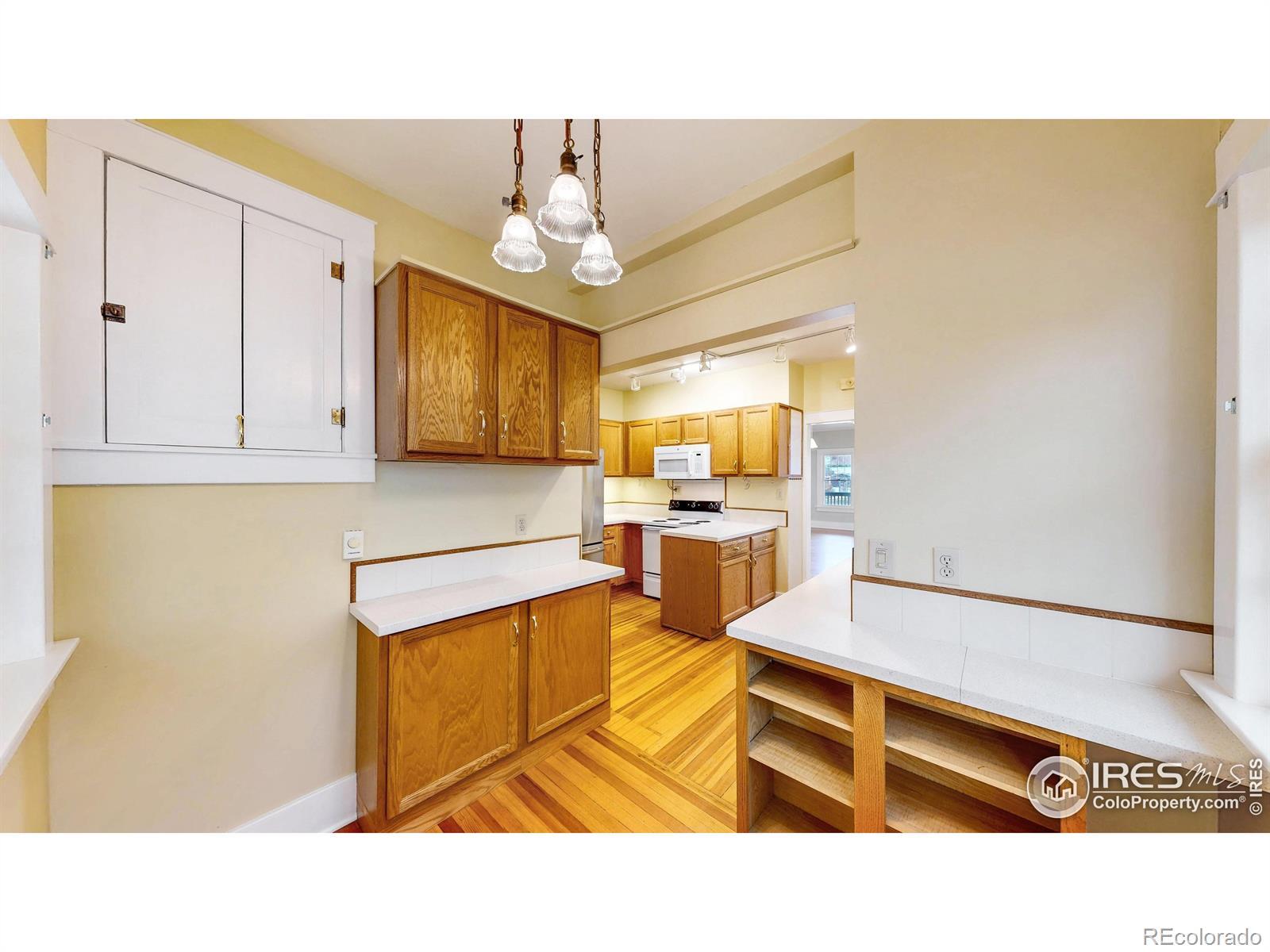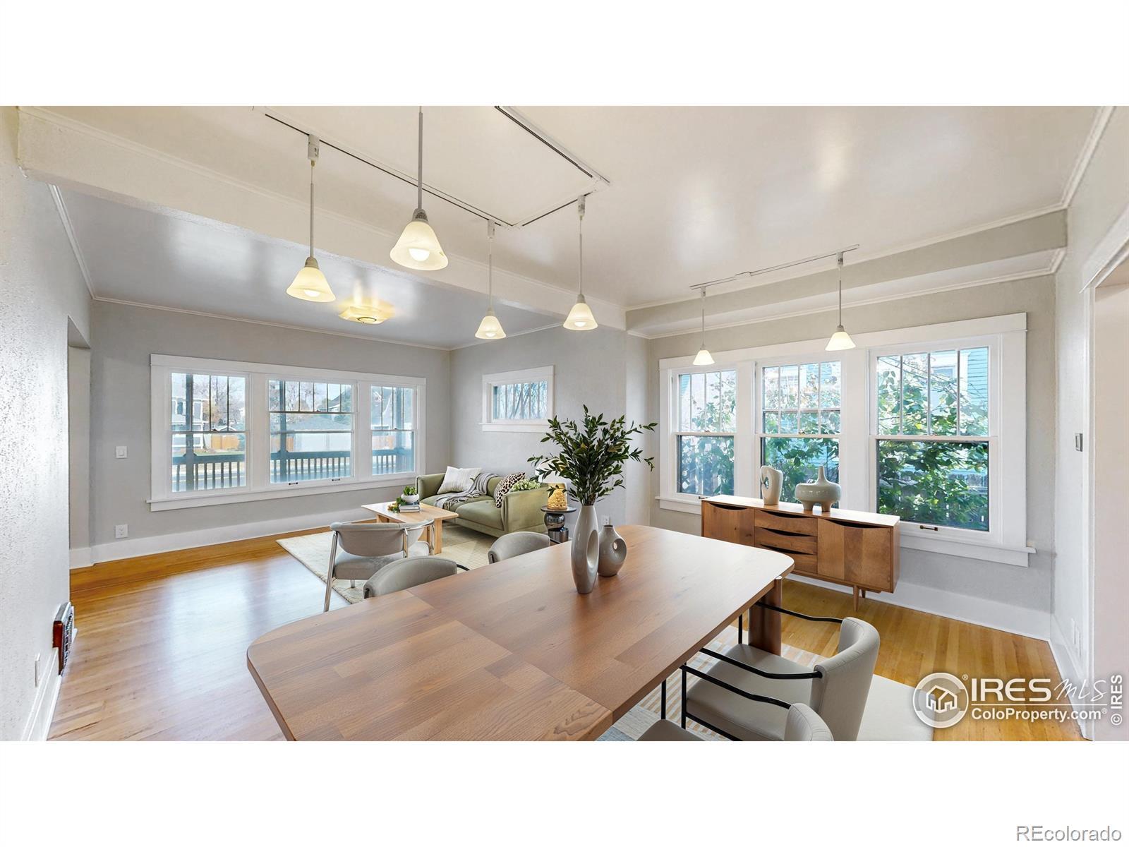 Nestled in the heart of Greeley's vibrant historic district, this charming downtown Ranch-style home blends timeless elegance with modern comfort. Imagine waking up to the tree-lined streets, strolling to local cafes, and hosting gatherings in your own slice of Old-world, Colorado charm. As you step inside, you're welcomed by a bright living room anchored by large windows that allow abundant natural light to illuminate the original wood trim, warm-toned flooring and high ceilings on the main level that give the main level an airy, open feel. The kitchen provides a functional layout with ample cabinetry, a unique roll-out, built-in pantry & all appliances included. Spacious & versatile layout w/ 5 bedrooms (2 non-conforming), 2 baths, and flexible living spaces, freshly painted rooms, whole house fan. You'll love the outdoor retreat with the large fully fenced backyard & mature landscaping, perfect for summer barbecues, your pets, gardening, or quiet evenings under the stars, plus a detached garage and heated/cooled workshop with alley access that supports additional car, RV or boat parking or future garage expansion. Just steps from the lively downtown scene w/ nearby attractions such as Lincoln Park, the Moxi Theater, the Greeley History Museum, and many other restaurants & coffeehouses which add to the vibrant urban lifestyle, while being minutes from the bustling University of Northern Colorado campus. Don't miss this opportunity!