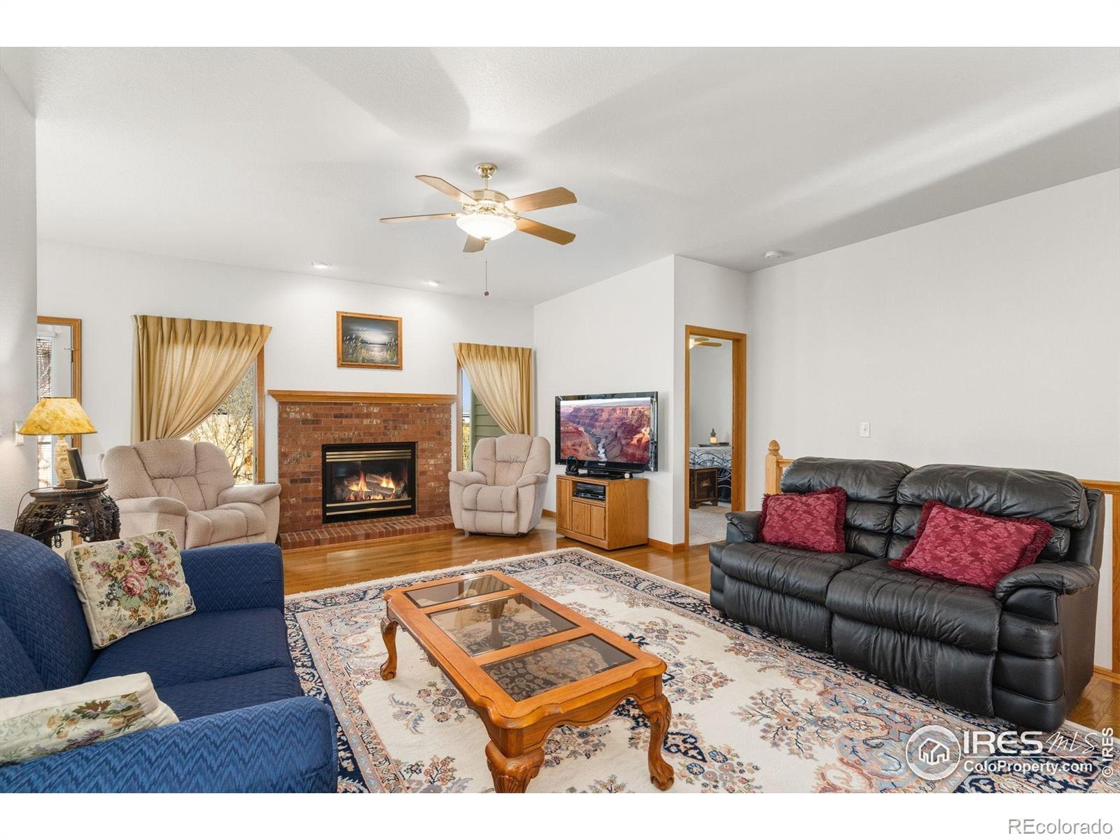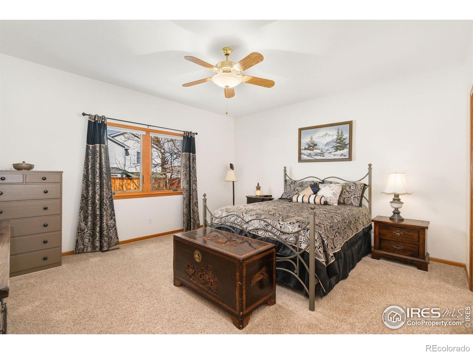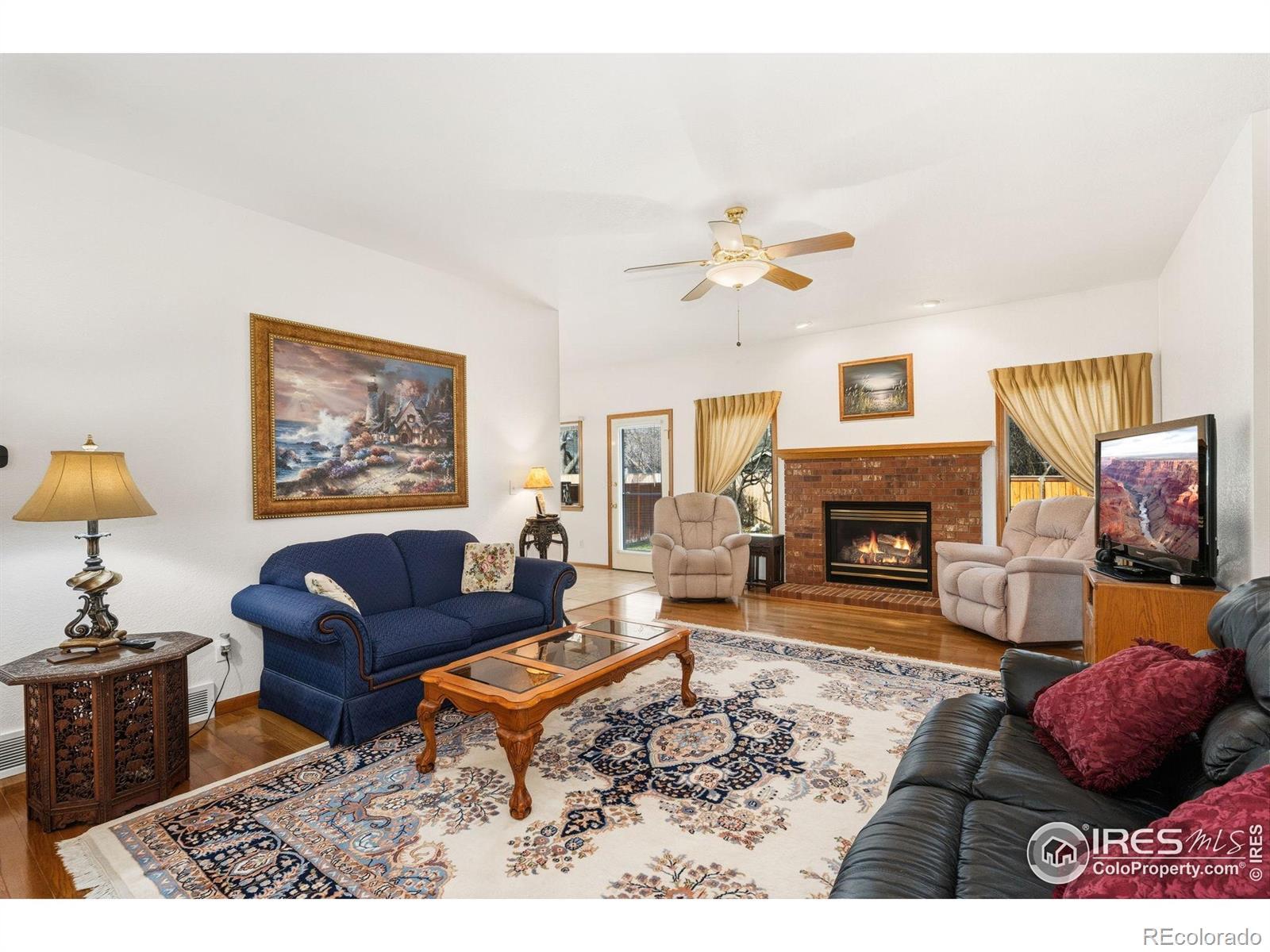 Impeccably cared-for ranch in the quiet, sought-after Kingston Woods neighborhood, where pride of ownership shines throughout. This move-in-ready home offers an inviting open floor plan, vaulted ceilings, and abundant natural light throughout. Step inside to a spacious living area featuring warm hardwood floors, a cozy gas fireplace, and easy flow into the large dining room, perfect for gatherings. The bright, expansive kitchen offers generous cabinet space, stainless-steel appliances, a large peninsula with seating, and a sunny breakfast nook surrounded by windows overlooking the backyard. 3 Bedrooms total on the main level, one of which is the comfortable primary suite with large windows and an en-suite bath featuring double sinks, a soaking tub, and a walk-in shower. Additional main-level highlights include 9 ft. ceilings, central A/C, and thoughtful touches throughout. Downstairs, the full basement is massive, finished with a second fireplace, a kitchenette area, 2 large bedrooms, a bathroom, and additional flex space. Enjoy exceptional curb appeal with mature landscaping in both the front and backyard, complete with a sprinkler system, a large patio for outdoor dining, and a private, fully fenced yard boasting extra parking or toy storage. With quick access to parks, trails, schools, and all of the best of Fort Collin's outdoor recreation opportunities, this home is truly a rare find in a fantastic location.