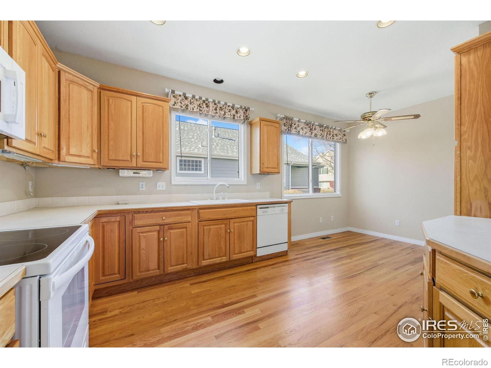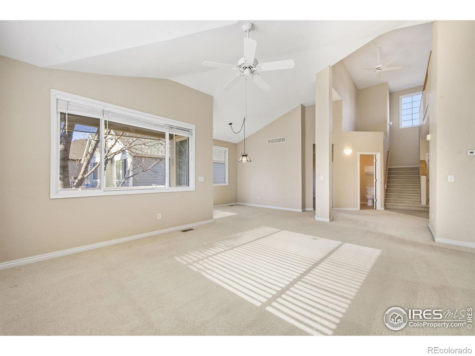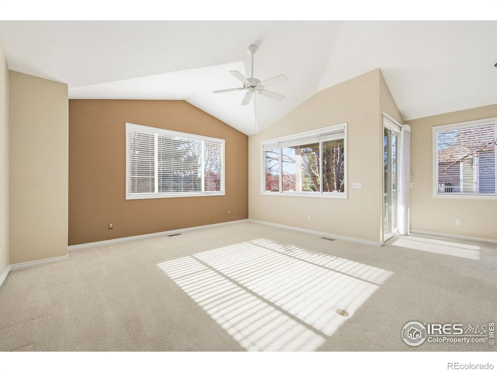 PATIO HOME! Ranch Style Main Floor living w/Loft & finished bsmt. Well kept 1.5 Story home offers bright natural daylight & open floor plan w/vaulted ceilings. Formal Living Rm/Dining Rm for special occasions. Eat-in Kitchen has New refrig, stove, & microwave, plus pantry & slide out drawers. Primary Suite has 5 pc Bath. Loft is perfect office space or quiet rm. Large bsmt Family Rm has corner gas FP. 2 more bedrms w/walk in closets, utility rm, & storage complete the lower level. Laundry w/sink is located adjacent to 2 car garage. Sliding door exits from Dining Rm to Covered Trex deck shaded by large trees. Behind this home is HOA greenbelt giving it the feel of an oversized lot. Mailbox is also nearby. Landscaping, tree care, street maintenance, and snow removal included in HOA fee. Roof was replaced after hail storm mid 2019. Desirable community near Southridge Greens Golf Course and Fossil Creek Park with hike and bike trails. Popular SE Ft.Collins location near grocery, shopping, restaurants, malls, and schools.