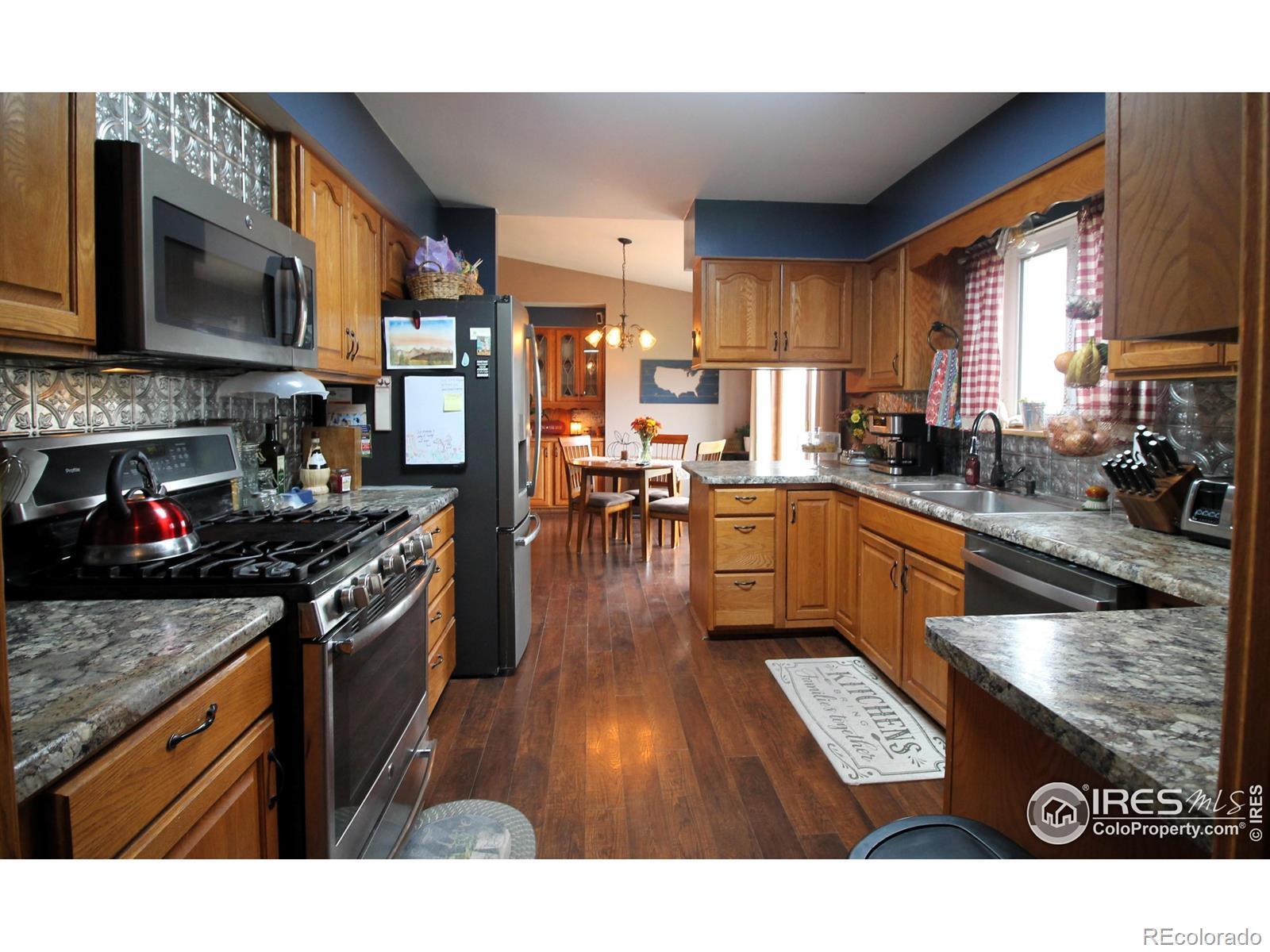 One of a kind, 2 acre property on the edge of Haxtun! 4 bed, 3 bath, MOVE-IN READY home! Beautiful, newly finished basement with large family room, custom wet bar, full bath with soaker tub, large bedroom with egress window, office area, bonus stairs into the garage. Ramp in garage. Binzebo outside, fenced yard, sprinkler system. Awesome insulated 100x60 steel shop, 1/2 has a concrete floor with in-floor heat, the other 1/2 has gravel floor and no heat. More storage in a 72x32 Quonset with concrete floor. Plus corrals, livestock sheds, barn, and more!!