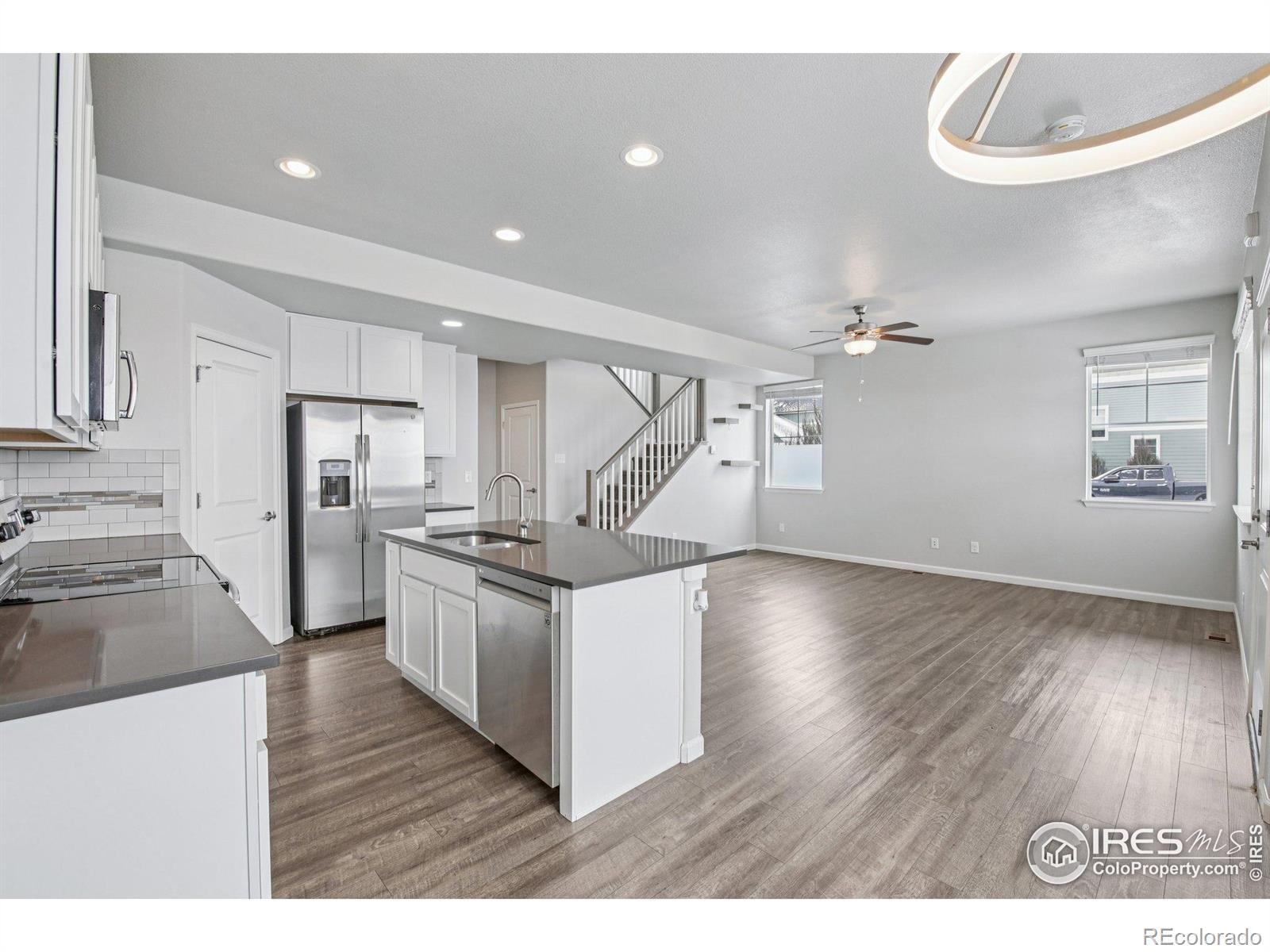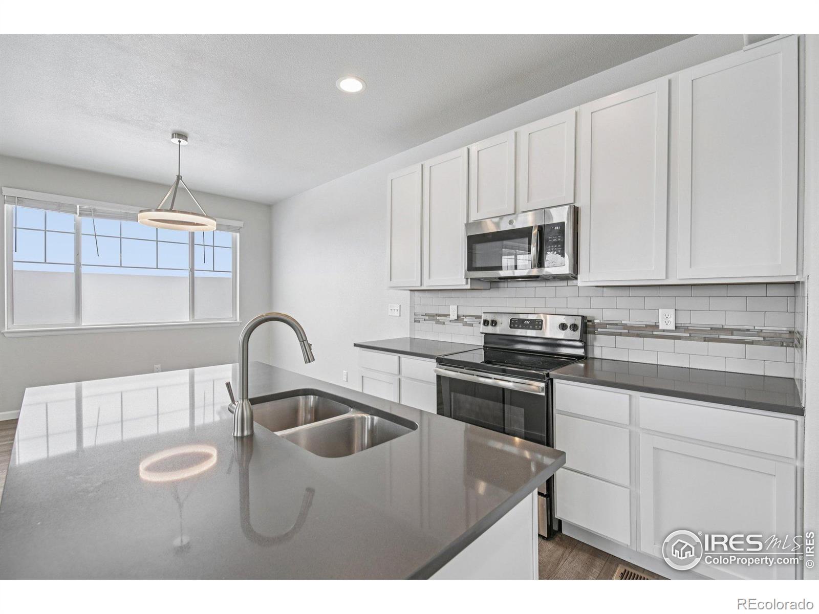 MOVE-IN Ready, End-unit Townhome with oversized garage and mountain views. Basement could easy be used as Mother-in-law suite or 4th bedroom. Beautifully appointed end-unit townhome in the desirable Brookstone community of Milliken! Lush front landscaping and a welcoming front porch set the tone, complemented by a side yard-maintained by the HOA-for added green space without the upkeep. Inside, the open main floor flows seamlessly between the spacious living room, dining area, and chef's kitchen. The kitchen features stainless steel appliances, quartz countertops, a center island with sink and seating, and a pantry for extra storage. A built-in mudroom area with storage and a convenient half bath sit just off the attached oversized two-car garage, already equipped with 220 for car charging. Upstairs, retreat to the primary suite complete with a private en-suite bath and a massive walk-in closet. Two additional bedrooms and a full bath provide ample space for family, guests, or a home office. The high-end finished basement expands your living space with a large media room, wet bar, and an updated 3/4 bath featuring a luxurious steam shower. Enjoy mountain views, community trails, and a peaceful neighborhood that's still close to shops, dining, and everyday conveniences. This home offers style, comfort, and low-maintenance living all in one!