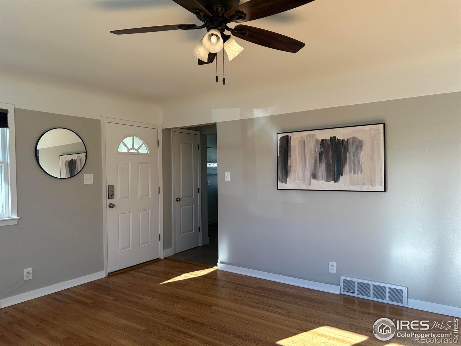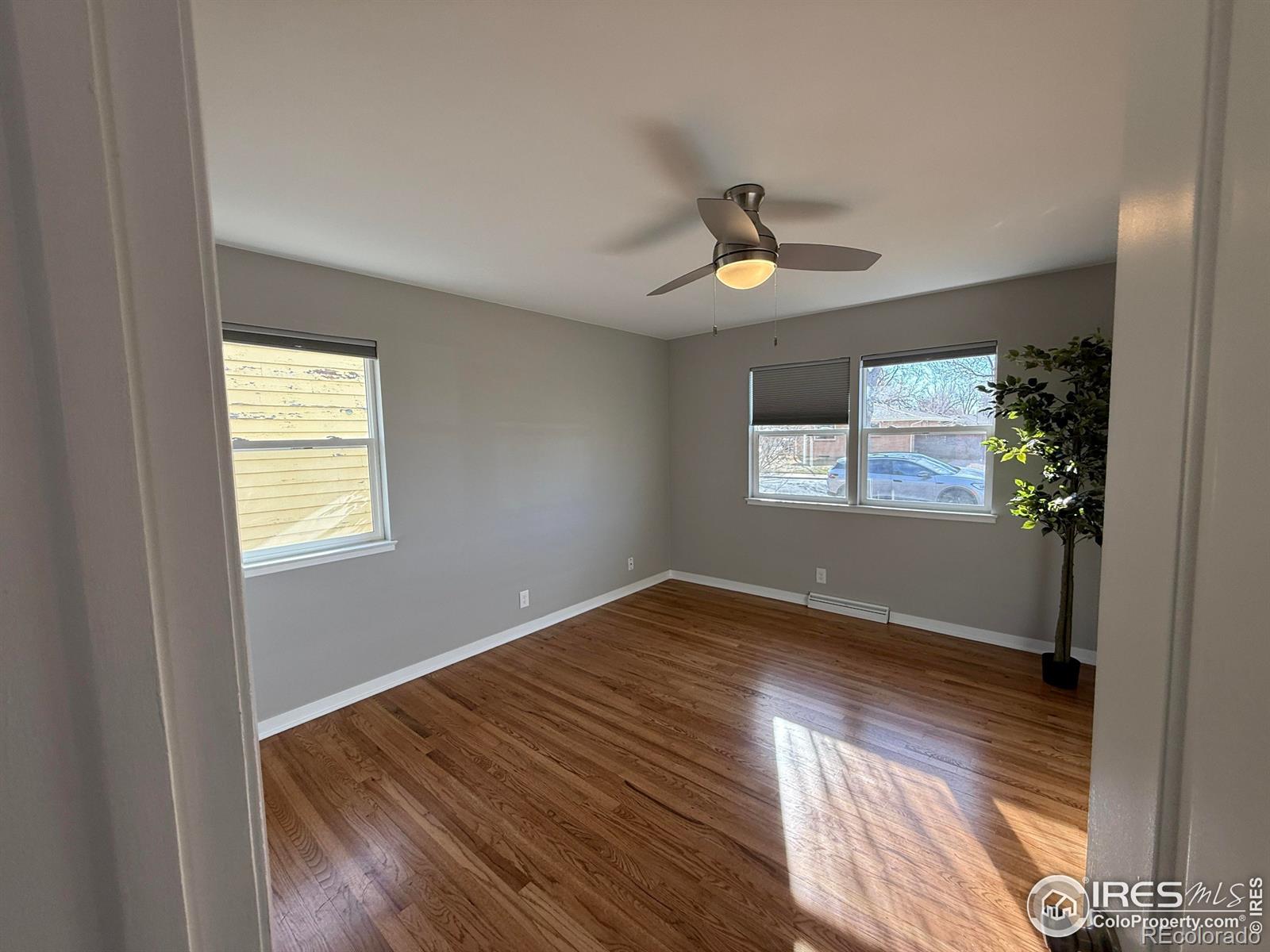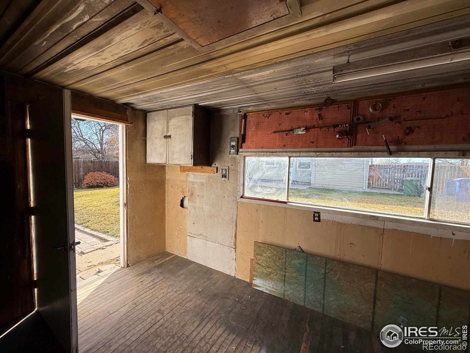 Welcome home to this beautifully updated 1958 ranch featuring classic charm blended with modern comfort. Step inside to find gleaming wood floors throughout the main level and an updated kitchen complete with cabinets, stylish hardware, a glass-front corner cabinet, flat-top range, microwave, and refrigerator. A sunny window over the sink overlooks the peaceful backyard.The functional floorplan includes 4 bedrooms-2 on the main level and 2 in the finished basement-plus blackout shades for comfort and privacy. The main floor offers a full bath, while the basement features a convenient 3/4 bath and an oversized laundry room with abundant storage. Enjoy added comfort with ceiling fans in the living room and both upstairs bedrooms.Relax outdoors on the inviting backyard patio, or take advantage of the workshop with shelving, an additional storage shed, and a fully fenced yard with gate access. Bring your RV or boat-there's extra parking on the side, along with a 1-car garage.Fresh interior paint and no HOA or metro district help make this home truly move-in ready. A wonderful blend of character, updates, and practicality-don't miss this one!
