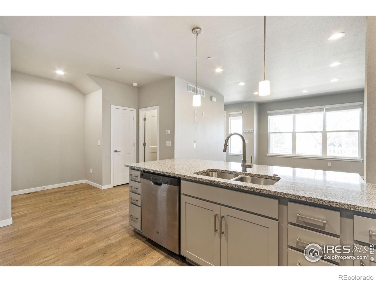 Welcome to this desirable Trail Head townhome, built 2019 with mountain views & LEED certified efficiency! An exceptional opportunity awaits in North Fort Collins! This two story townhome is the definition of turnkey, offering 3 bedrooms, 3 bathrooms, and an attached 2-car garage. With only light use since construction, the home is like new and move in ready! From the moment you arrive, you'll be impressed with the serene mountain views visible from the charming front porch. The accompanying small, fully fenced-in yard is a perfect spot for pets or low maintenance outdoor enjoyment. Inside, the main level features beautiful vinyl plank flooring throughout, giving a seamless, modern look. The space is bright and airy with a great open concept design. The spacious living area flows effortlessly into the modern kitchen, featuring beautifully crafted quartz countertops and top quality appliances. For convenience, the main level also includes a handy half bath and the dedicated laundry room. The appeal continues upstairs, where the primary bedroom also boasts mountain views! This suite is a true retreat, complete with a large walk-in closet and a luxurious ensuite bathroom featuring a dual vanity and a walk-in shower. A major benefit is the home's commitment to sustainability and savings: it is LEED certified and highly energy-efficient, offering comfort and lower utility costs. Experience the perfect blend of modern design, prime location, and low-maintenance living. Close to I-25 as well as Downtown Fort Collins! Schedule your showing today!