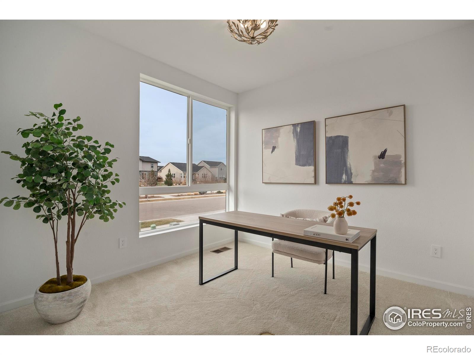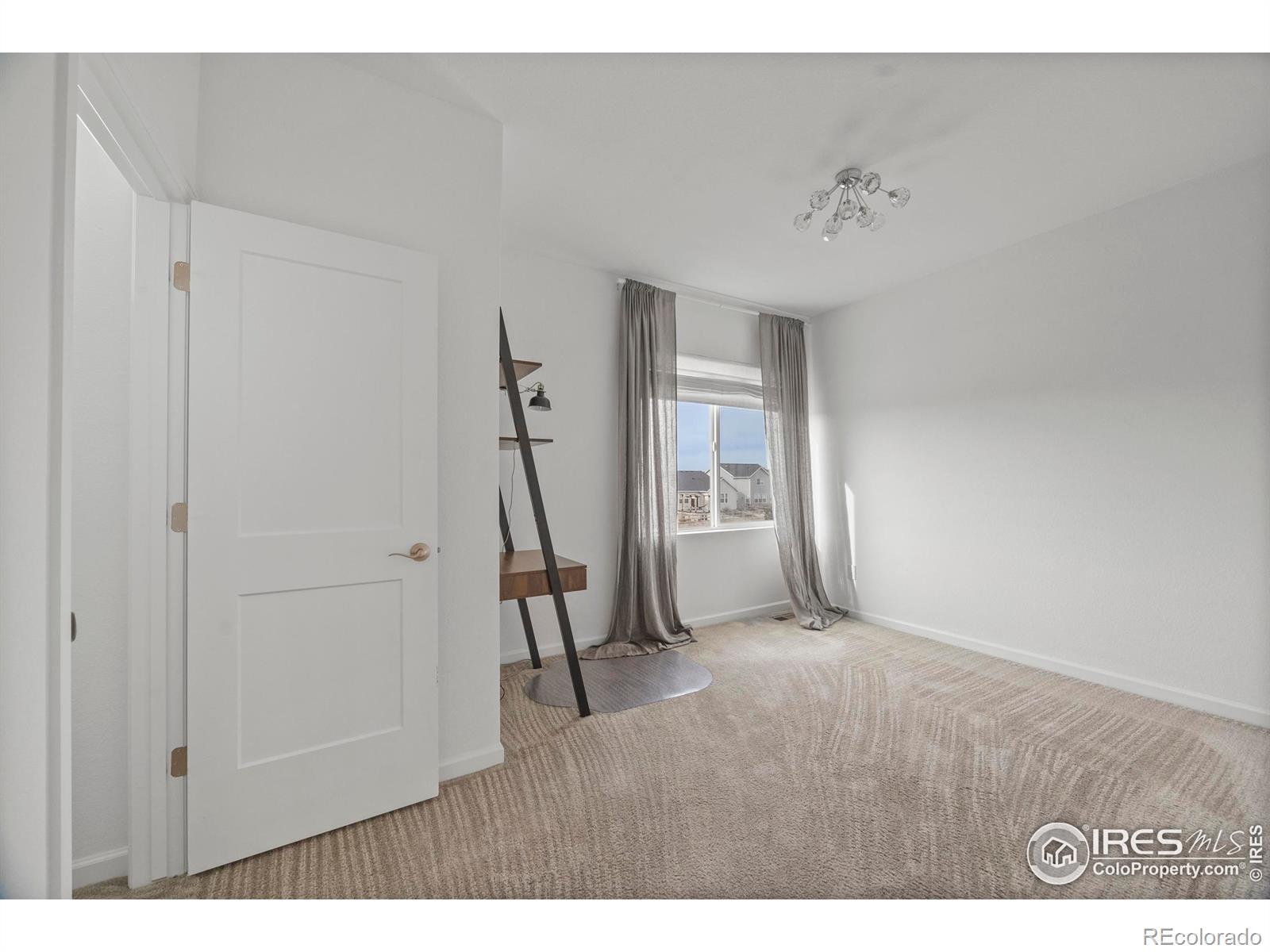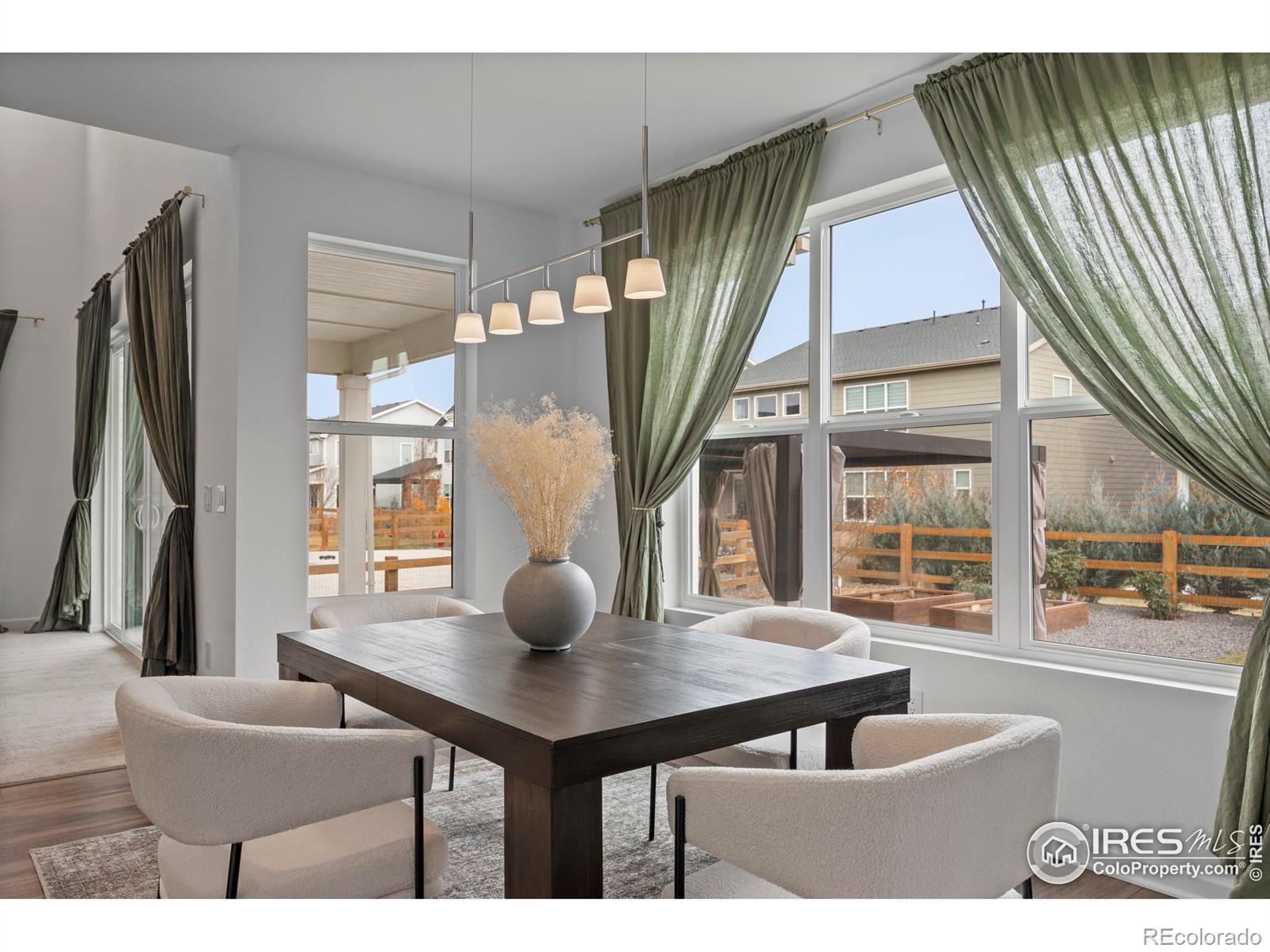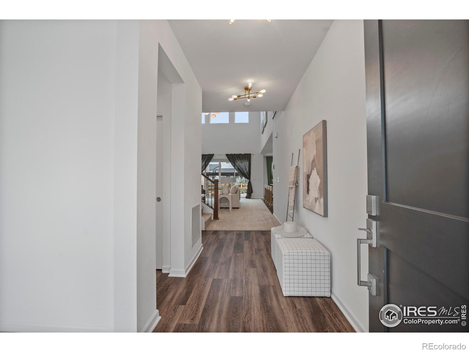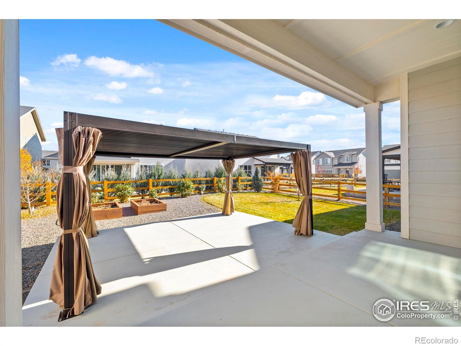 Welcome to Toll Brothers home built in 2021 featuring a highly functional layout with 4 bedrooms, 3 bathrooms, a 3-car garage with coated floors, and 4,023 total square feet. From the moment you step onto the covered front porch, you'll appreciate the thoughtful details throughout. The light-filled foyer welcomes you with beautiful luxury vinyl floors that extend through much of the main level. A spacious main-floor study with new carpet provides the perfect work-from-home space. The expansive living room features soaring ceilings that create an airy and open atmosphere, ideal for everyday living and hosting gatherings. The true chef's kitchen is the centerpiece of the home, offering a large quartz island, elegant marble backsplash, ceiling-height cabinetry, built-in oven, gas range and brand new refrigerator. A separate dining room adds additional space for both casual meals and larger entertaining. Oversized patio doors lead to an impressive outdoor living area with a large covered patio, extended patio space, and a covered pergola. The backyard is beautifully landscaped with rose bushes, fruit trees and 2 garden boxes, providing a peaceful and private setting for relaxation, gardening, or outdoor dining. Upstairs, the spacious primary suite features a generous walk-in closet and a luxurious en-suite bathroom with a walk-in shower and all the plumbing for a stand alone tub. Three additional bedrooms, a full bathroom, and a convenient upper-level laundry room complete the second floor. The full unfinished basement offers room for storage or future customization to fit your needs. Located on a quiet street and fronting a pocket park, this home combines comfort with an ideal setting. Residents of Trailside enjoy outstanding amenities including a pool, several parks, tennis/pickleball courts, a beautifully remodeled barn clubhouse, and direct access to a trail system connecting Timnath to Fort Collins. The house has been pre-inspected and has an active radon system.