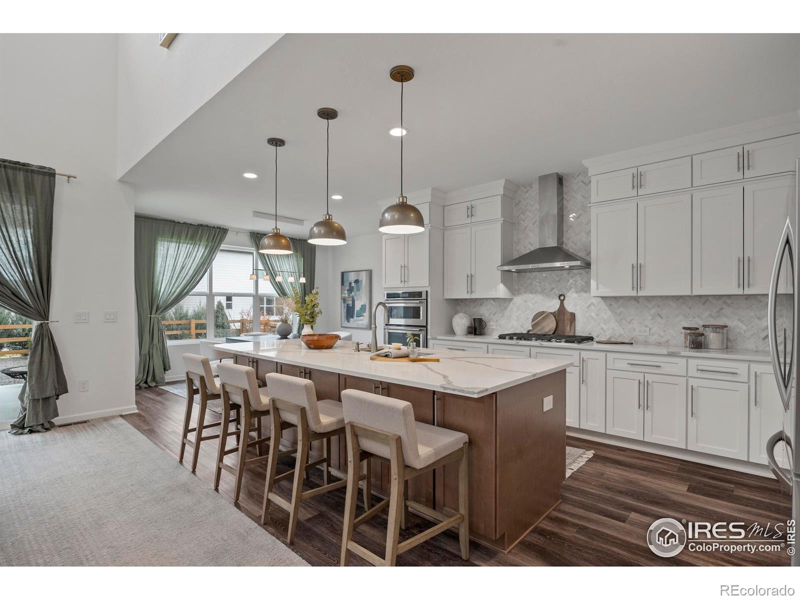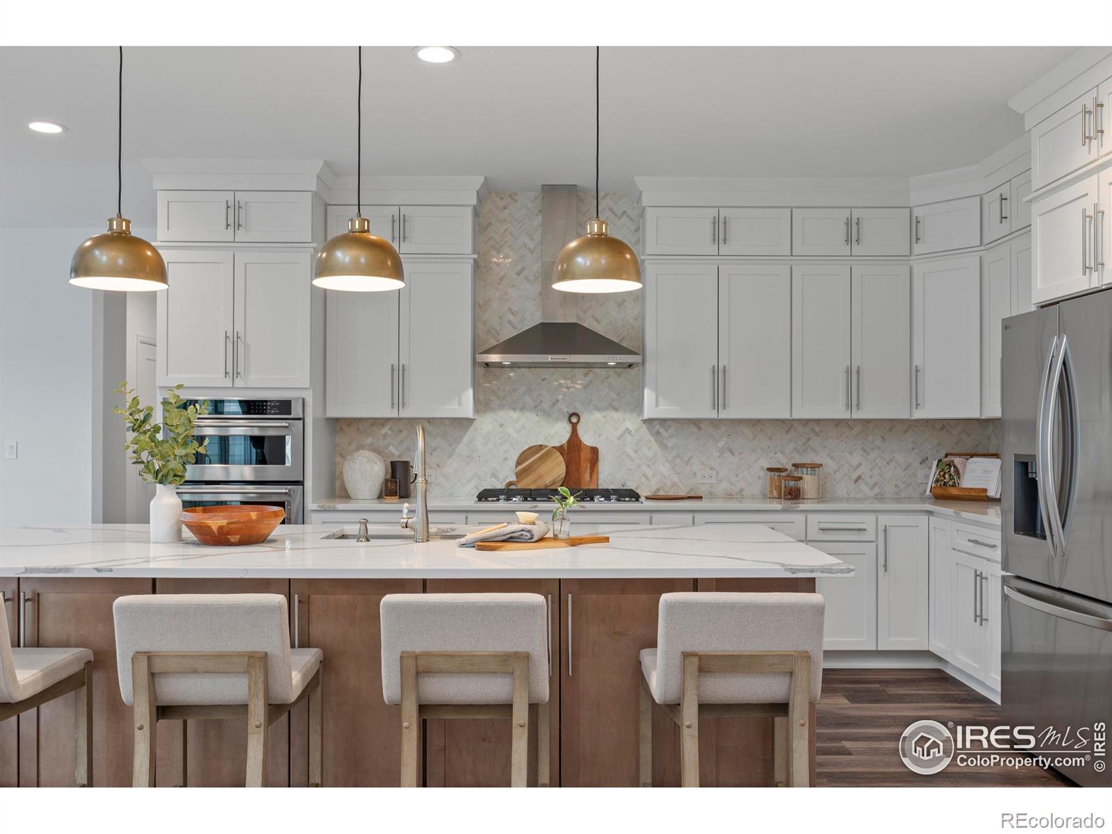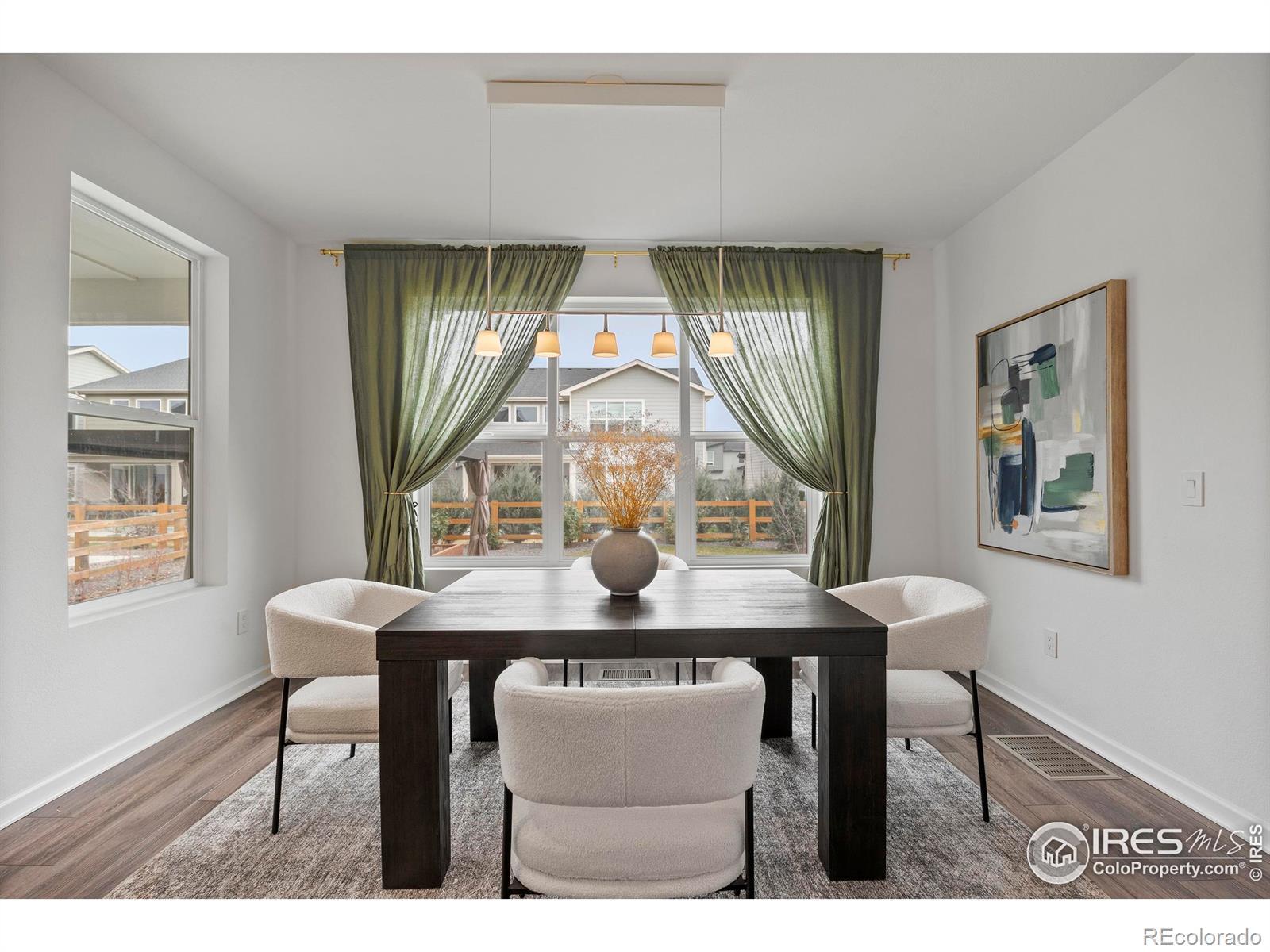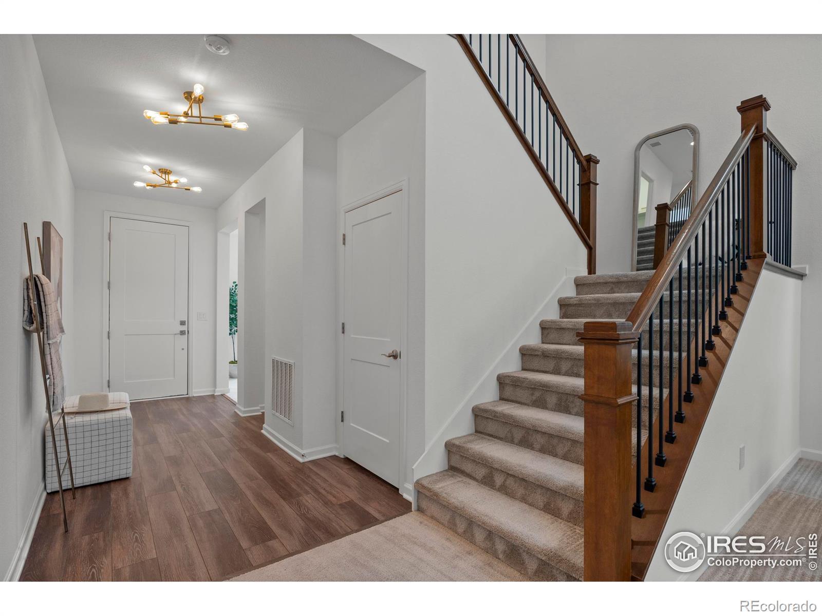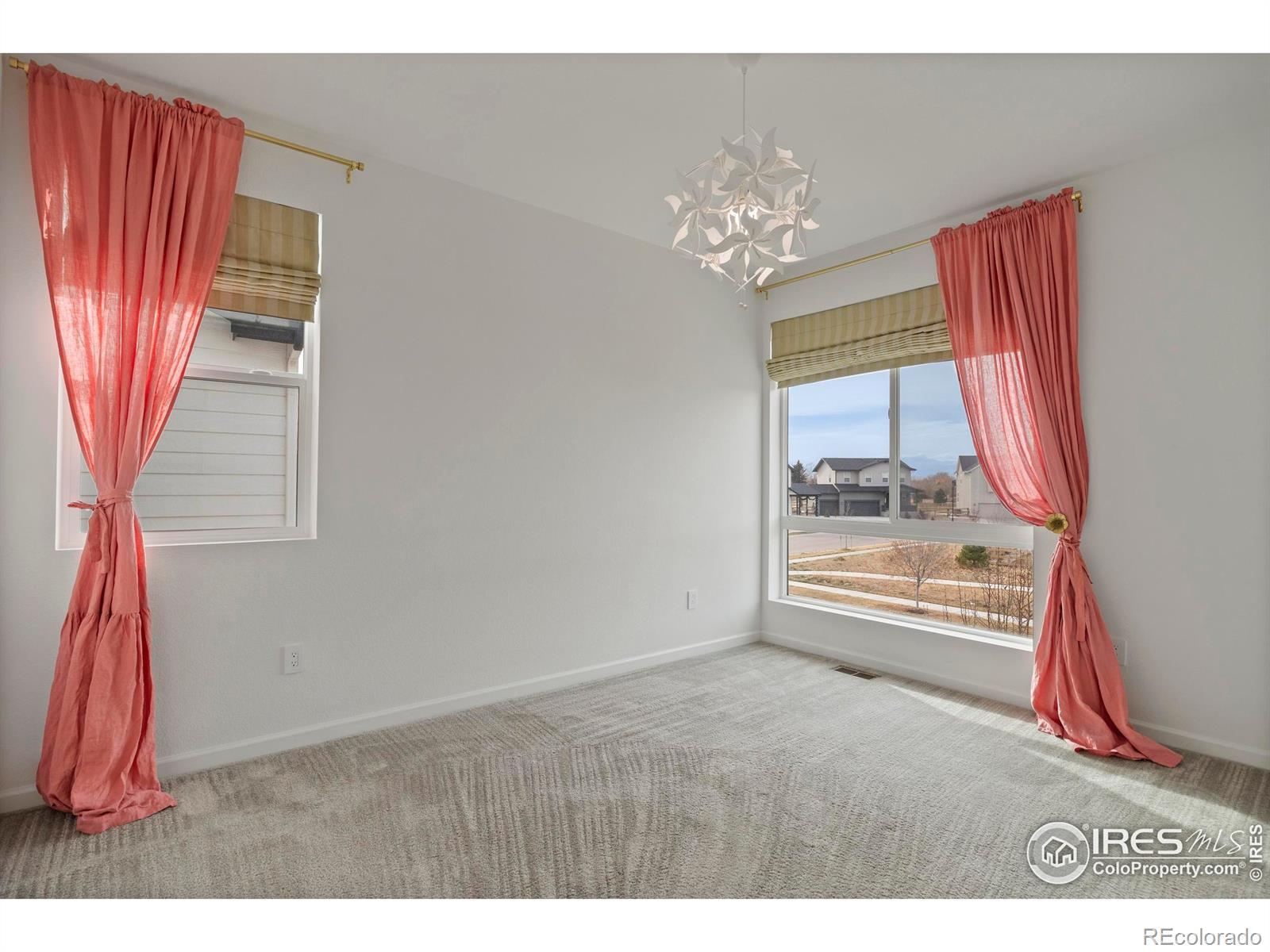 Welcome to Toll Brothers home built in 2021 featuring a highly functional layout with 4 bedrooms, 3 bathrooms, a 3-car garage with coated floors, and 4,023 total square feet. From the moment you step onto the covered front porch, you'll appreciate the thoughtful details throughout. The light-filled foyer welcomes you with beautiful luxury vinyl floors that extend through much of the main level. A spacious main-floor study with new carpet provides the perfect work-from-home space. The expansive living room features soaring ceilings that create an airy and open atmosphere, ideal for everyday living and hosting gatherings. The true chef's kitchen is the centerpiece of the home, offering a large quartz island, elegant marble backsplash, ceiling-height cabinetry, built-in oven, gas range and brand new refrigerator. A separate dining room adds additional space for both casual meals and larger entertaining. Oversized patio doors lead to an impressive outdoor living area with a large covered patio, extended patio space, and a covered pergola. The backyard is beautifully landscaped with rose bushes, fruit trees and 2 garden boxes, providing a peaceful and private setting for relaxation, gardening, or outdoor dining. Upstairs, the spacious primary suite features a generous walk-in closet and a luxurious en-suite bathroom with a walk-in shower and all the plumbing for a stand alone tub. Three additional bedrooms, a full bathroom, and a convenient upper-level laundry room complete the second floor. The full unfinished basement offers room for storage or future customization to fit your needs. Located on a quiet street and fronting a pocket park, this home combines comfort with an ideal setting. Residents of Trailside enjoy outstanding amenities including a pool, several parks, tennis/pickleball courts, a beautifully remodeled barn clubhouse, and direct access to a trail system connecting Timnath to Fort Collins. The house has been pre-inspected and has an active radon system.