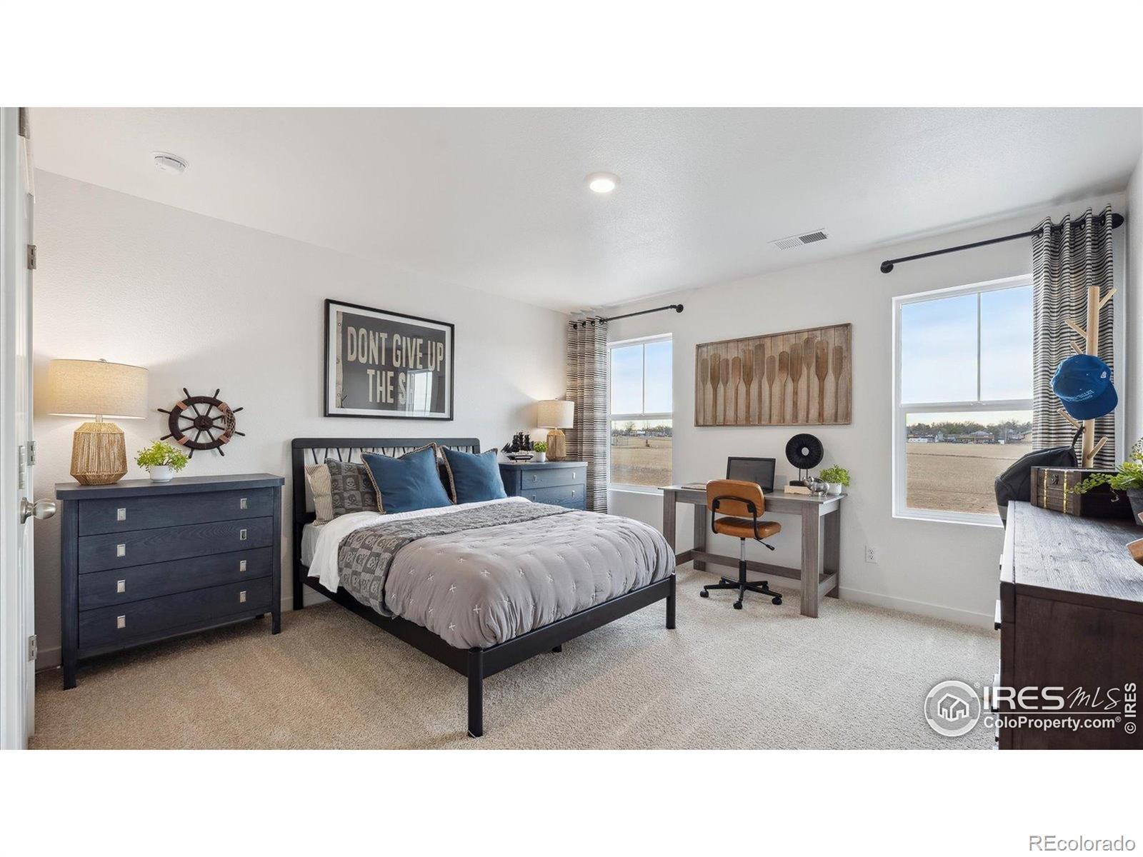Welcome to the sumptuous Holcombe! This fully loaded home is spacious, full of light, has 4 generously sized bedrooms, plus a 3 car garage and a big backyard! Nothing beats a brand-new Kitchen with sleek white cabinetry, quartz countertops, a super-sized island, a full suite of stainless-steel appliances and a walk-in corner pantry. Equipped with front and backyard landscaping, smart home technology, tankless hot water heater, front load washer/dryer, blinds throughout and a killer location! Easy access to I 25, Longmont, Firestone, and Mead, just steps from the Peninsula state park and a big central park/playground right down the street! Miles of trails and 2 dog parks too! Come live playfully at Lakeside Canyon! ***Estimated Delivery Date: February. Photos are representative and not of actual property***