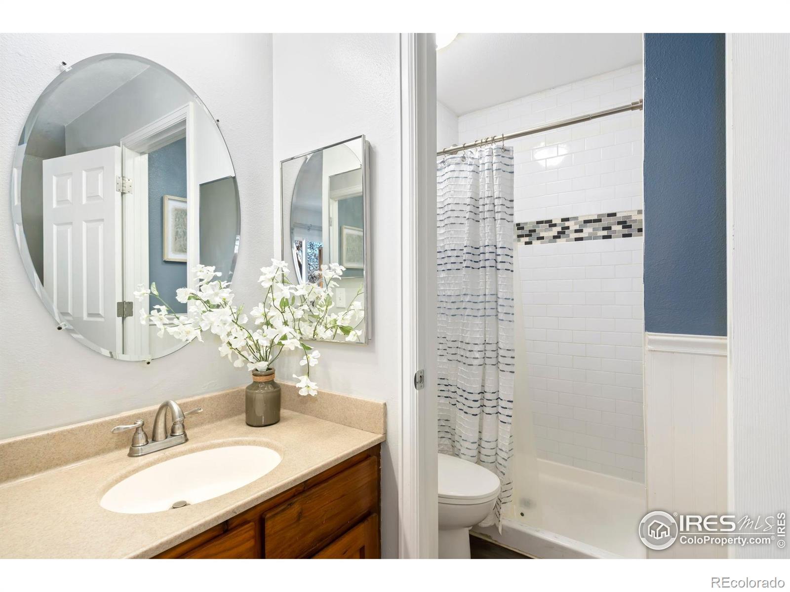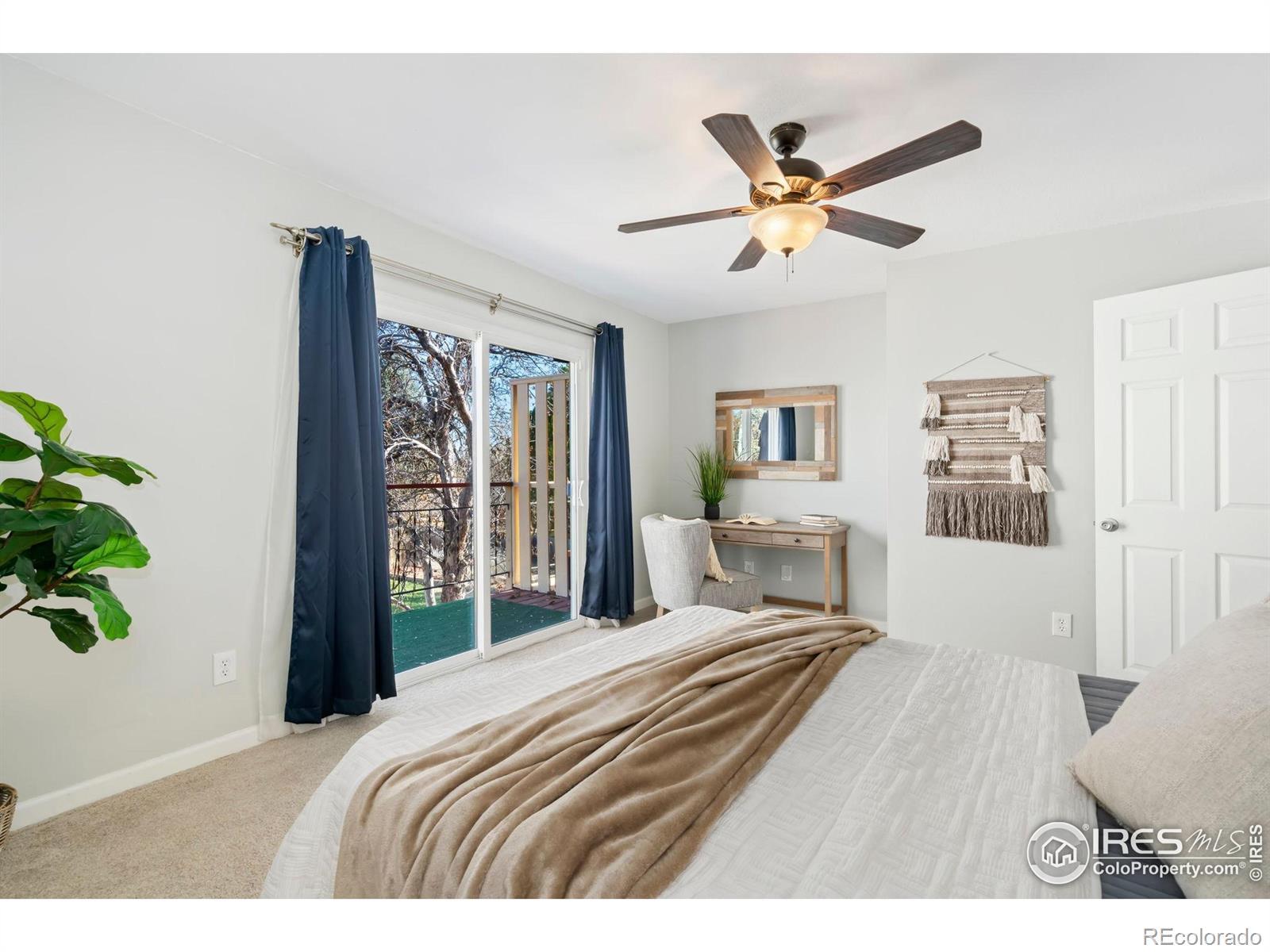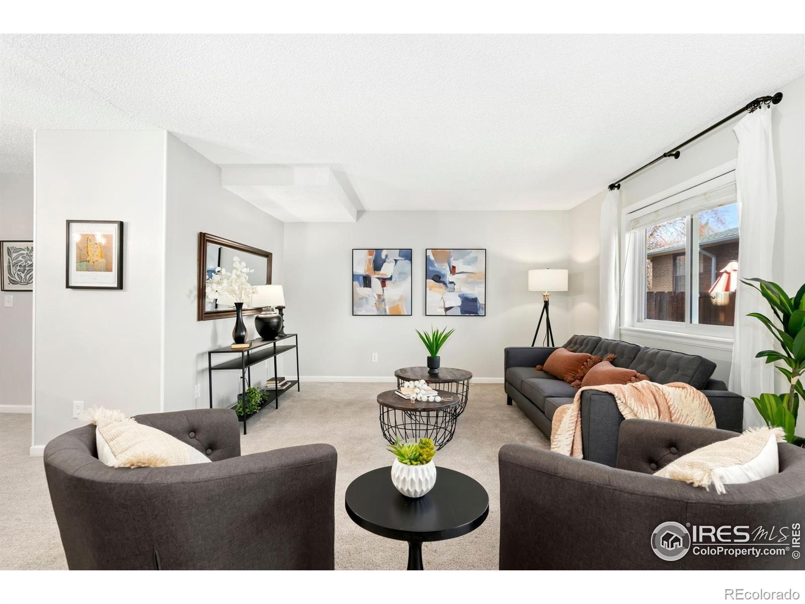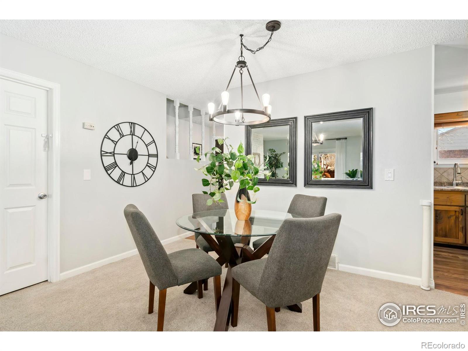 Move-in ready & beautifully maintained, this 3 bed/3 bath townhome offers low-maintenance living in a fantastic location! The main level features an open living & dining area with a wood-burning brick fireplace & loads of natural light. A large sliding door leads to the fully fenced private back deck - perfect for your morning coffee, or an evening glass of wine. The kitchen includes newer stainless steel appliances, a coffee bar/built-in desk, pantry, and a charming view of the greenspace from the kitchen sink window. Upstairs, the large primary suite offers a private east-facing balcony, walk-in closet, and en-suite bath. Two additional bedrooms share a full bath & a convenient hallway linen closet. The full unfinished basement provides excellent storage and untapped equity potential! Recent maintenance includes professionally cleaned carpet, serviced furnace and water heater, plus updated windows, AC, radon mitigation, and smart-home features for added comfort and peace of mind. 3 total parking spaces & close proximity to Benson Sculpture Park, Lake Loveland, biking/walking trails, and nearby golf courses complete this comfortable & easy-living townhome.