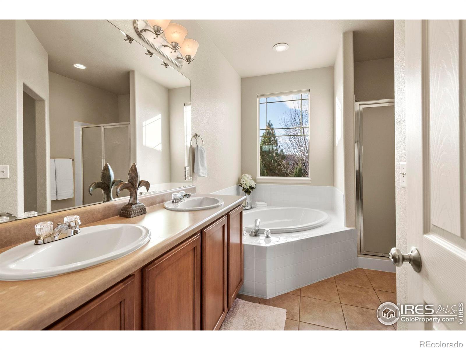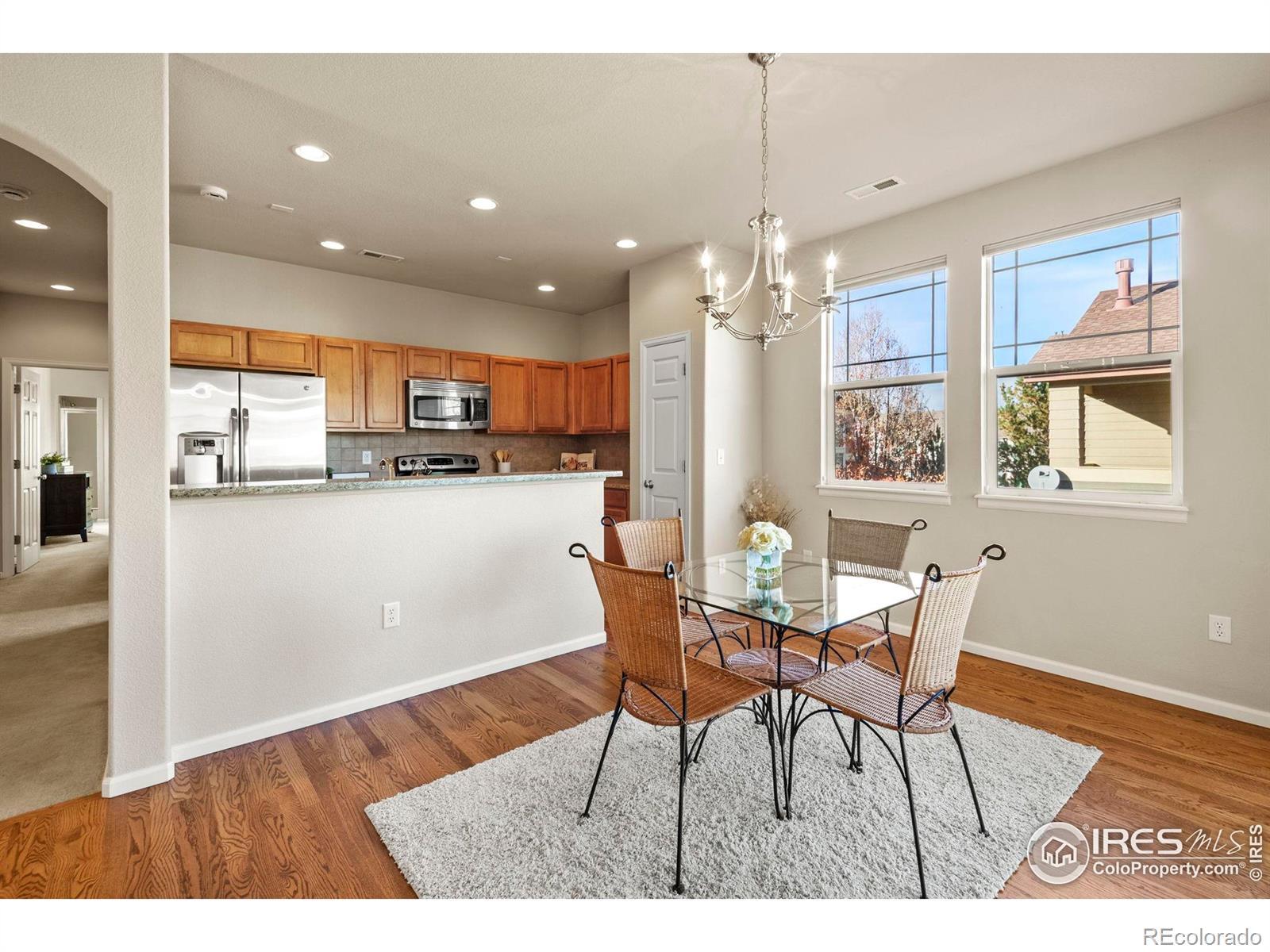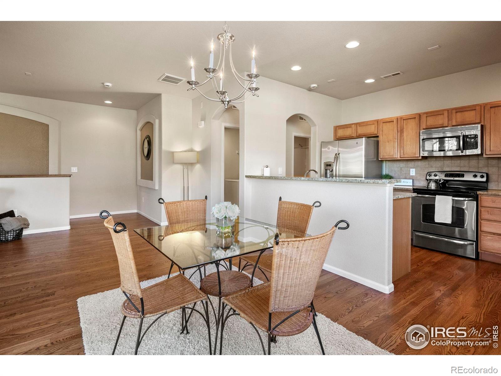 Welcome to this beautifully appointed 2-bedroom, 2-bath condo in the highly sought-after Observatory Village community. Ideally located near I-25, scenic trails, top-rated schools, Twin Silo Park, and a variety of shopping and dining options, this home offers the perfect blend of comfort and convenience. Inside, you'll find authentic hardwood floors, upgraded lighting, and a thoughtfully designed open layout wired for surround sound, ideal for both relaxing and entertaining. The upgraded kitchen features slab granite countertops, stainless steel appliances, roll-out shelving, and pantry for extra storage. The generous primary suite is a true retreat, complete with a private balcony and a spa-like ensuite showcasing a large soaking tub and double vanity. A well-sized second bedroom and full bath offer flexibility for guests, a home office, or hobbies. Enjoy low-maintenance living in a vibrant neighborhood with access to parks, paths, and community amenities. This is the perfect place to call home.