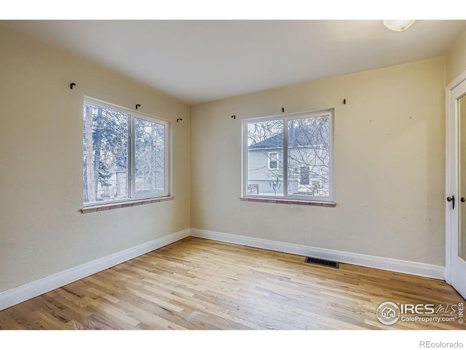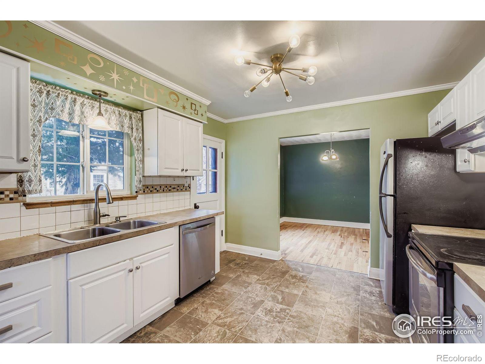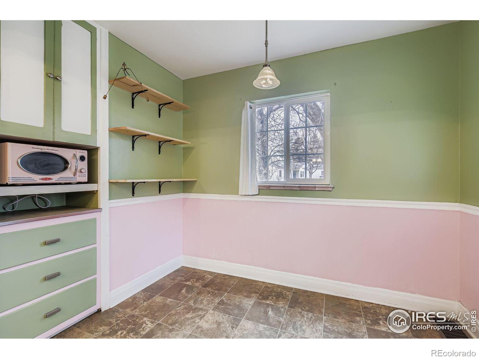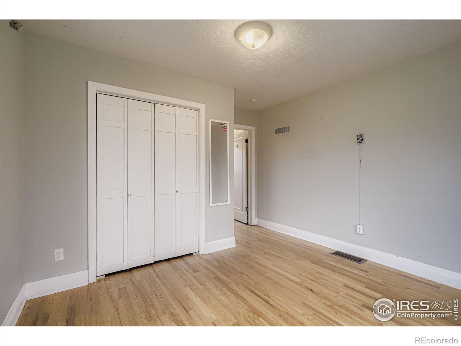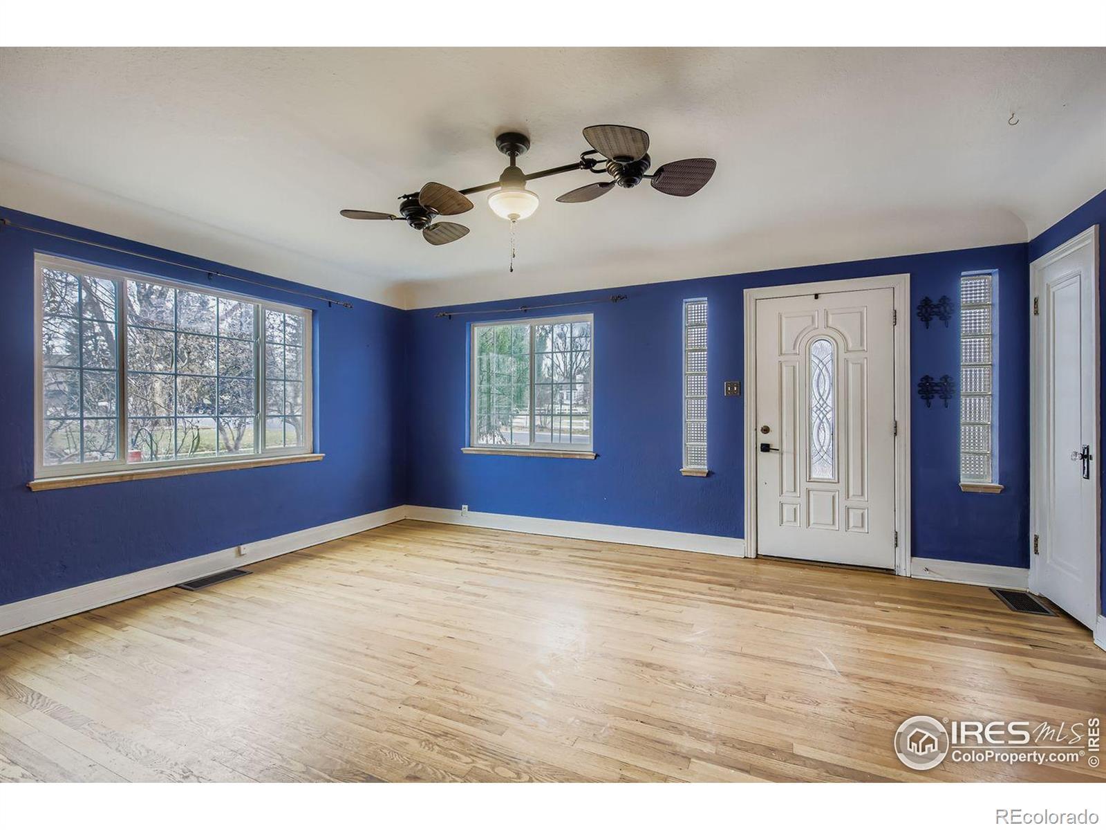 Welcome home to this delightful 1940s brick bungalow, a true Greeley charmer located just one block from the coveted Glenmere Park. Less than 2 miles from the University of Northern Colorado. This property beautifully blends vintage character and charm. Step inside to discover classic architectural details, including graceful cove ceilings and original built-in bookcases, which add warmth and character throughout the main living areas. The large kitchen includes a breakfast nook and an electric range/oven. The home features beautiful hardwood floors in most main-level areas. The finished walk-out basement offers additional living space with a large family room and two non-conforming bedrooms, perfect for guests, student living, or a home office, convenient, separate outside entrance. Surrounded by mature trees, the large lot offers a serene, shaded front and back yard. A one-car attached garage for convenience and a storage shed for yard equipment ect. This home is an oasis, and full of potential, ready for its next owner to enjoy the quiet neighborhood and mid-century appeal.