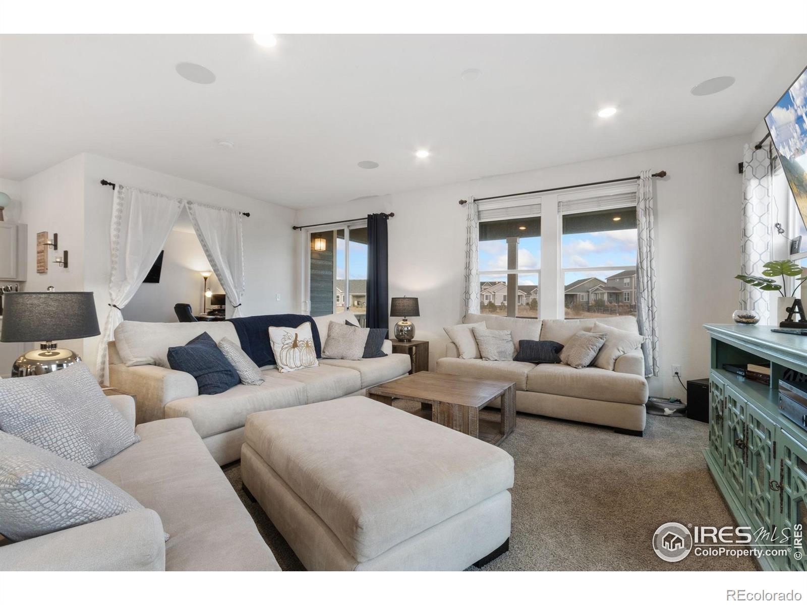 Beautiful 5 Bed, 3 Bath Two Story Home on a Spacious Corner Lot! This impressive two story home offers 5 bedrooms, 3 bathrooms, and an open concept floorplan designed for both comfort and functionality. The generous living room features a built in speaker system, creating an ideal space for both entertaining and everyday living. The kitchen provides abundant workspace with a large island, quartz countertops, stainless steel appliances, and a convenient walk in pantry. A dedicated dining room and a main level office, which could also serve as a 6th bedroom, add flexibility for work, hosting, or day to day needs. Situated on a desirable corner lot, the backyard has been professionally landscaped and includes a covered deck and stamped concrete patio, making it perfect for enjoying Colorado's outdoor lifestyle. The oversized 2 car garage adds convenience and versatile storage options. Located in a sought after area of Loveland, this home is close to shopping, dining, Boyd Lake, I-25, schools, and more offering excellent access to everything the community has to offer.