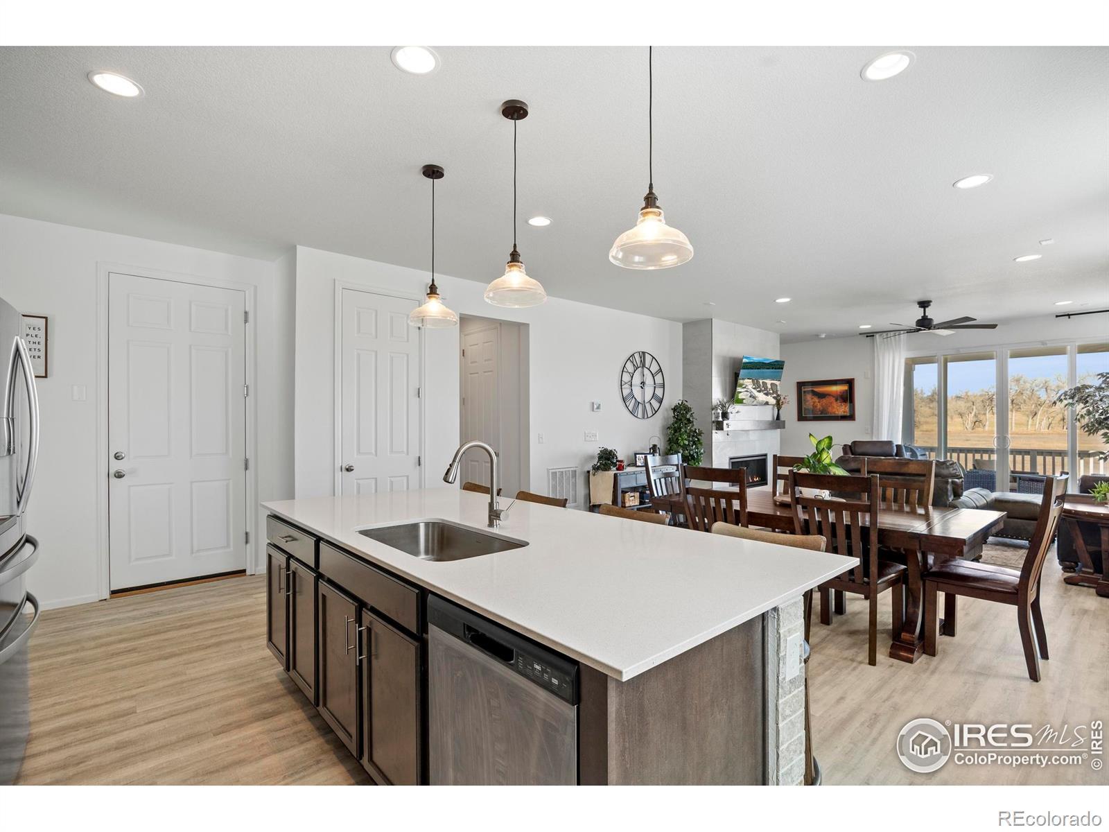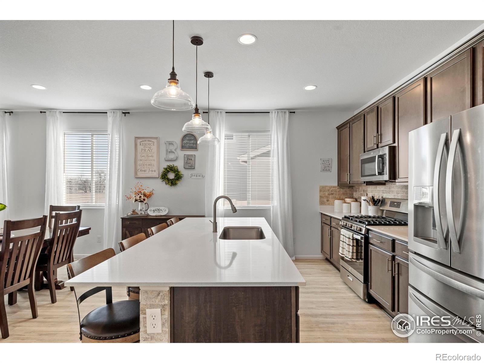 Welcome to 4145 Satinwood Drive, a beautifully upgraded, truly move-in ready ranch style home, offering exceptional privacy, scenic views, and an amenity rich lifestyle. This nearly new home features over 1,800 square feet of well-designed, inviting living space with 3 bedrooms, 2 bathrooms, a dedicated study with French doors, a laundry room, and generous dining and living areas. The stunning kitchen is the heart of the home, showcasing quartz countertops, a travertine backsplash, stainless steel appliances including a gas range, upgraded lighting, and a spacious island with breakfast bar. The open concept living and dining area is warm and welcoming with a cozy gas fireplace, creating the perfect setting for everyday living or entertaining. Both bathrooms feature beautiful quartz countertops, and other thoughtful features that add comfort and style throughout the home include attractive LVP flooring, a tankless hot water heater, 8-foot doors, and stylish blinds and window coverings. What truly sets this home apart is its premium location backing to natural open space, a rare level of privacy and serenity. The covered back patio is an ideal place to relax and unwind while enjoying the peaceful surroundings. The fully fenced backyard is professionally landscaped with a sprinkler system, so this home offers all the benefits of a new home without the extra work or expense, just move right in and start enjoying all that life in Thompson River Ranch has to offer!