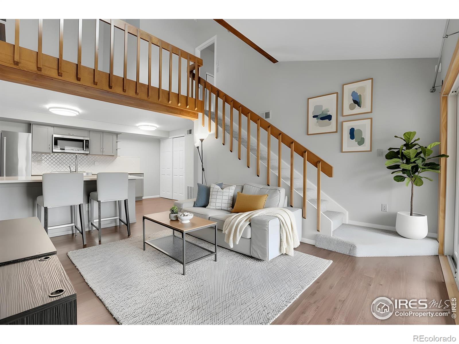 Gorgeous remodelled top floor 2 bed + office, 2 story condo w/ Flatiron views!! Light-filled, stylish, and perfectly situated in the heart of South Boulder. Move right in and enjoy this impeccably maintained and upgraded unit w/ vaulted ceilings, beautiful laminate wood flooring and an eye-catching wood-burning fireplace that anchors the living room with character and charm. A private terrace frames picturesque Flatiron views-your daily backdrop. The remodelled eat-in kitchen features premium stainless appliances including KitchenAid induction stove & refrigerator w/ bottom drawer freezer, and Bosch dishwasher. A breakfast bar, pantry, and thoughtful layout make this a wonderful place to cook, gather, and entertain. All the windows and sliders have been replaced and the energy efficient heat/AC units are newly installed. A comfortable bedroom on the main level provides great separation of space, while upstairs, a versatile loft is ideal for an office, creative space, or lounge. The primary suite feels airy and serene with vaulted ceilings and an ensuite 3/4 bath. The floorplan lives larger than expected thanks to soaring ceilings and abundant natural light, creating an open and uplifting atmosphere throughout. Flatiron views from the loft add a touch of everyday inspiration, and the separation of bedrooms across two levels offers welcome privacy and flexibility. Amazing location just a short walk to the Table Mesa Park & Ride for effortless airport trips or Denver outings, with the Dash bus stopping right outside for easy access to CU. Located steps from the sparkling community pool and nearby neighborhoods offer peaceful walking routes, while the East Boulder Rec Center and surrounding trails provide convenient opportunities for fitness and outdoor enjoyment. A beautifully updated, energy-efficient, thoughtfully designed condo with exceptional natural light, views, and convenience-this is South Boulder living at its best.