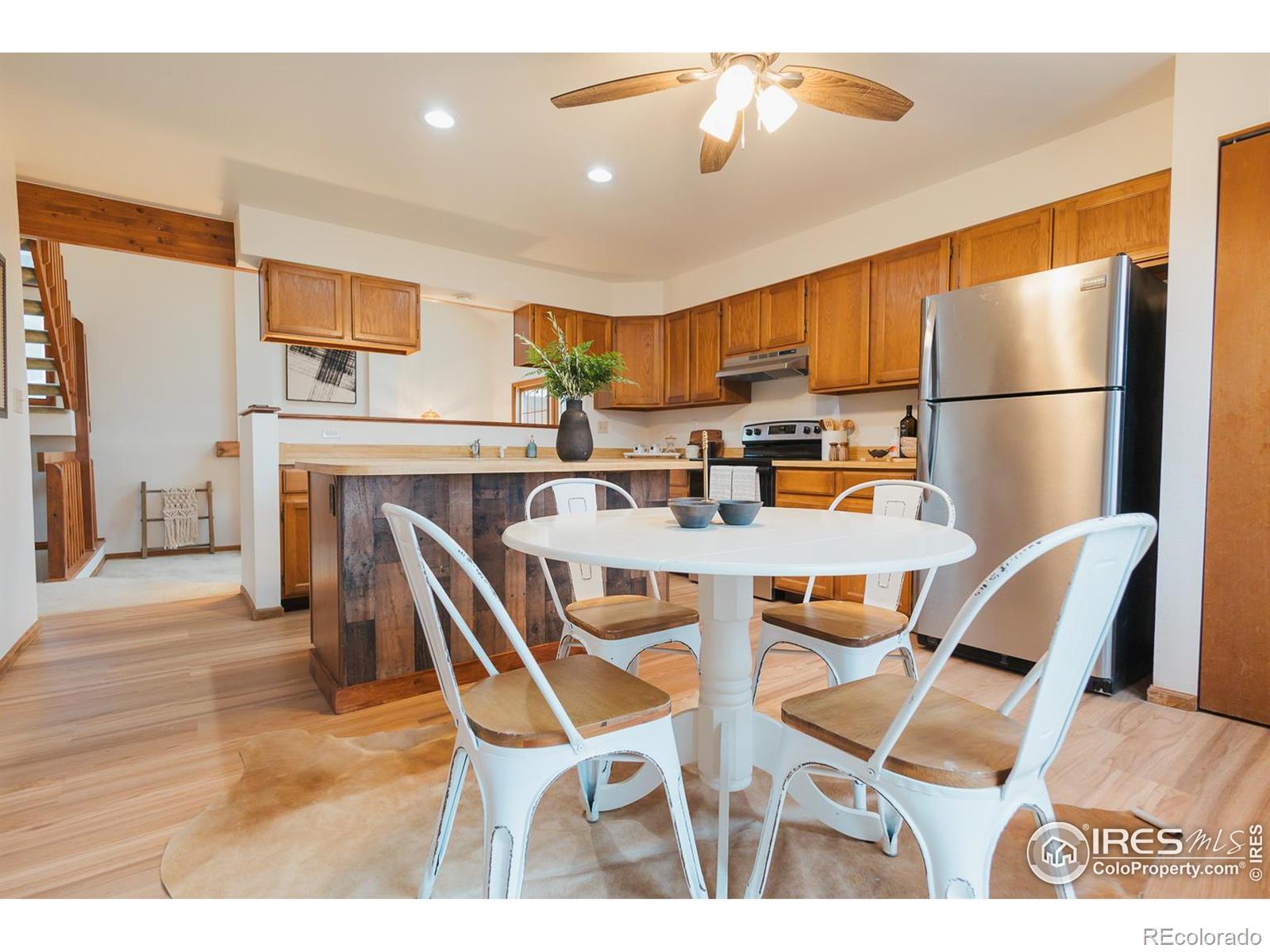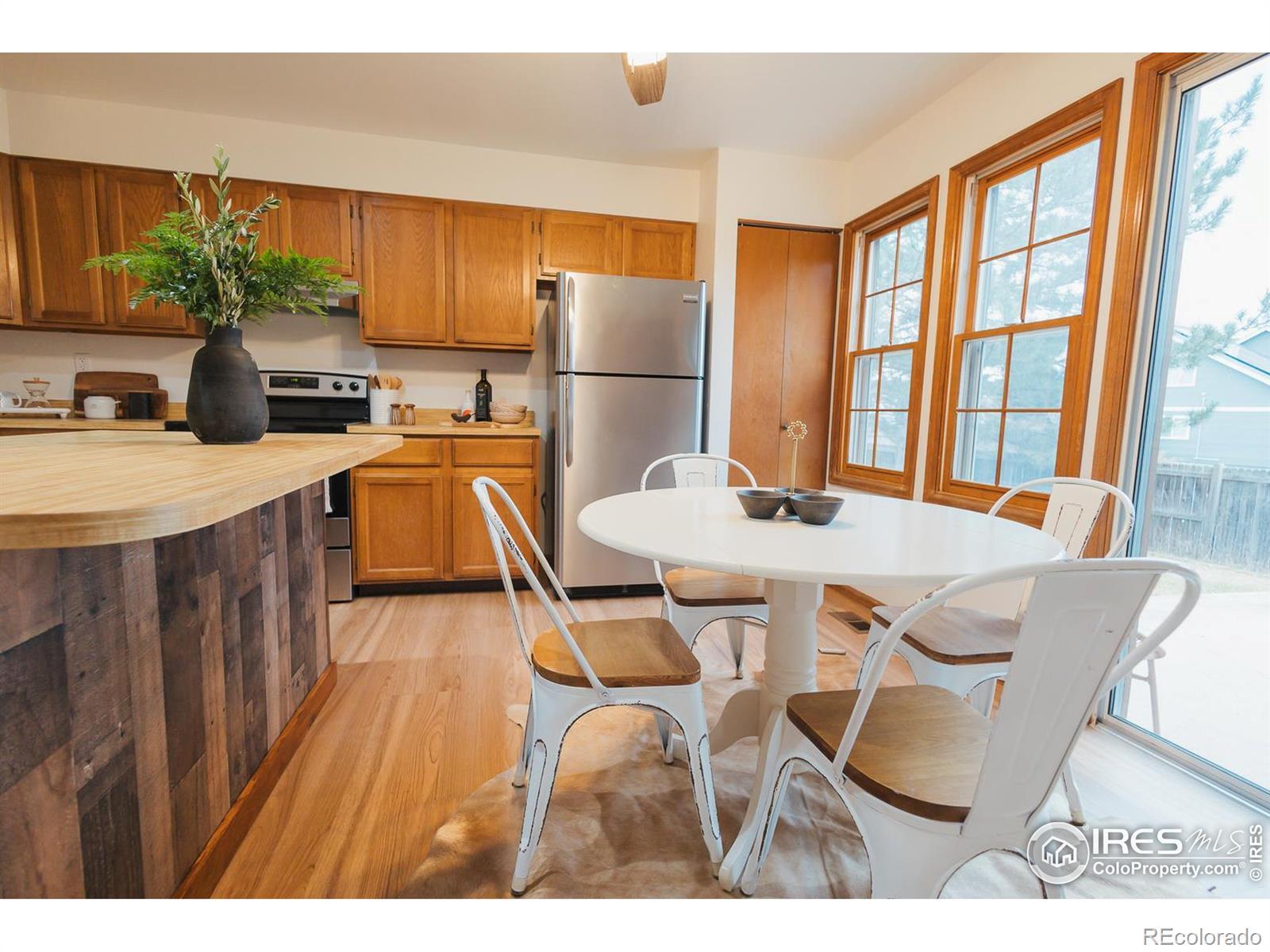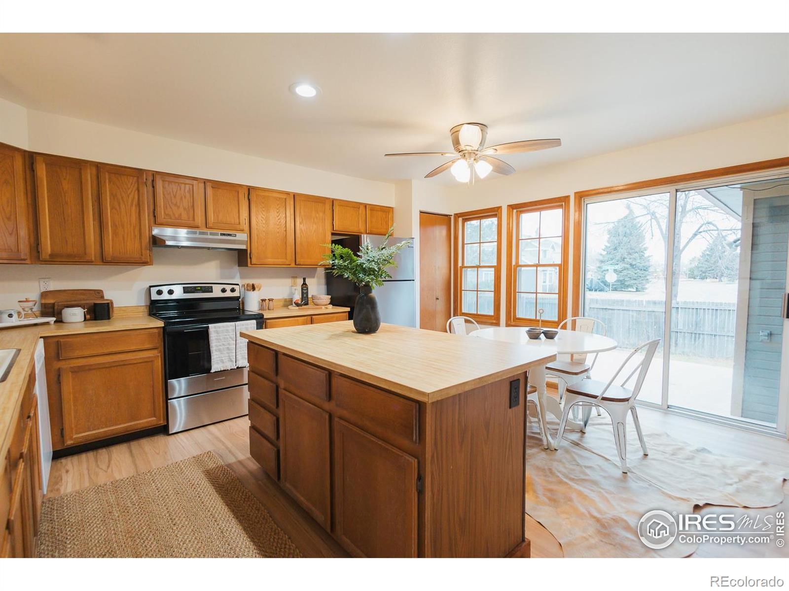 Charming 1984 one-owner, two story home located on a corner lot at the end of a cul-de-sac in the Willow Park neighborhood. This home boasts unobstructed views of the foothills and Horsetooth Rock. The main level features an open floor plan with vaulted ceilings, a highly desirable main level primary with a full bath, two living areas including a living room with abundant natural light, a family room with a wood burning fireplace and an eat-in kitchen. Two additional bedrooms and full bath are located on the second level. You're all set up for future growth in the unfinished basement which includes rough-in plumbing and an egress window. Upgrades include new Lifeproof VLP flooring in the kitchen, living room and main floor bedroom and bath (2025), new slate flooring at the entry (2025), new range, hood and oven (2025), new kitchen ceiling fan (2025), new GFCI outlets in the kitchen and both bathrooms (2025), new combination CO2/smoke detectors (2024) and newer GAF Timberline Lifetime roof (2014). The oversized 2-car garage is long enough to accommodate longer vehicles and provide ample storage. The fully fenced yard provides year-round beauty and color as well as abundant shade in the summer. The 10'x12' shed and gated parking area are the cherry on the top. Don't miss out on the liveablity of this home and ease of access to the MAX transit, neighborhood parks, and schools(Rocky Mountain, Webber, Lopez and Front Range Community College).