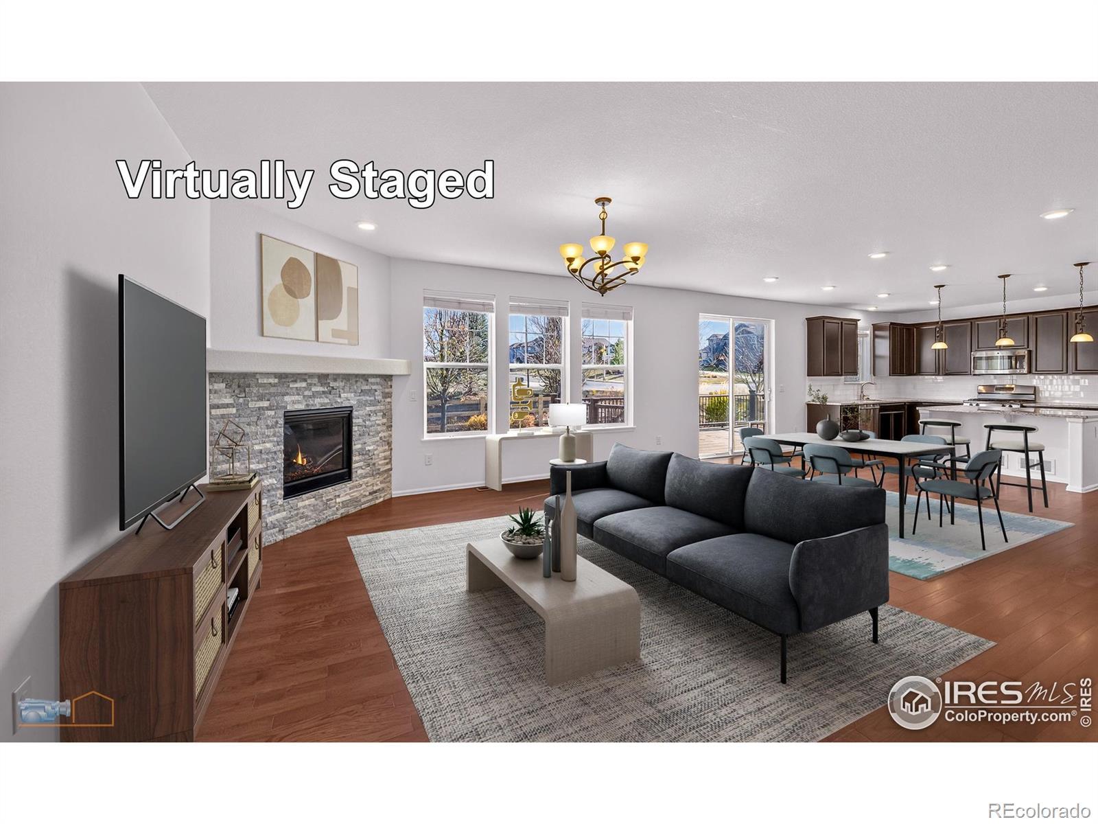 FABULOUS HOME IN FLATIRON MEADOWS WITH MOUNTAIN VIEWS AND CORNER LOT! Welcome to this stunning 5-bedroom, 4-bath home located in the highly sought-after Flatirons Meadows subdivision of Erie, Colorado. This beautifully updated residence offers an inviting open-concept layout, featuring a spacious kitchen that flows seamlessly into the large living room, complete with a fireplace perfect for cozy Colorado evenings. The kitchen shines with stainless steel appliances, granite countertops, and fresh interior paint throughout the home. A dedicated main-level office provides the ideal space for remote work or study. Enjoy peace of mind with major upgrades including a new roof (2023), a whole-house water purification system, and a newer HVAC system. The expansive unfinished basement offers endless potential for customization. The backyard is private with no neighbor and mature trees. Additional highlights include a two-car attached garage and an easy walk to Meadowlark K-8 School. This exceptional home blends comfort, style, and convenience-don't miss your opportunity to make it yours!