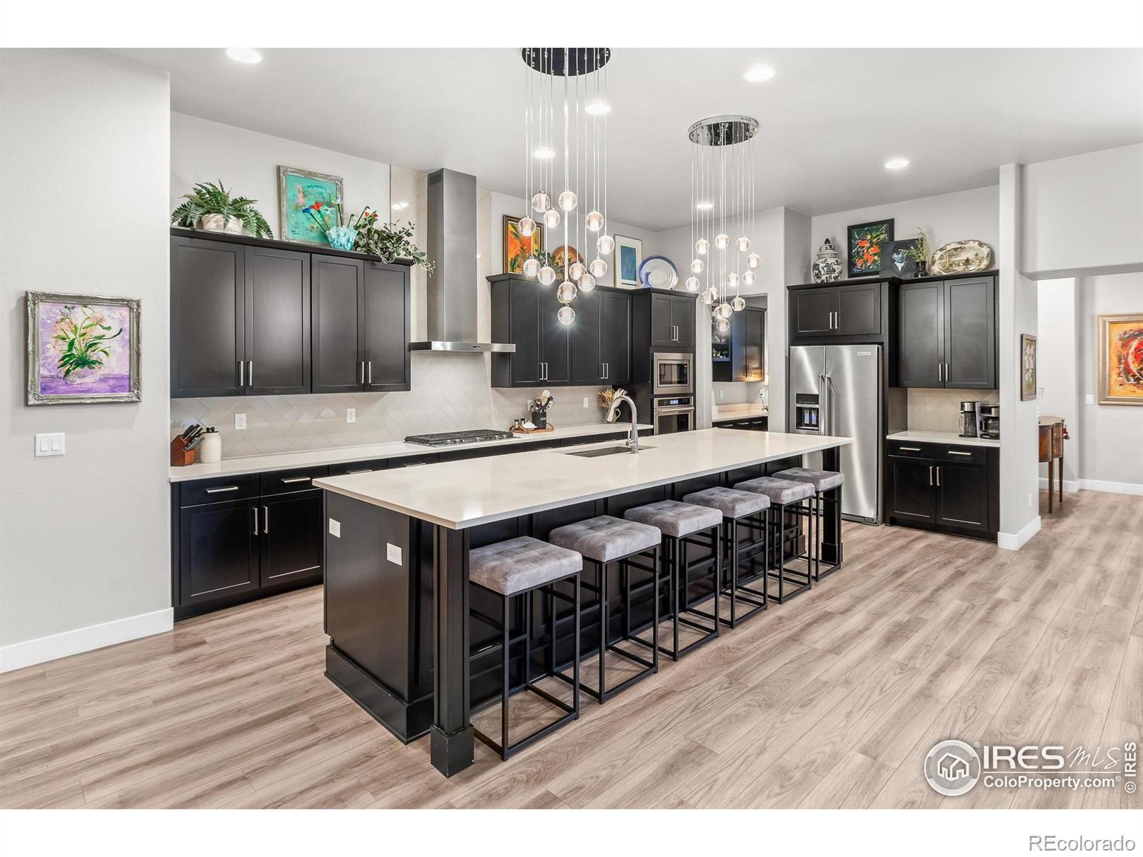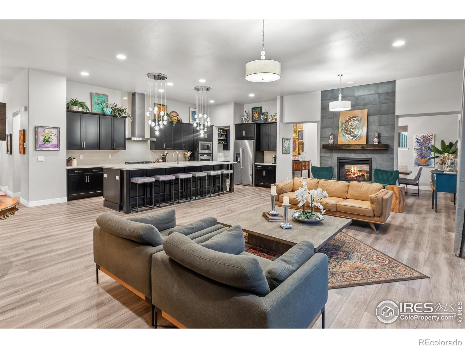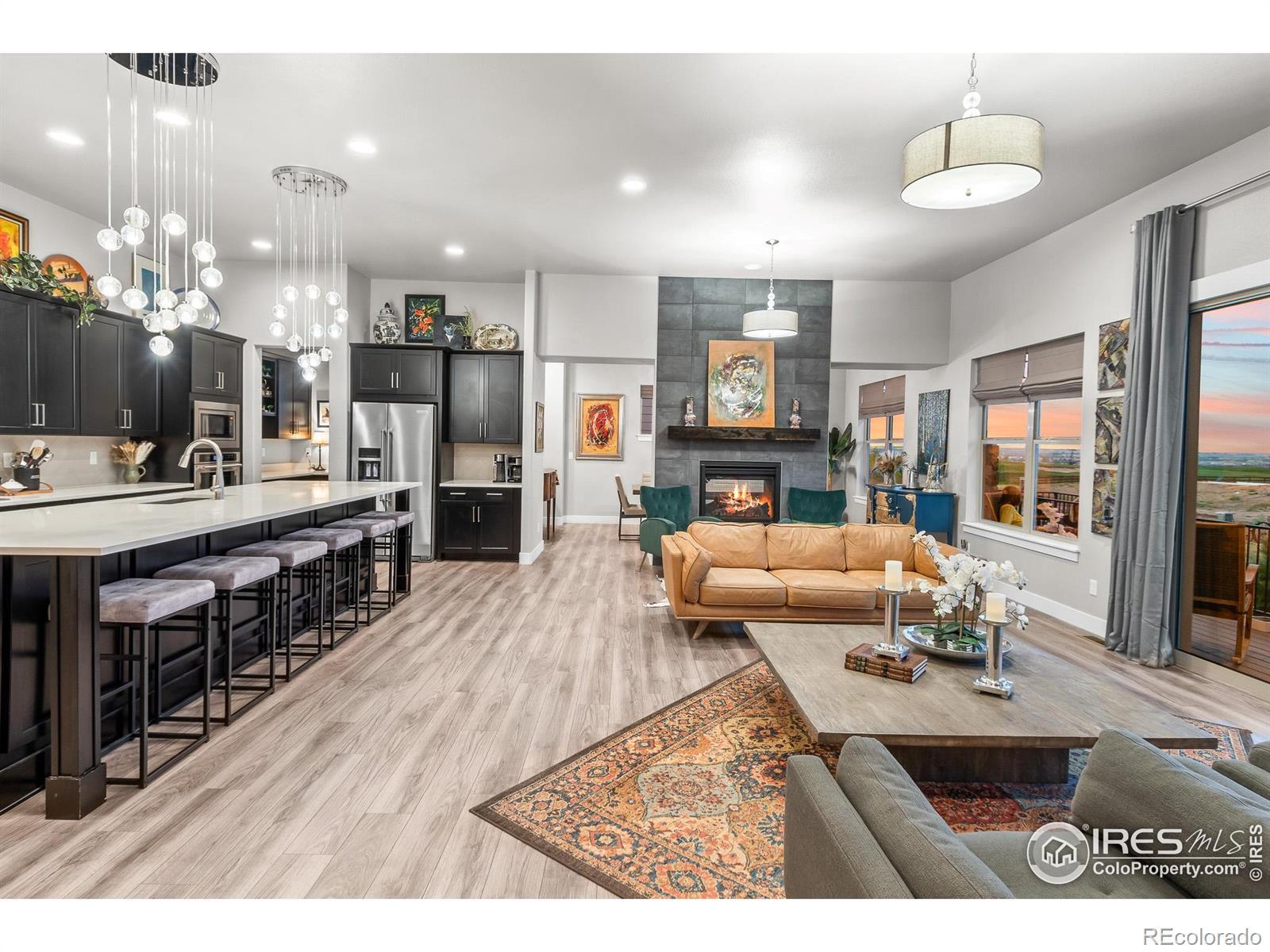 With similar golf course vacant lots selling at $900K+ this move in ready customized sprawling ranch offers an unbeatable opportunity for golf course living at a fraction of the cost. Welcome to this stunning in home in one of the most sought-after golf course communities in Northern Colorado. This expansive ranch, at over 2,500 sq ft on the main, features a truly sprawling floor plan that is designed for both high end elegance and comfort. When you walk in, your eyes gravitate to the huge stacking sliding doors spanning over 12 feet that lead to open space, while the grand living area with its massive island & custom light fixtures bring your attention back to this stunner both inside & out. The kitchen boasts top-of-the-line appliances, custom cabinetry, beautiful countertop selection, butler's pantry and massive island that serves as the perfect centerpiece for entertaining all enhanced by beautiful light fixtures that add sophistication & elegance to the space. The spacious great room is filled with natural light & offers breathtaking views of the open space & the lush green fairways beyond. It also features two fireplaces, one that is double sided into the formal dining room. The primary suite is a true retreat, featuring a spa-like ensuite bathroom and generous walk-in closet. The additional bedrooms and bathrooms are equally well-appointed, ensuring comfort and luxury throughout. Downstairs you'll find a expansive basement entertaining area with wet bar that is open and airy with the grandiose sized rooms and bright light from the garden level windows. Step outside to your private backyard oasis, where you can enjoy views of the golf course & surrounding open space. Whether you're hosting a barbecue on the patio or simply enjoying a quiet evening under the stars, this outdoor space is perfect for relaxation & entertainment. With countless upgrades and designer homeowner touches throughout, this home exemplifies quality & style. This property is a Short Sale