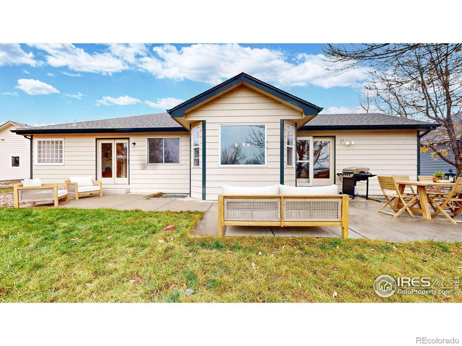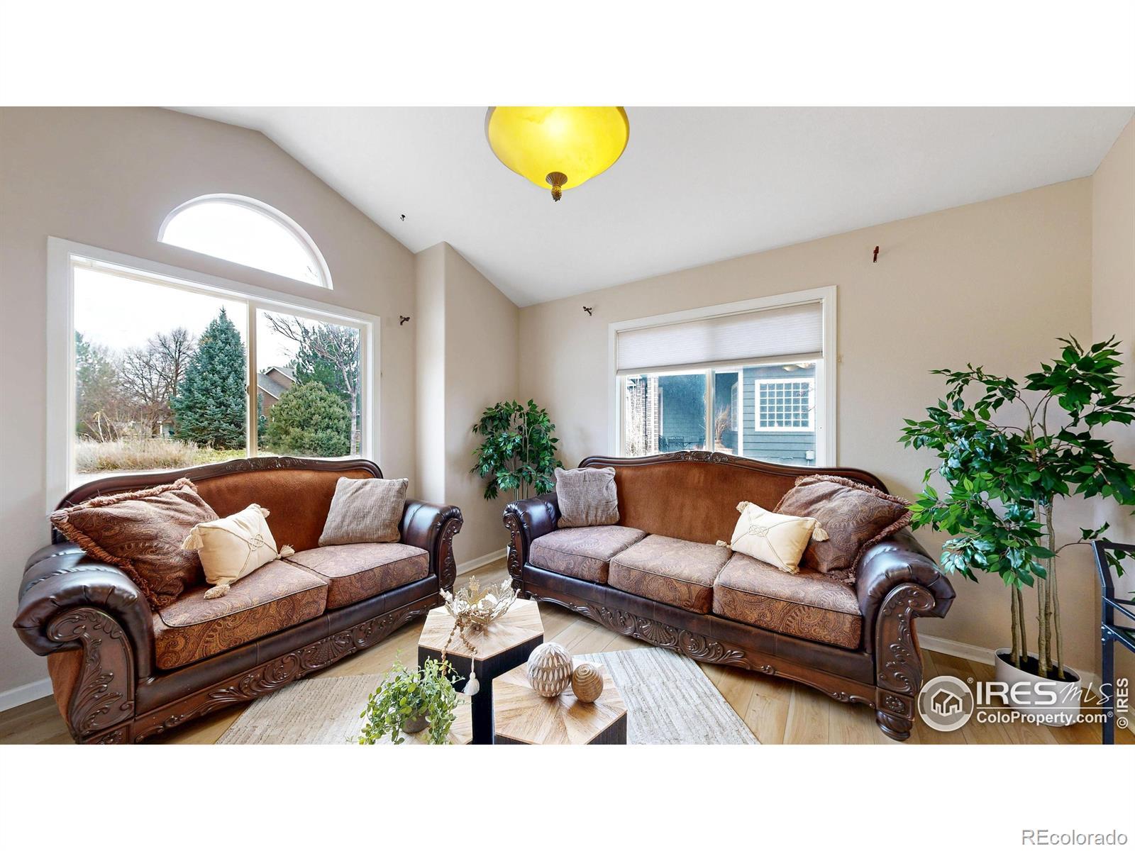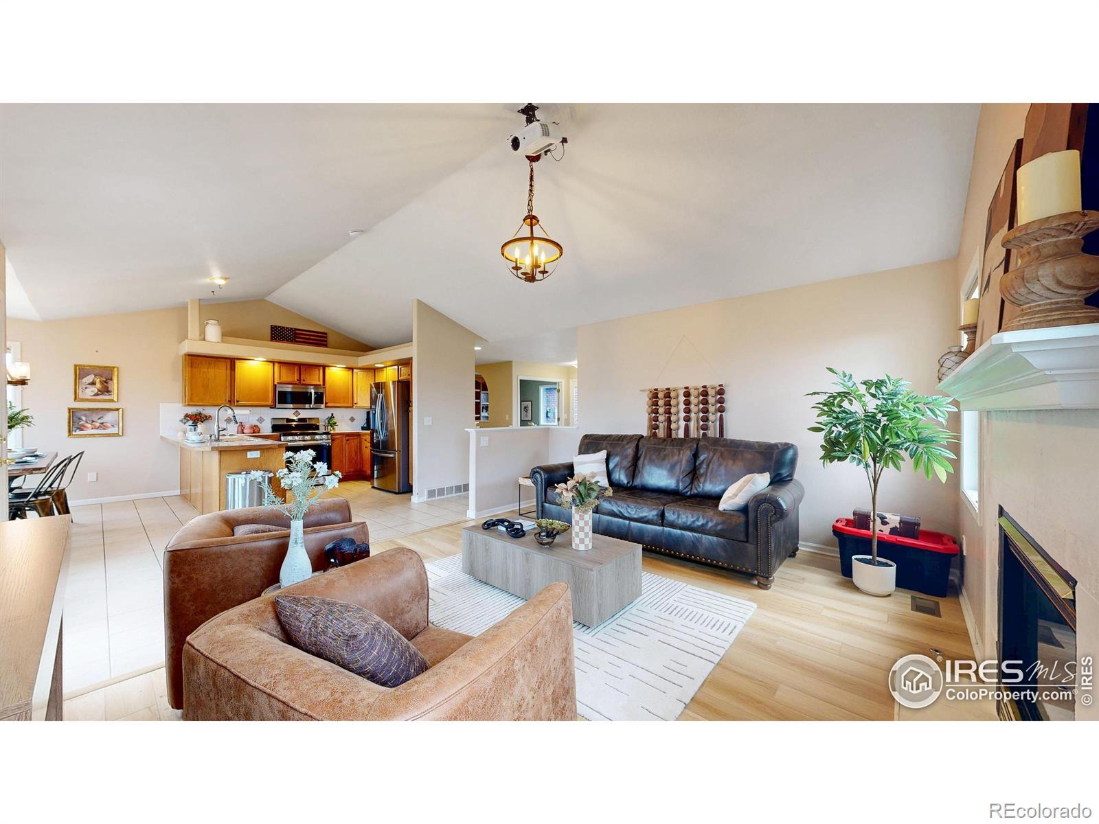 Welcome to this beautifully maintained home offering a warm, comfortable atmosphere inside and out. Featuring 4 bedrooms, 3 bathrooms, and an office, this home is thoughtfully designed to provide both functionality and charm. Outstanding mountain views backing up to extensive hiking/biking trails, Big Thompson River as well as numerous ponds and Lakes. The interior welcomes you with a bright, open main living space that includes a comfortably sized living room with large windows that fill the home with natural light. The adjoining kitchen provides good counter workspace, traditional cabinetry, new updated appliances, and a dining area large enough for family meals or casual gatherings. The primary suite includes ample space, new LVP flooring, lots of natural light, and good sized attached 5-piece bathroom and walk in closet. Downstairs, you will find 2 additional bedrooms, full bathroom, a large rec room, cozy fireplace, and full wet bar with appliances that could easily be used for Mother in Law Suite. Outside, the property's lot offers room to garden, relax, or create your ideal outdoor entertaining space. The quiet cul-de-sac setting adds privacy and reduces drive-through traffic. The location brings added value near dining, shopping, and entertainment. With easy access to major commuter routes, parks, schools, and local amenities, this property offers a balanced lifestyle that combines approachable living, affordability, and the convenience of being close to what makes Loveland such a desirable community, all in one well-cared-for home ready to welcome its next owner.