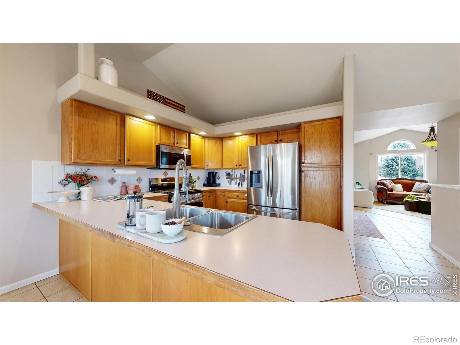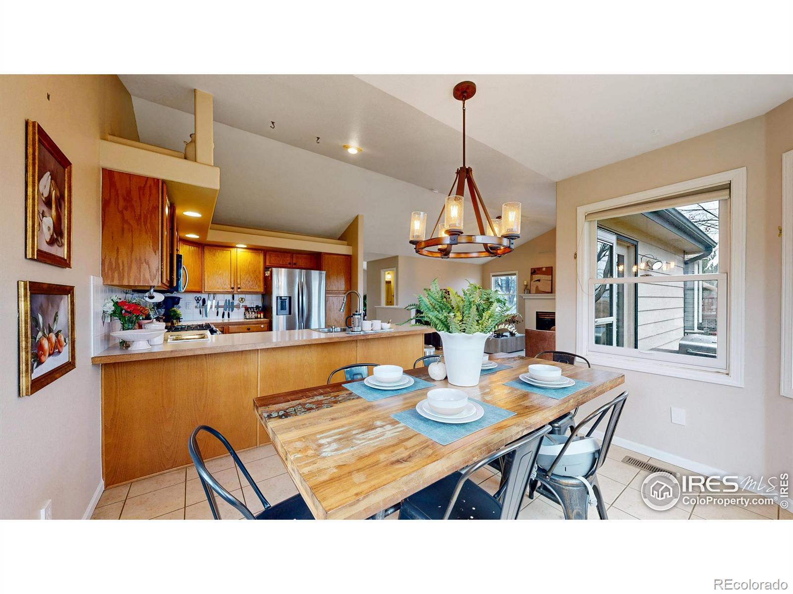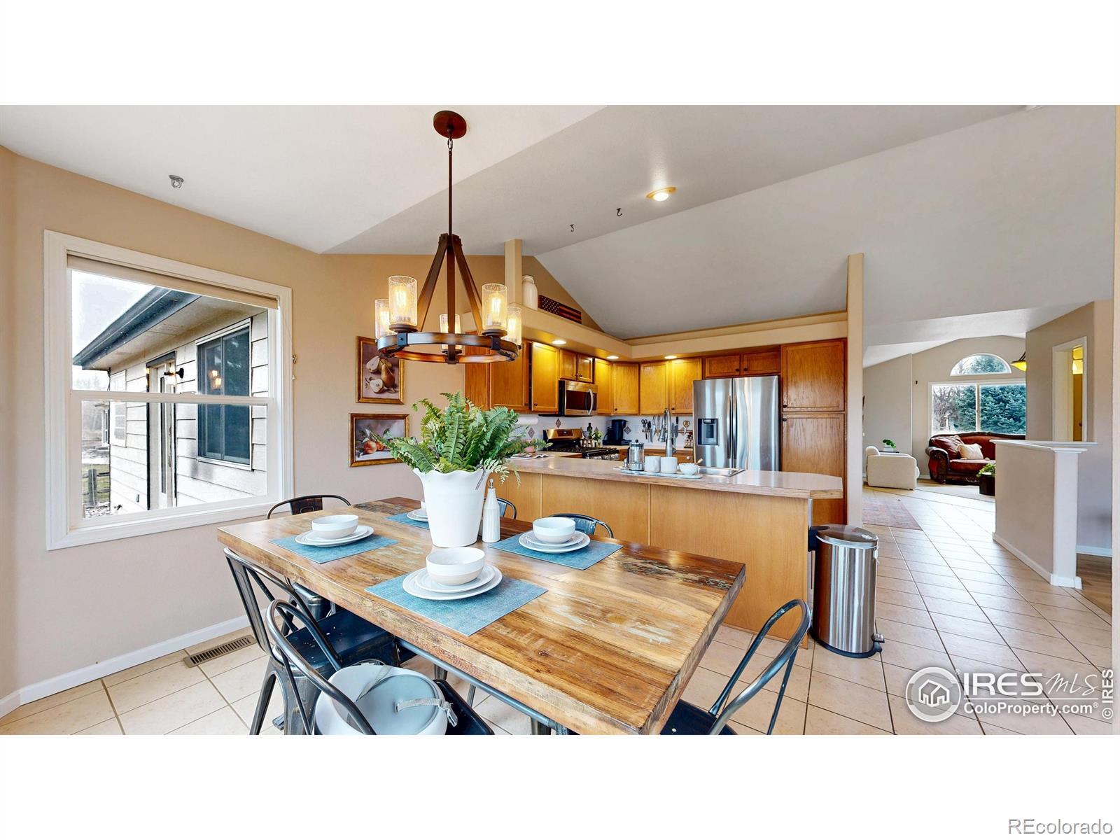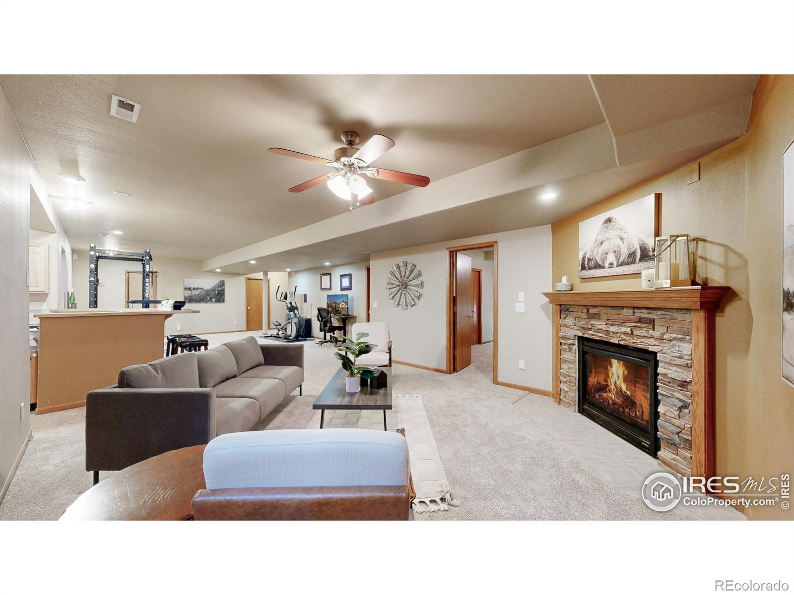 Welcome to this beautifully maintained home offering a warm, comfortable atmosphere inside and out. Featuring 4 bedrooms, 3 bathrooms, and an office, this home is thoughtfully designed to provide both functionality and charm. Outstanding mountain views backing up to extensive hiking/biking trails, Big Thompson River as well as numerous ponds and Lakes. The interior welcomes you with a bright, open main living space that includes a comfortably sized living room with large windows that fill the home with natural light. The adjoining kitchen provides good counter workspace, traditional cabinetry, new updated appliances, and a dining area large enough for family meals or casual gatherings. The primary suite includes ample space, new LVP flooring, lots of natural light, and good sized attached 5-piece bathroom and walk in closet. Downstairs, you will find 2 additional bedrooms, full bathroom, a large rec room, cozy fireplace, and full wet bar with appliances that could easily be used for Mother in Law Suite. Outside, the property's lot offers room to garden, relax, or create your ideal outdoor entertaining space. The quiet cul-de-sac setting adds privacy and reduces drive-through traffic. The location brings added value near dining, shopping, and entertainment. With easy access to major commuter routes, parks, schools, and local amenities, this property offers a balanced lifestyle that combines approachable living, affordability, and the convenience of being close to what makes Loveland such a desirable community, all in one well-cared-for home ready to welcome its next owner.