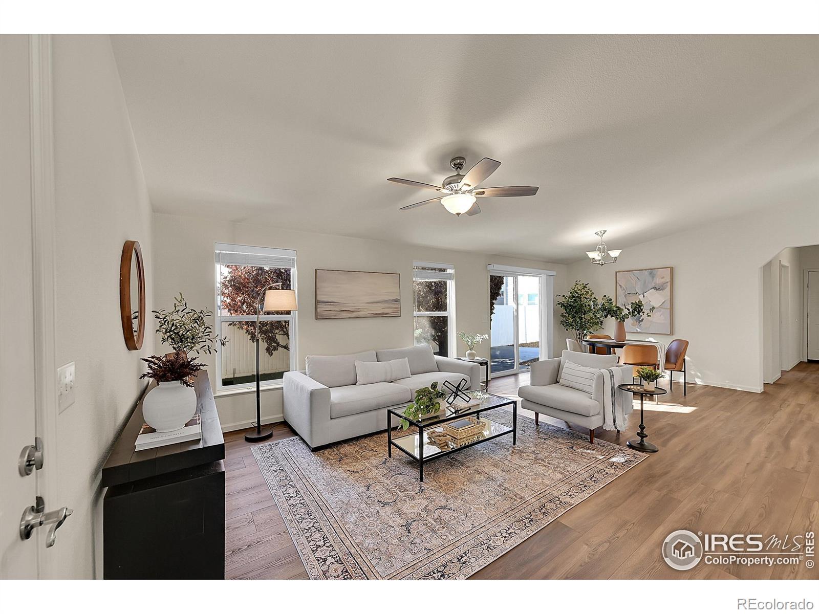 Welcome to 961 Sunchase Dr, a beautifully updated ranch-style home nestled in the sought-after Sunflower community - a 55+ active adult neighborhood in Fort Collins. This 2 bed/2 bath meticulously maintained residence has been lovingly cared for and provides many new updates over the last few years. In 2023: new A/C, interior completely repainted, new flooring throughout the entire home, granite counter tops as well as sinks and faucets in the kitchen and bathrooms, new chair height toilets, washer & dryer and all new blinds. In 2024: new water heater, removed and repoured concrete back patio, steps, a place for the grill and path to grass area, artificial turf under the mature trees and a flower garden in the front. This amazing home is move in ready. Call today for your private tour today