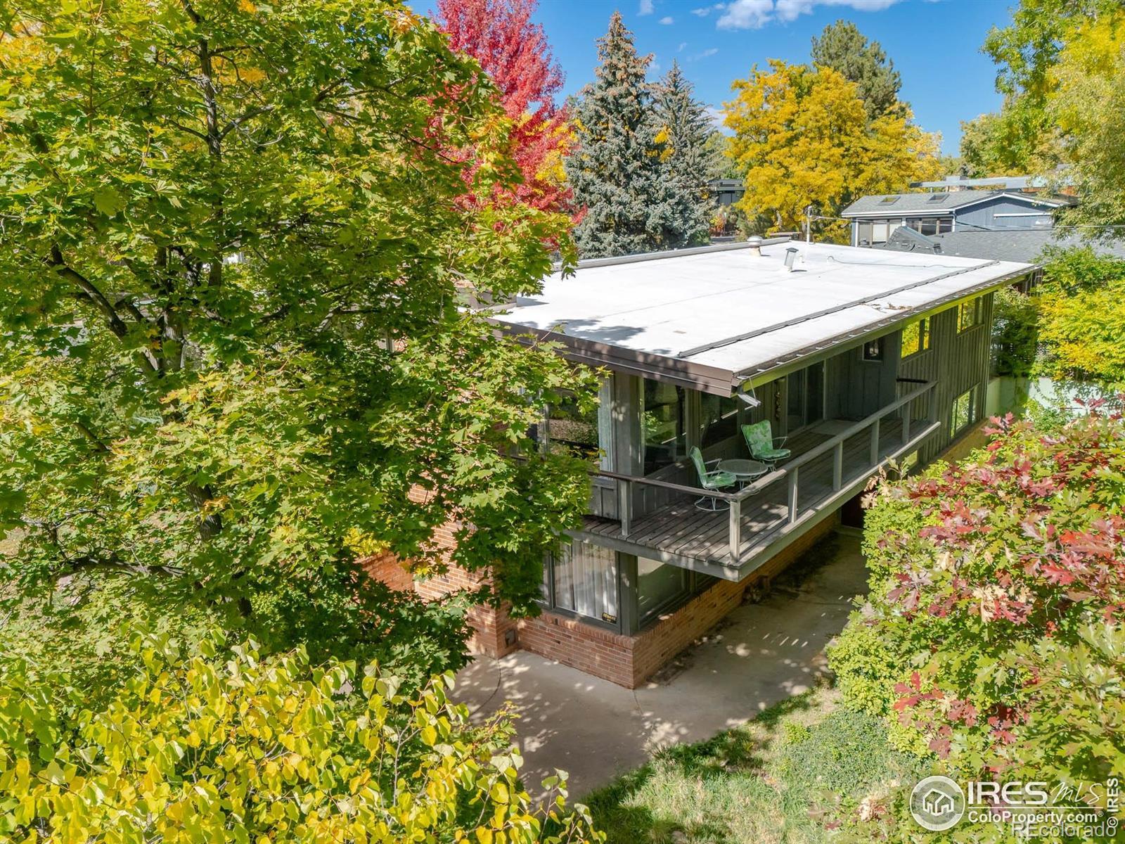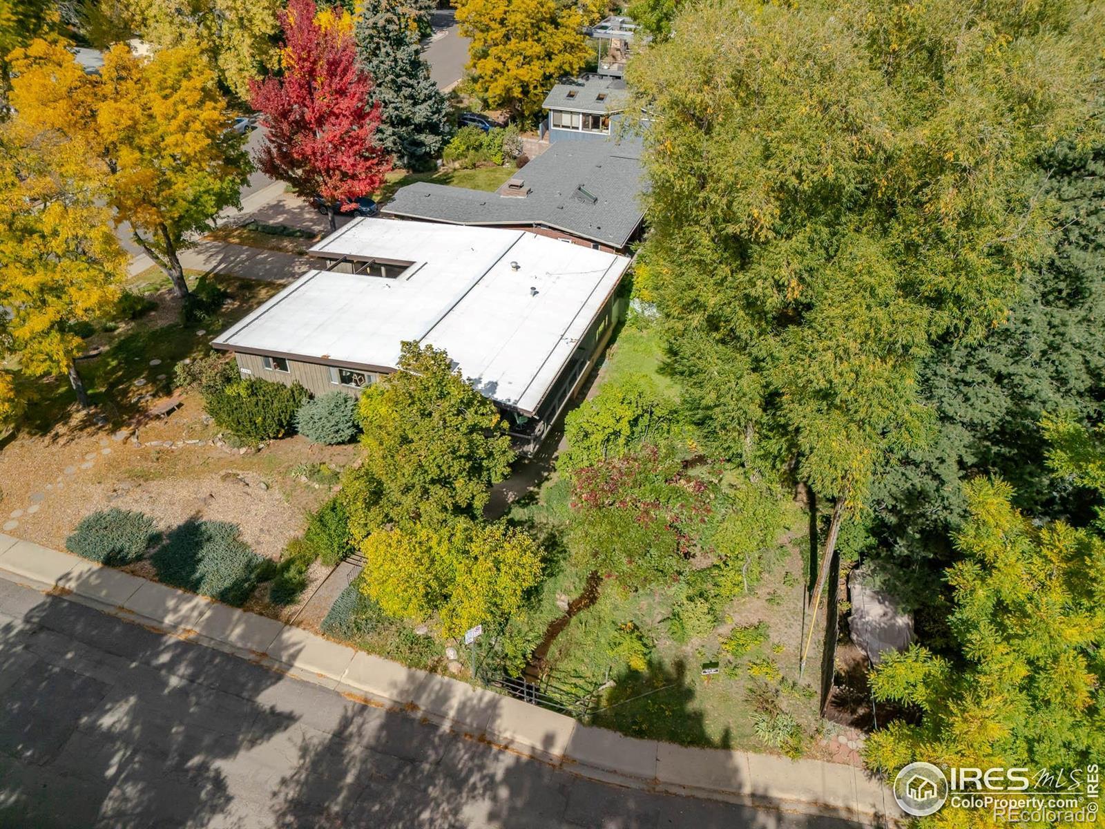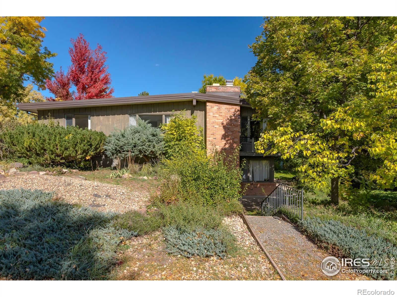 Mid-Century Usonian Masterpiece awaiting your modern updates. Frank Lloyd Wright-inspired design, open ranch backing to a creek with Stunning Flatiron views from this lower Chautauqua neighborhood. This embodies the Usonian concept of integration with their natural surroundings. Watch the bubbling creek while sitting on the back deck sipping your morning coffee. Enjoy the gorgeous Flatiron views from the Xeriscaped front yard. The house is designed to keep out the hot Summer heat, but allow the lower Winter Sun into the house. The house is flooded with light! Gorgeous brick fireplace that crackles with fiery delight. The design of hot water radiant heat makes this home always warm and comfortable. First time on the market. Structurally Amazing, needing some current updates, plenty of room to expand in the walk-out basement. Well-built. and designed home with comfortable high efficient hot water heat. New boiler in 2022. 2nd bedroom does not have a closet. This is an Estate. House to be Sold "As-Is". Call agent to get the name of the Trust. Usonian is an architectural style created by Frank Lloyd Wright in the 1930s for affordable, middle-class homes that are integrated with their natural surroundings. Key features include single-story, horizontal designs with flat roofs and large overhanging eaves, open floor plans, and a strong connection between indoor and outdoor spaces through large windows and natural materials like wood and stone. Other common elements include a central hearth, carports, and a radiant heating system embedded in the concrete slab floor.