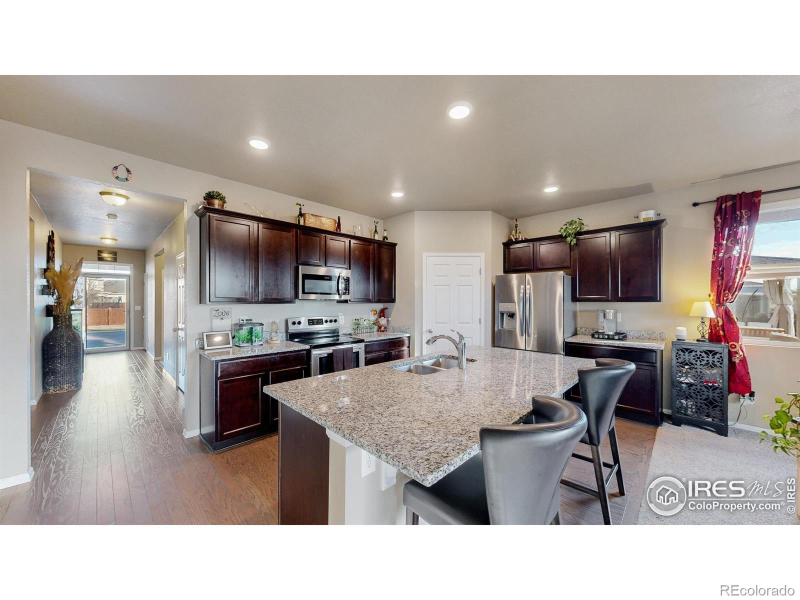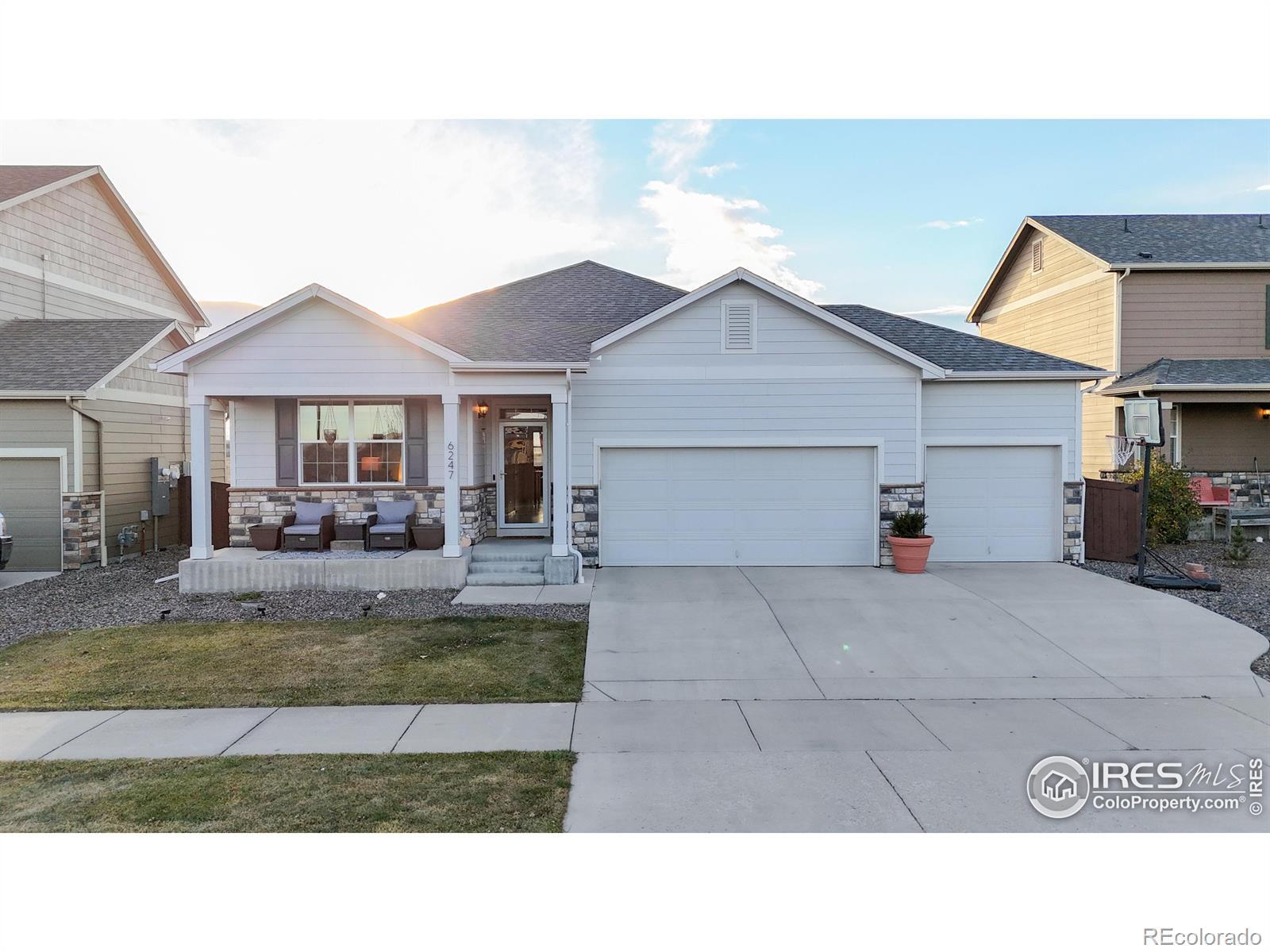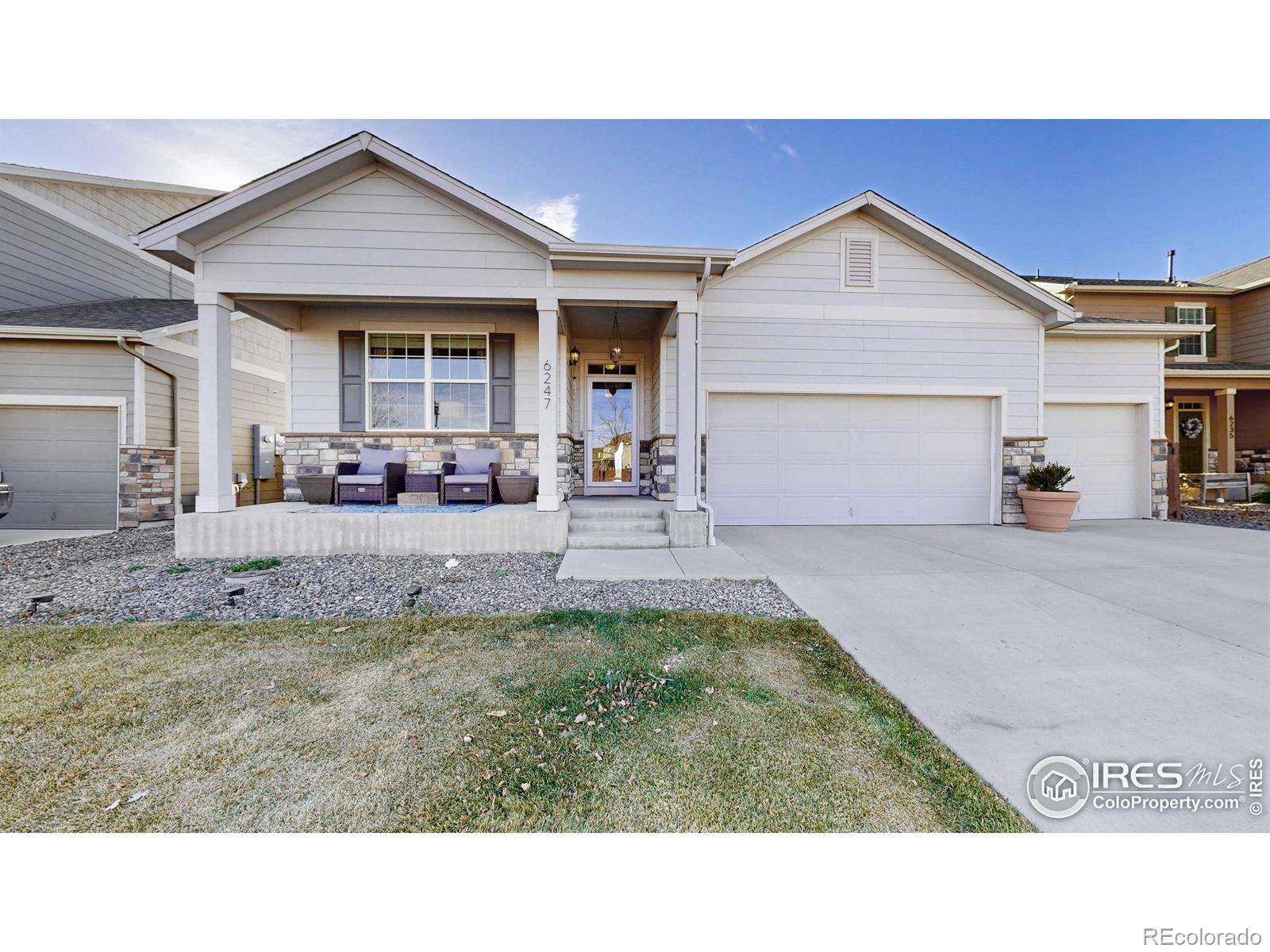 Seller is offering $5k to use your way! Tucked into the south end of Timnath Ranch, 6247 Oak Grove Street is a fantastic four-bed, two-bath ranch that blends easy single-level living with big Colorado mountain views. From the moment you pull up, the curb appeal is obvious-clean exterior, a three-car garage with room for all your gear, and a charming front porch that welcomes you inside. Step into the great room, where the kitchen, dining, and living spaces flow together in one bright, open layout. The large kitchen island makes everyday prep simple and doubles as the perfect spot to grab a quick bite or chat with friends. The living area is spacious and comfy-ideal for movie nights, game days, or just relaxing. The primary suite offers a quiet retreat with loads of closet space and a roomy ensuite bath. Three additional bedrooms give you flexibility for guests, hobbies, or a home office, all supported by a second full bathroom. Outside, the fully fenced backyard is a true highlight, featuring panoramic mountain views, a covered patio ready for summertime hangouts, and a handy storage shed. You'll also love the neighborhood perks - the pool, clubhouse, fitness center, and parks. With nearby trails, open space, shopping, and dining just minutes away-but still maintaining a peaceful, suburban vibe-this home checks all the boxes. 6247 Oak Grove Street delivers incredible value, convenient living, stunning scenery, and a friendly community, capturing everything people love about life in Timnath! Home has been pre-inspected for Buyer peace-of-mind.