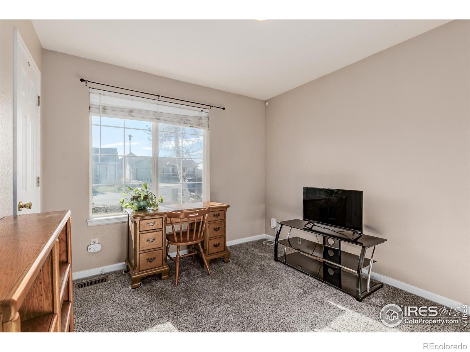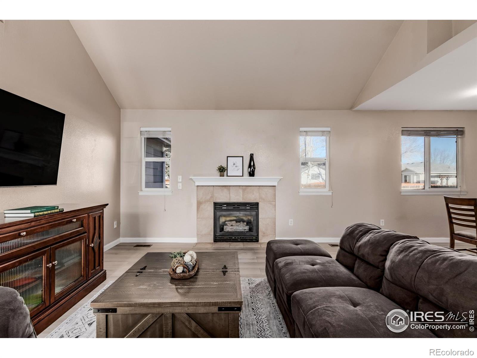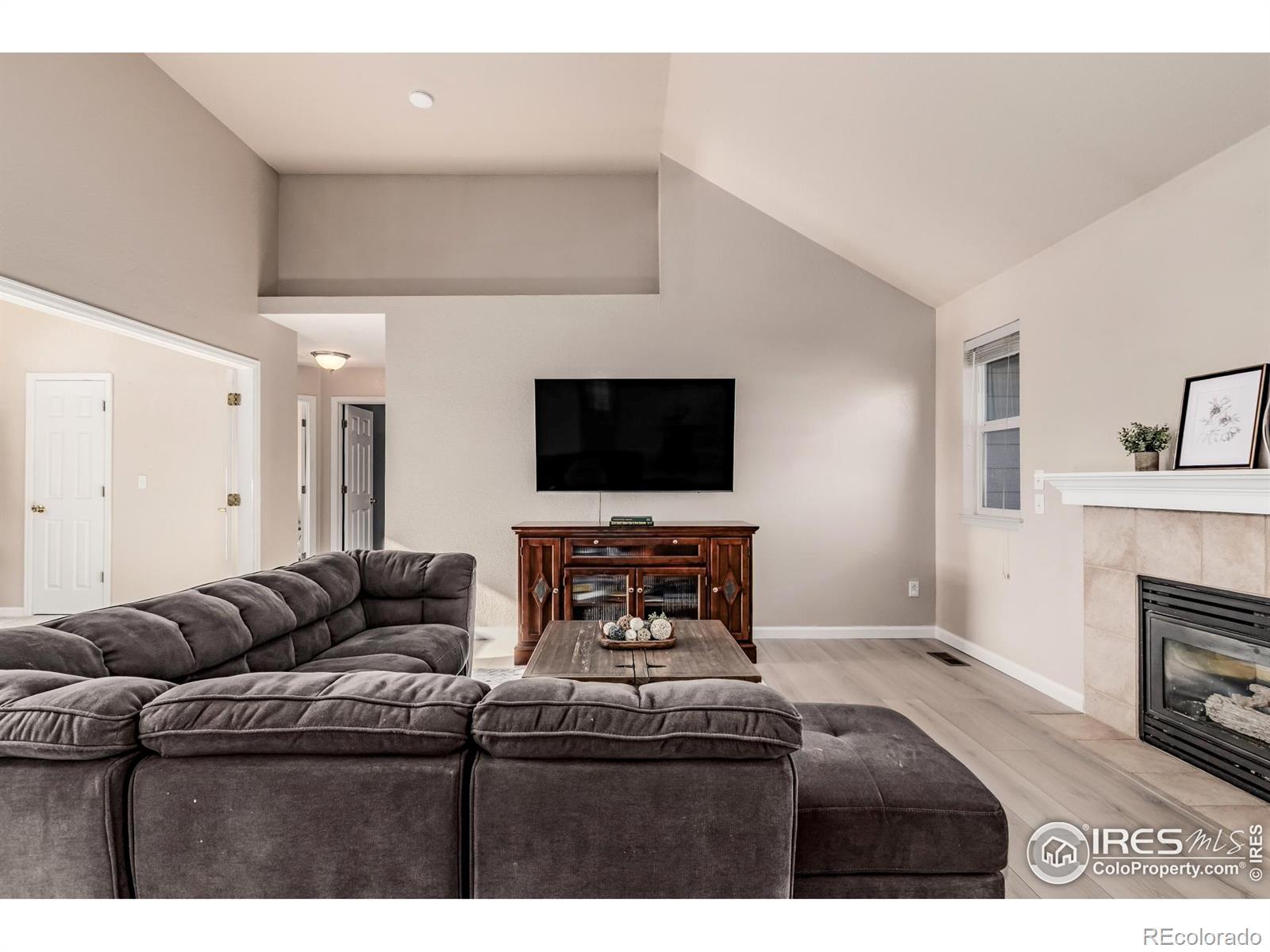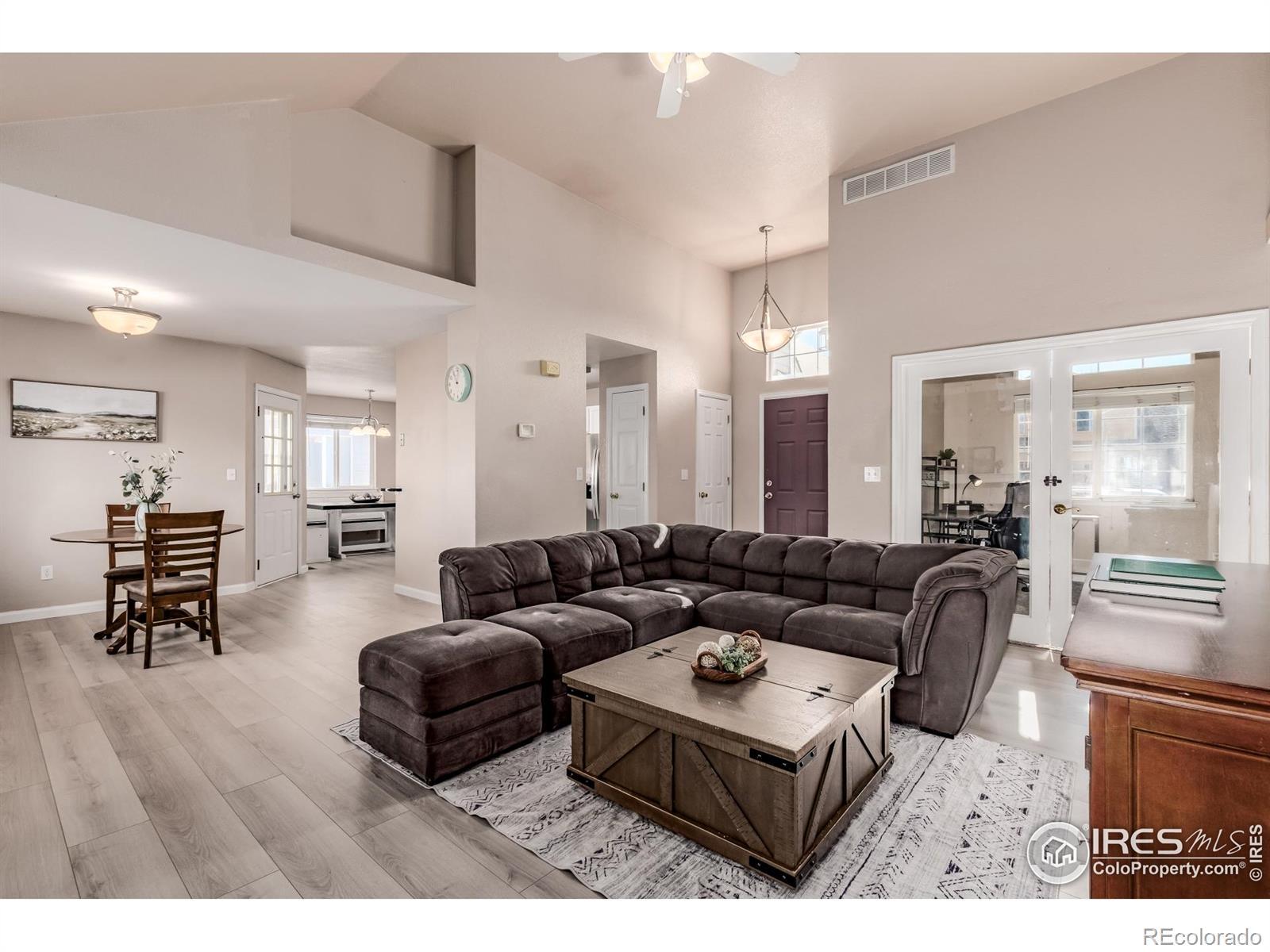 Step into this beautifully updated home in Johnstown's Podtburg Village! The south facing orientation fills the interior with natural light, highlighting the fresh LVP flooring that flows through the main level and the vaulted ceilings that create an open, airy feel. An electric fireplace adds warmth and charm to the living room.The kitchen showcases new stone countertops, newer stainless steel appliances, and an inviting eat-in area, complemented by a separate dining space for larger gatherings. One-story living features the spacious primary suite with tray ceilings, a walk-in closet, and a relaxing five piece bathroom and 2 additional rooms. The third room with French doors provides great flexibility and can serve as a bedroom, office, creative space, or additional living area. New carpet enhances all three bedrooms. A custom barn door leads to the partially finished basement, where a generous bedroom with an egress window and a full bathroom offer comfort and privacy. The remaining basement space is framed and ready for future customization. Out back, the fully fenced yard is ideal for enjoying Colorado evenings, complete with a covered patio, firepit, and a green belt just beyond the fence for added privacy. The front yard features sprinklers, fresh mulch, and beautiful perennial plantings. Solar panels and a new roof installed in 2024 add valuable efficiency and peace of mind. With a neighborhood park just a block away and quick access to I-25, this home offers both community living and convenient connectivity throughout northern Colorado with no metro district!