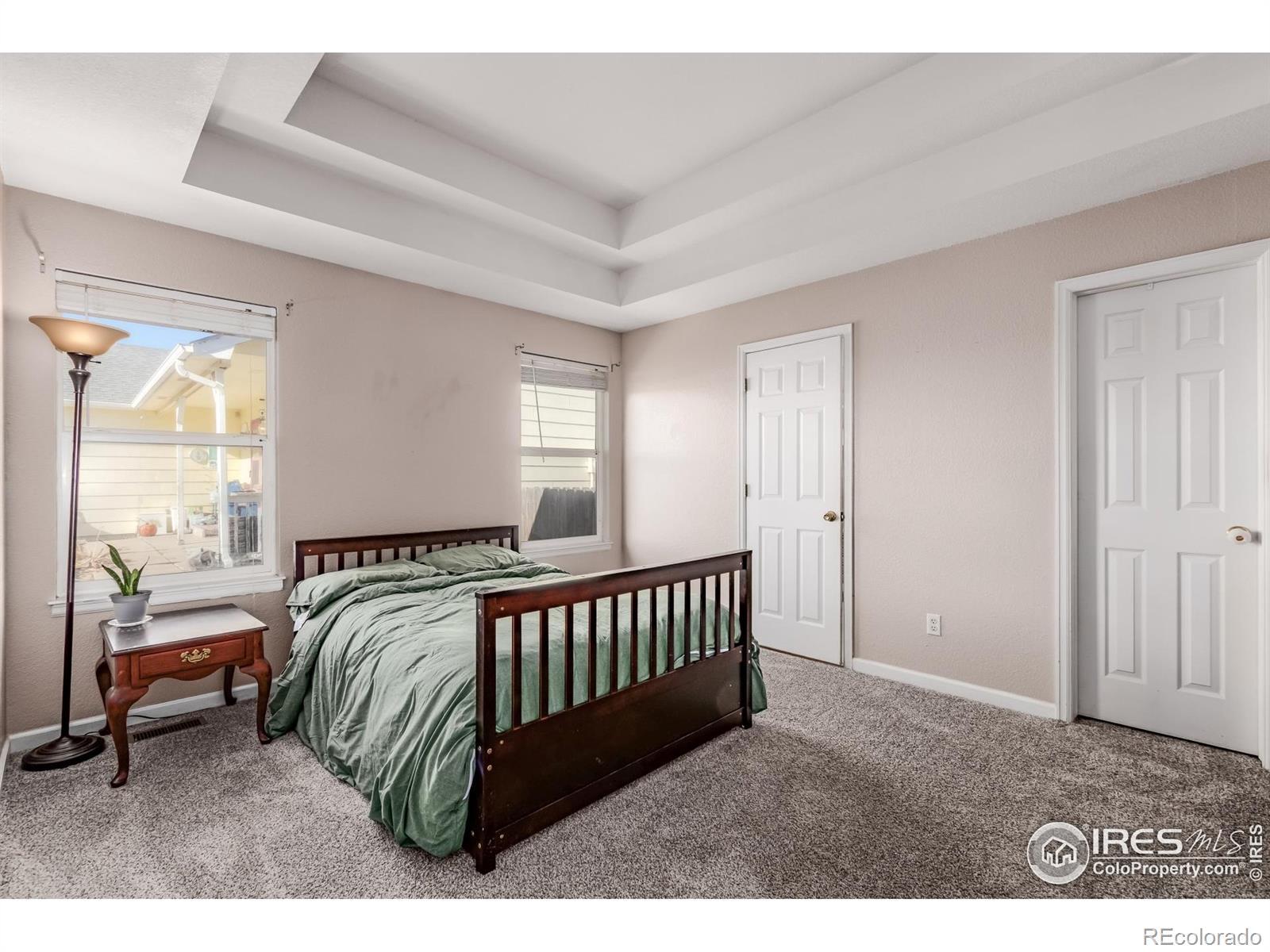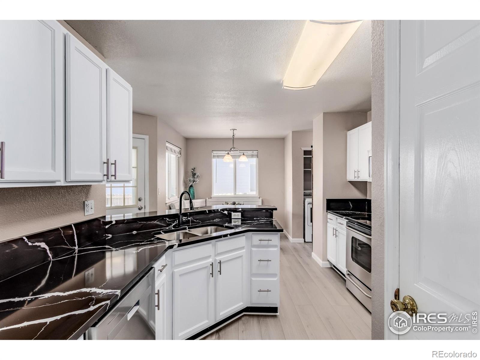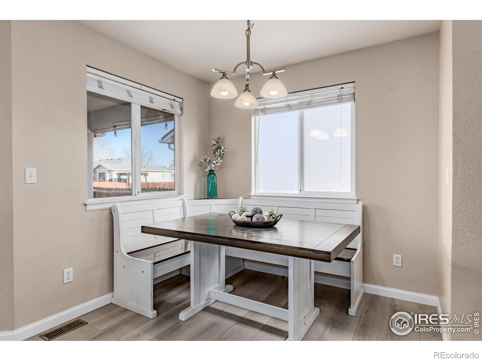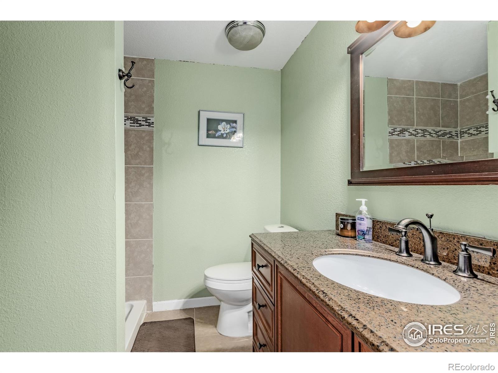 Step into this beautifully updated home in Johnstown's Podtburg Village! The south facing orientation fills the interior with natural light, highlighting the fresh LVP flooring that flows through the main level and the vaulted ceilings that create an open, airy feel. An electric fireplace adds warmth and charm to the living room.The kitchen showcases new stone countertops, newer stainless steel appliances, and an inviting eat-in area, complemented by a separate dining space for larger gatherings. One-story living features the spacious primary suite with tray ceilings, a walk-in closet, and a relaxing five piece bathroom and 2 additional rooms. The third room with French doors provides great flexibility and can serve as a bedroom, office, creative space, or additional living area. New carpet enhances all three bedrooms. A custom barn door leads to the partially finished basement, where a generous bedroom with an egress window and a full bathroom offer comfort and privacy. The remaining basement space is framed and ready for future customization. Out back, the fully fenced yard is ideal for enjoying Colorado evenings, complete with a covered patio, firepit, and a green belt just beyond the fence for added privacy. The front yard features sprinklers, fresh mulch, and beautiful perennial plantings. Solar panels and a new roof installed in 2024 add valuable efficiency and peace of mind. With a neighborhood park just a block away and quick access to I-25, this home offers both community living and convenient connectivity throughout northern Colorado with no metro district!