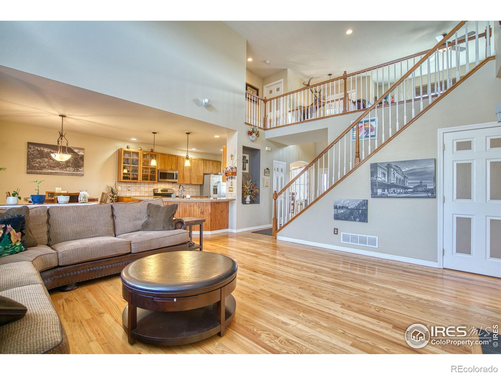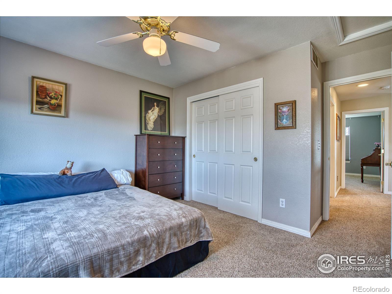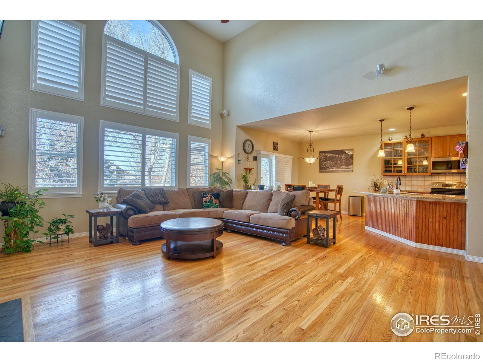 Perfectly situated between Loveland and Fort Collins, this Boyd Lake home offers a rare blend of space, comfort, and direct access to northern Colorado's outdoor lifestyle. Nearly 4,000 sq ft of living space includes bright, open gathering areas, 4 bedrooms, 4 baths, a finished garden level, walk-out basement to the large patio, large family room and workout area, plus generous storage and a 3-car garage. The main level features an inviting great room with soaring ceilings and abundant natural light, a well-designed kitchen with eat-in dining and adjacent formal dining, and a convenient bedroom, full bath, and laundry. Upstairs, the generous master suite is complemented by a spacious 5-piece bath and 9'x12' walk-in closet that's paired with two additional bedrooms and a versatile loft that makes a great office. Brand-new Marvin windows and sliding doors throughout elevate efficiency, comfort, and quiet while new paint outside on the Hardie siding adds years of beauty. Outdoor living is exceptional, with a covered deck off the kitchen for morning coffee, a sprawling lower patio for entertaining, and a fenced yard with gate access to peaceful neighborhood streets. The private HOA boat ramp, just a block away, opens the door to Boyd Lake's premier recreation: boating, paddleboarding, skiing, sailing, and more. And with quick access to both city centers, golf courses, hiking, fishing, the Blue Arena, CSU, medical centers, and every corner of northern Colorado, this location delivers unmatched convenience and a lifestyle rooted in sunshine, adventure, and community. Seller is willing to discuss selling furniture that is in the house.