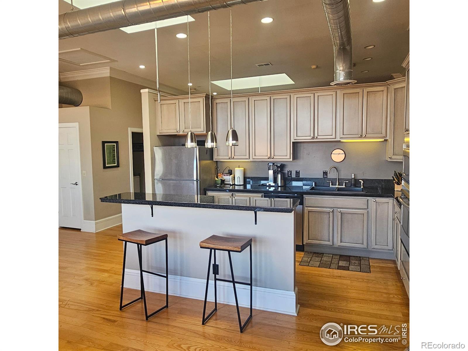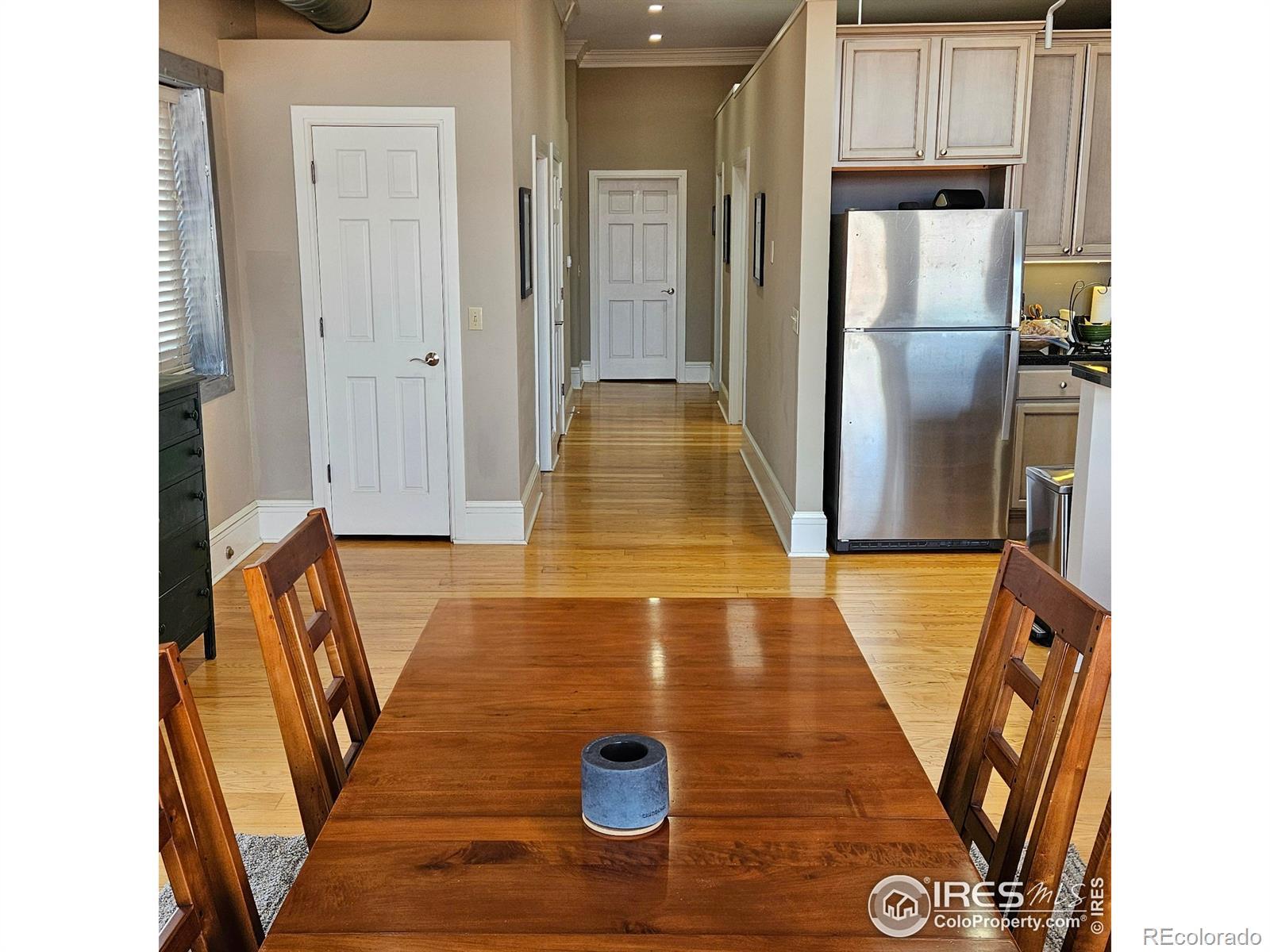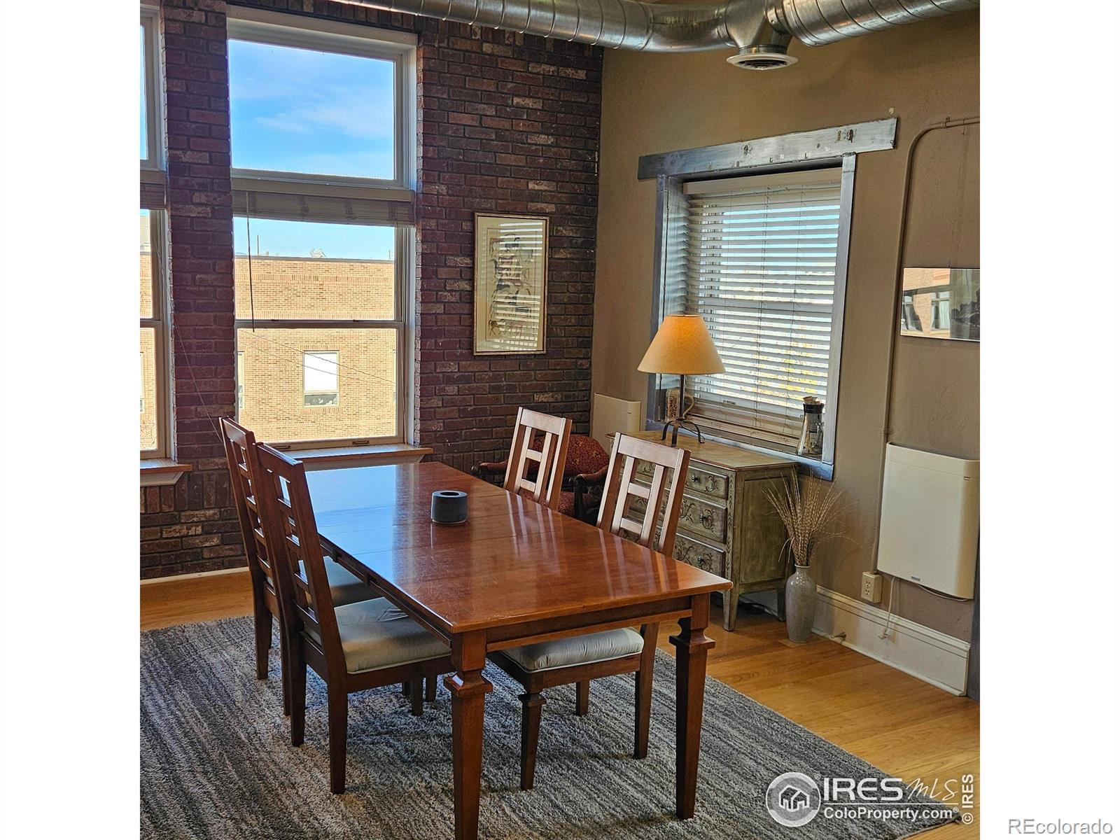 Top floor penthouse unit in the Shaw Loft Building with 10'+ high ceilings, brick accent, wood floors, granite kitchen counters, premium cabinets, gas range/oven, built-in microwave, washer/dryer. Located in the heart of historic downtown Greeley overlooking the 8th Street Plaza. Walk to restaurants, Moxi Theater, Natural Grocers, LINC Library, UCCC, recreation center and other nearby amenities. Individual HVAC equipment provides separately metered heating and cooling. Additional private storage closet located off common area near main staircase measures approximately 6' X 7' great for storing seasonal items and other personal gear in a secure area. Shared rooftop deck with direct access from unit. All 8 of the residential lofts at the Shaw Building are unique with each unit custom designed and built. The Shaw Loft building has a friendly and upscale feel in an unbeatable downtown location. No onsite parking but permits for parking in City lot directly across the street are available at nominal cost. Owner Agent lives in unit. Main residential entrance is on 8th Avenue via double glass doors. There is also a side entrance on 8th Street Plaza. Access code required for entry into building using the keypad next to exterior doors. From main floor lobby take stairs to the second floor and proceed up another 8 steps to "west building section" landing. There you will see entry door to unit #301. Once inside unit you will have another flight of private stairs to reach top floor living quarters. PLEASE READ - Because of the unique nature of the Shaw Building as a mixed-use condo project (residential and retail units) it does not meet conventional lending guidelines and will not be approved by government-backed lenders like Fannie Mae or Freddie Mac unless an exception waiver is granted by lender ("non-warrantable"). No FHA or VA loans. Cash or Conventional Financing Only. FirstBank and other portfolio lenders will consider funding with minimum down payment and solid credit.