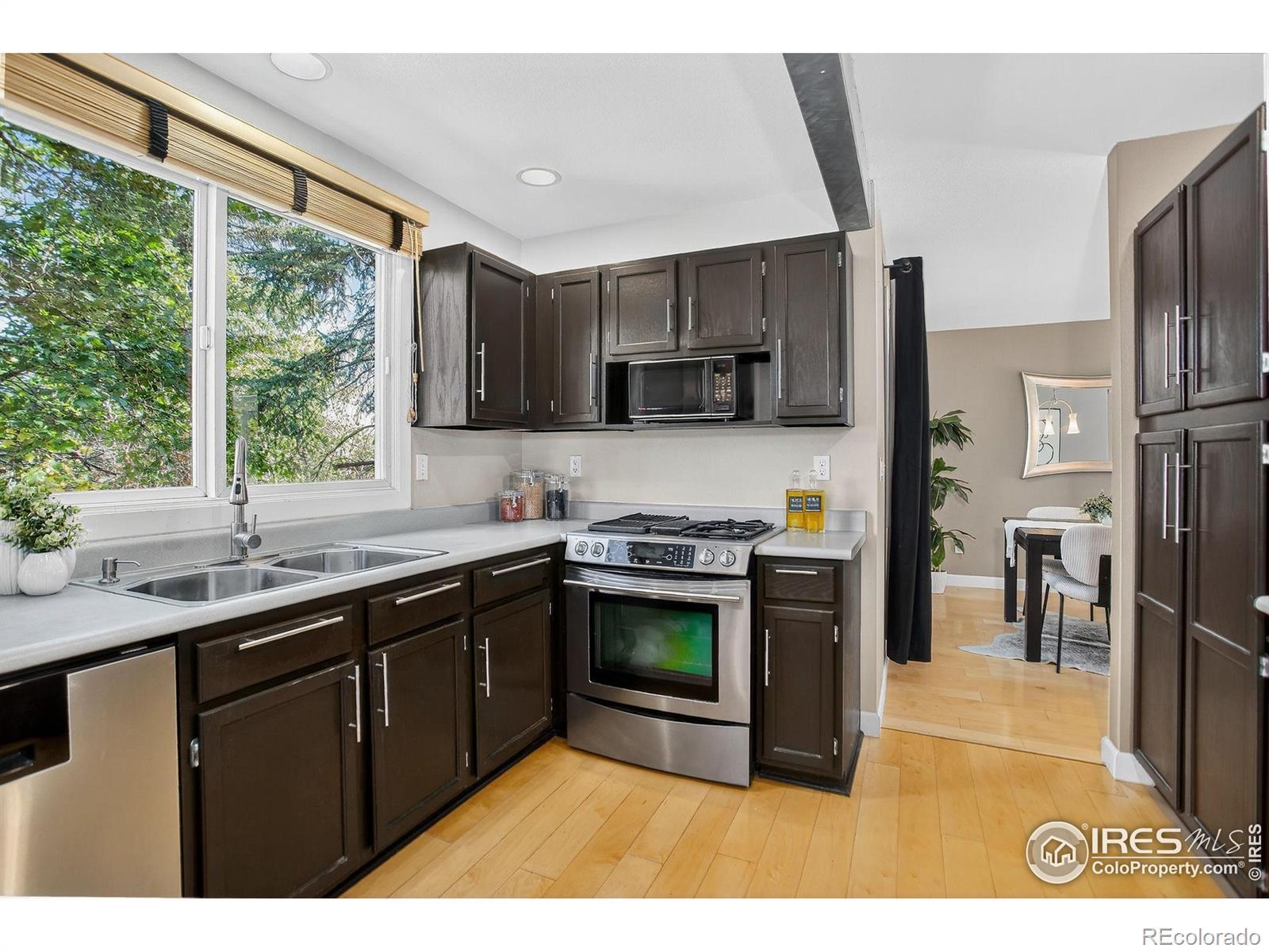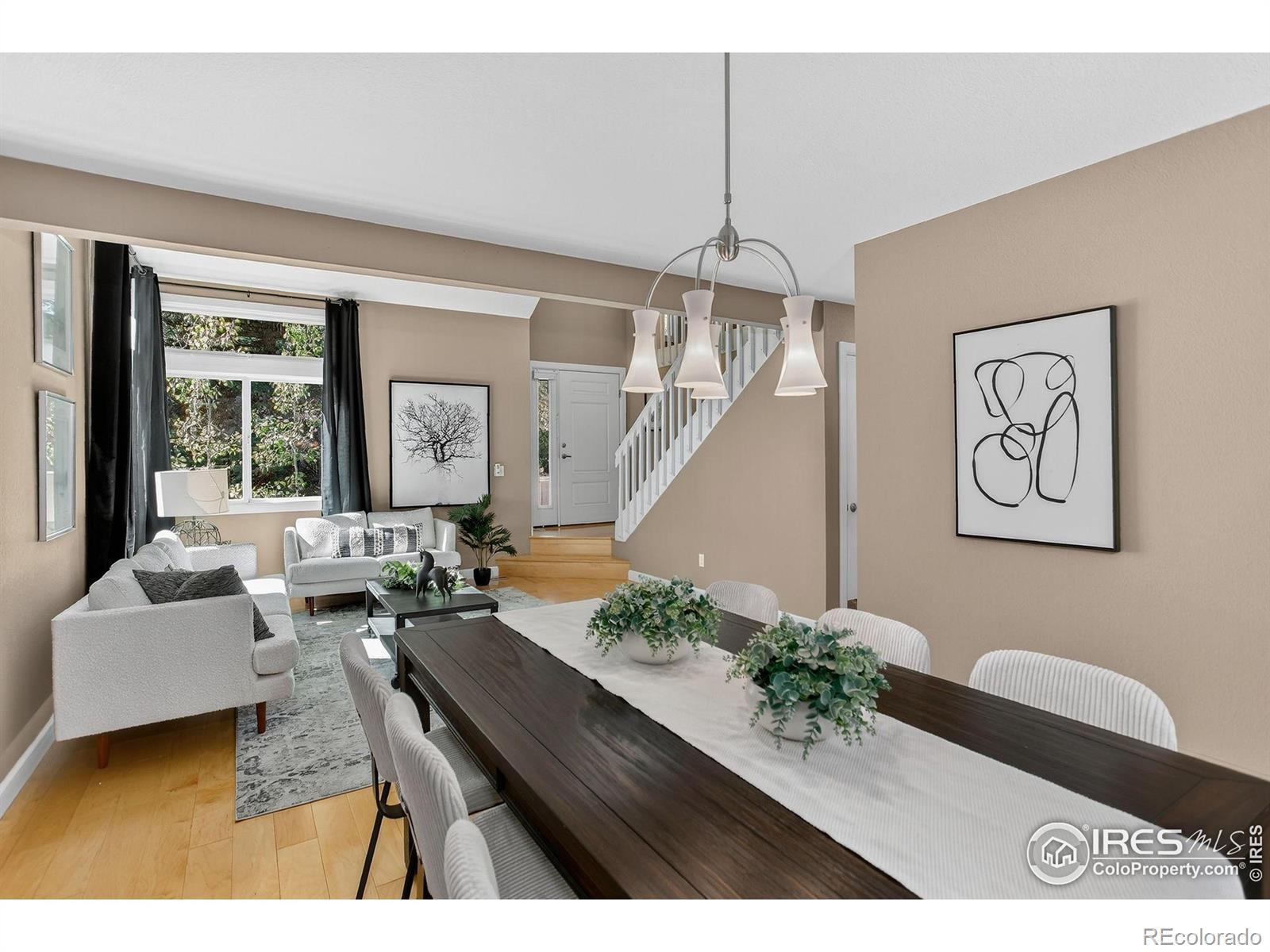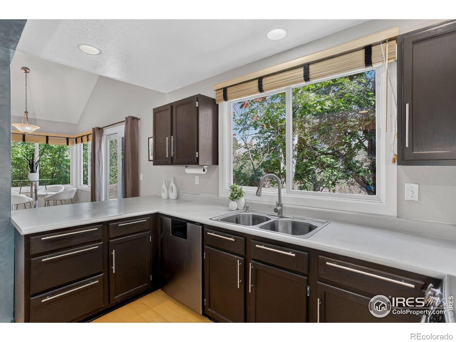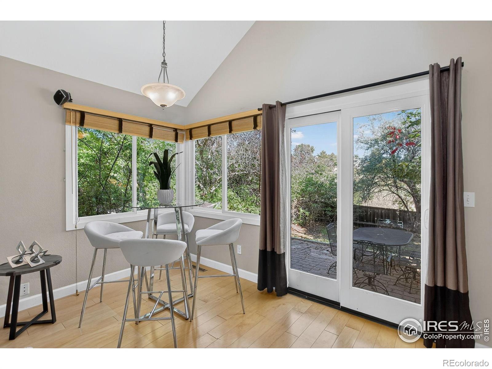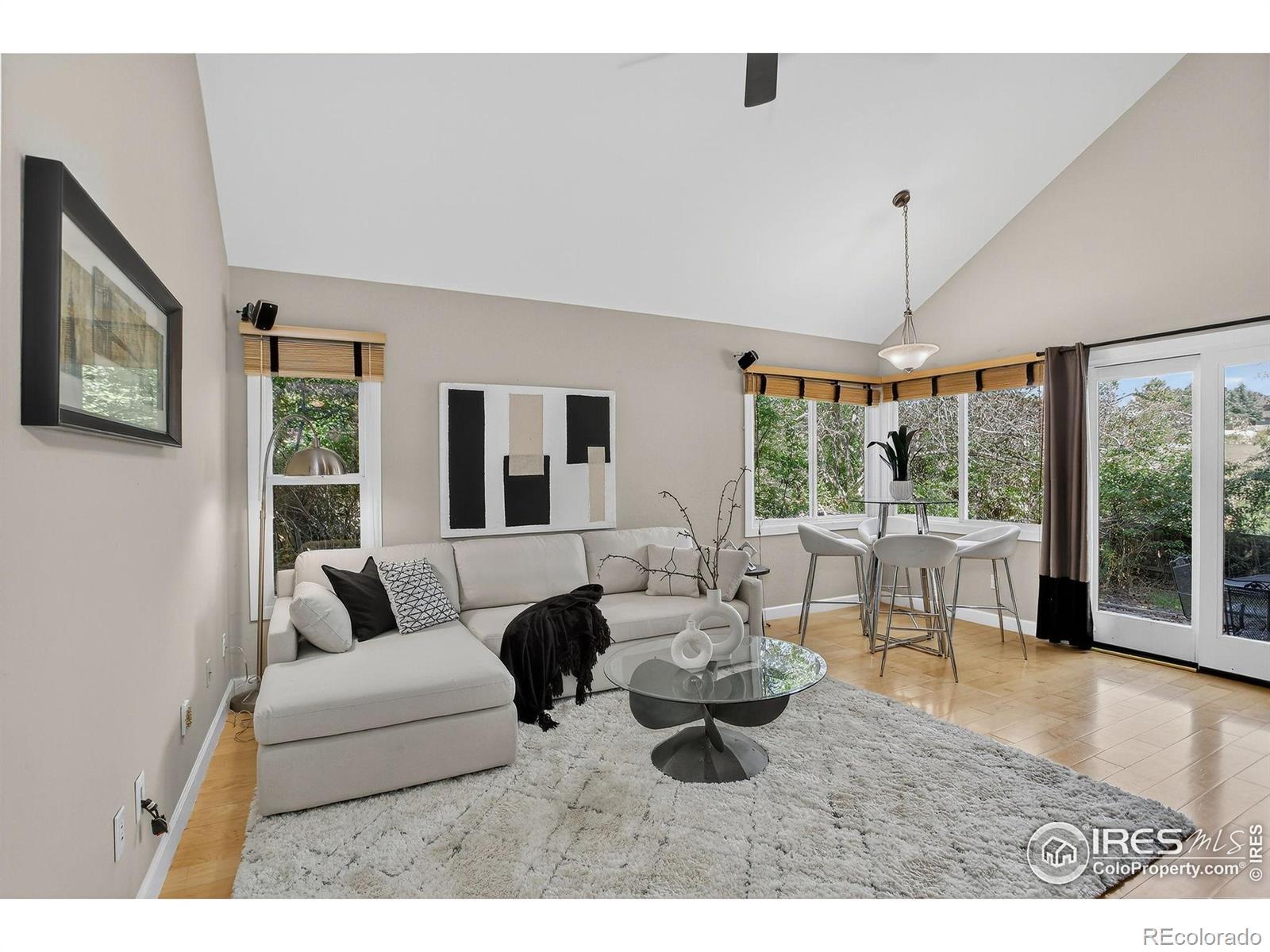 Louisville Haven with Timeless Charm. Tucked away in a quiet neighborhood with no HOA, this inviting home seamlessly blends thoughtful design with an abundance of natural light. The maple flooring throughout the main level sets a refined tone, while vaulted ceilings and corner windows in the living room create airy openness, excellent cross-ventilation, and serene views of the mature landscaping. The kitchen shines with stainless steel appliances, a breakfast bar, and distinctive steel beam details. A cozy family room with soaring ceilings and an electric fireplace completes the main floor. Step outside to a private backyard sanctuary overlooking green space, perfect for quiet Colorado afternoons on the paver patio. Upstairs, find two secondary bedrooms with custom closets and a luxurious primary suite featuring a five-piece bath with soaking tub, hand-painted sinks, and a cedar-floored walk-in closet. The lower level offers an unfinished rec room and laundry area, ready for your personal touch. Ideally located just moments from Harper Lake and the Davidson Mesa Trailhead, this home offers both tranquility at home and effortless access to Louisville's most scenic outdoor escapes.