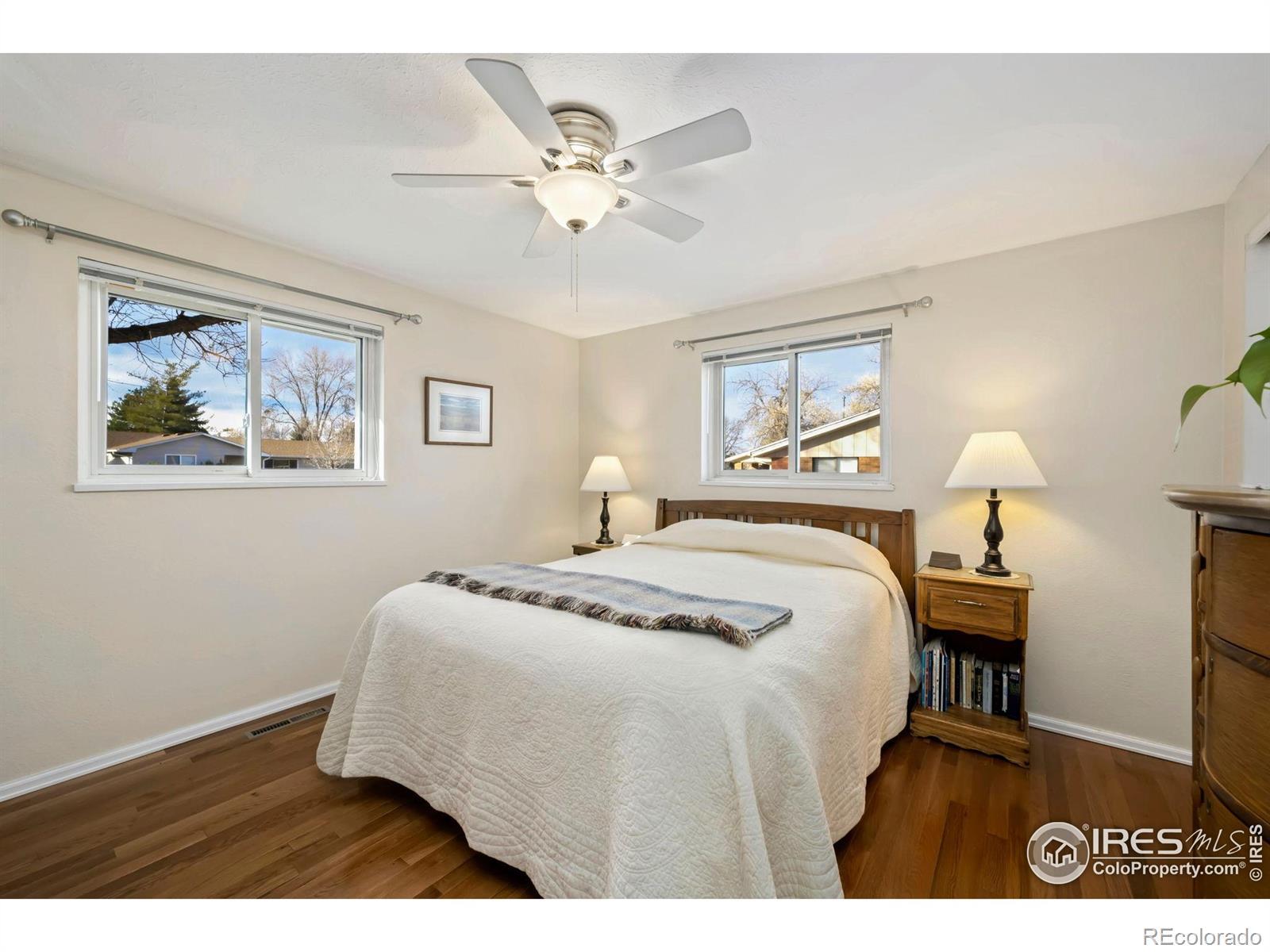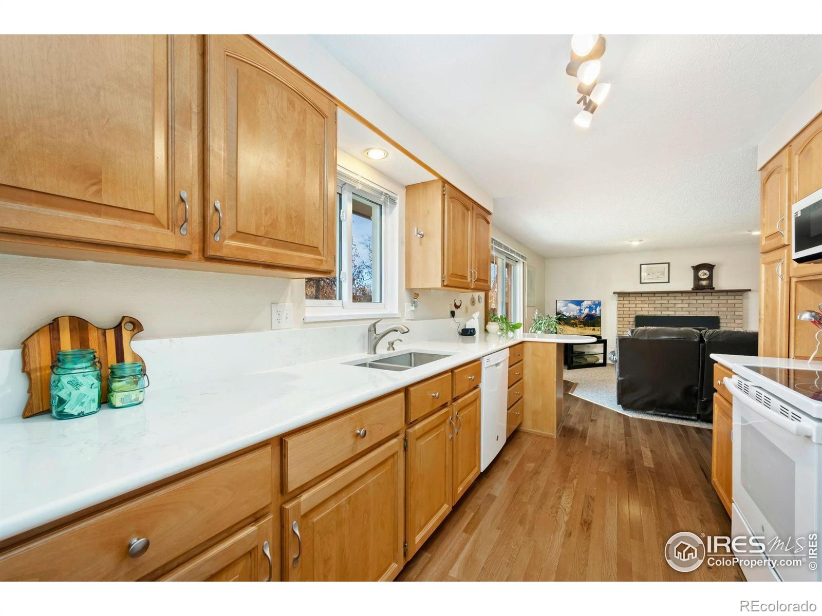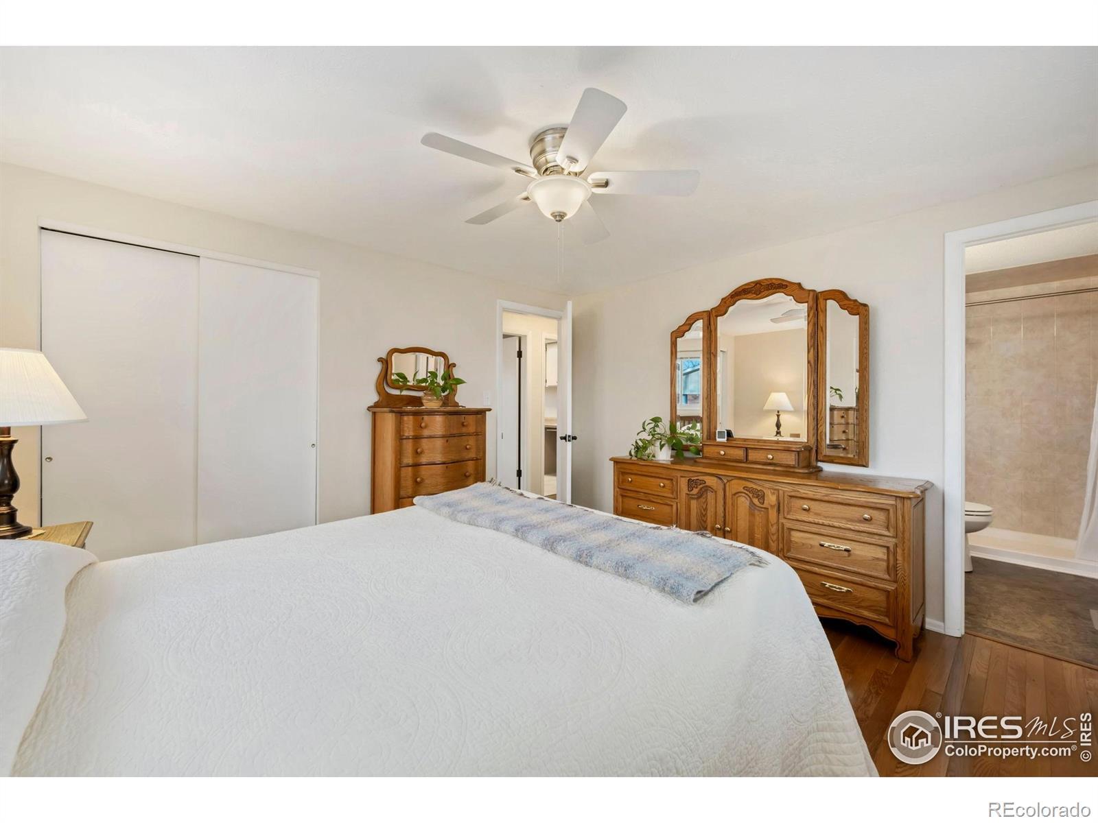 This well-maintained all-brick ranch home in North Loveland offers charming curb appeal wrapped in timeless character, giving it a warm and welcoming presence from the moment you arrive. The home comes loaded with upgrades, including electrical improvements, refreshed light fixtures, and an extra 6 inches of insulation in the attic for improved efficiency. Inside, you'll find bright, open spaces highlighted by Appalachian Red Oak hardwood floors that stretch throughout, creating a cohesive look that shines in the natural light. Every room flows naturally into the next, with well-defined areas that still feel connected and easy to navigate. The kitchen is designed for everyday ease, featuring modern white appliances, quartz counters, plus ample prep space and handy pull-out drawers in the lower cabinets that make storage simple and functional. The family room centers around a gas fireplace set on a brick hearth with both a thermostat and remote control, creating a comfortable spot for relaxing or enjoying quiet evenings. Both bedrooms on the main level offer generous space, including a primary suite complete with its own ensuite bathroom for added convenience. A convenient laundry area is also on this level, with plenty of extra room for clutter-free storage. Downstairs, the finished basement expands your living space further with a large entertainment area, an additional bed and bath, and a bonus room ideal for an office or a hobby space. The massive, fenced yard is fully landscaped and ready to enjoy, with mature trees treated for Ash borer, assorted shrubs, a concrete patio, a storage shed, plus more than enough room to play, plant, or unwind. A 2-car garage paired with a generous RV parking provides enough space for your vehicles and gear. Convenient location near Loveland favorites, you're just minutes away from Lake Loveland and Olde Course, with quick access to essential amenities and an easy drive into Fort Collins. No HOA!