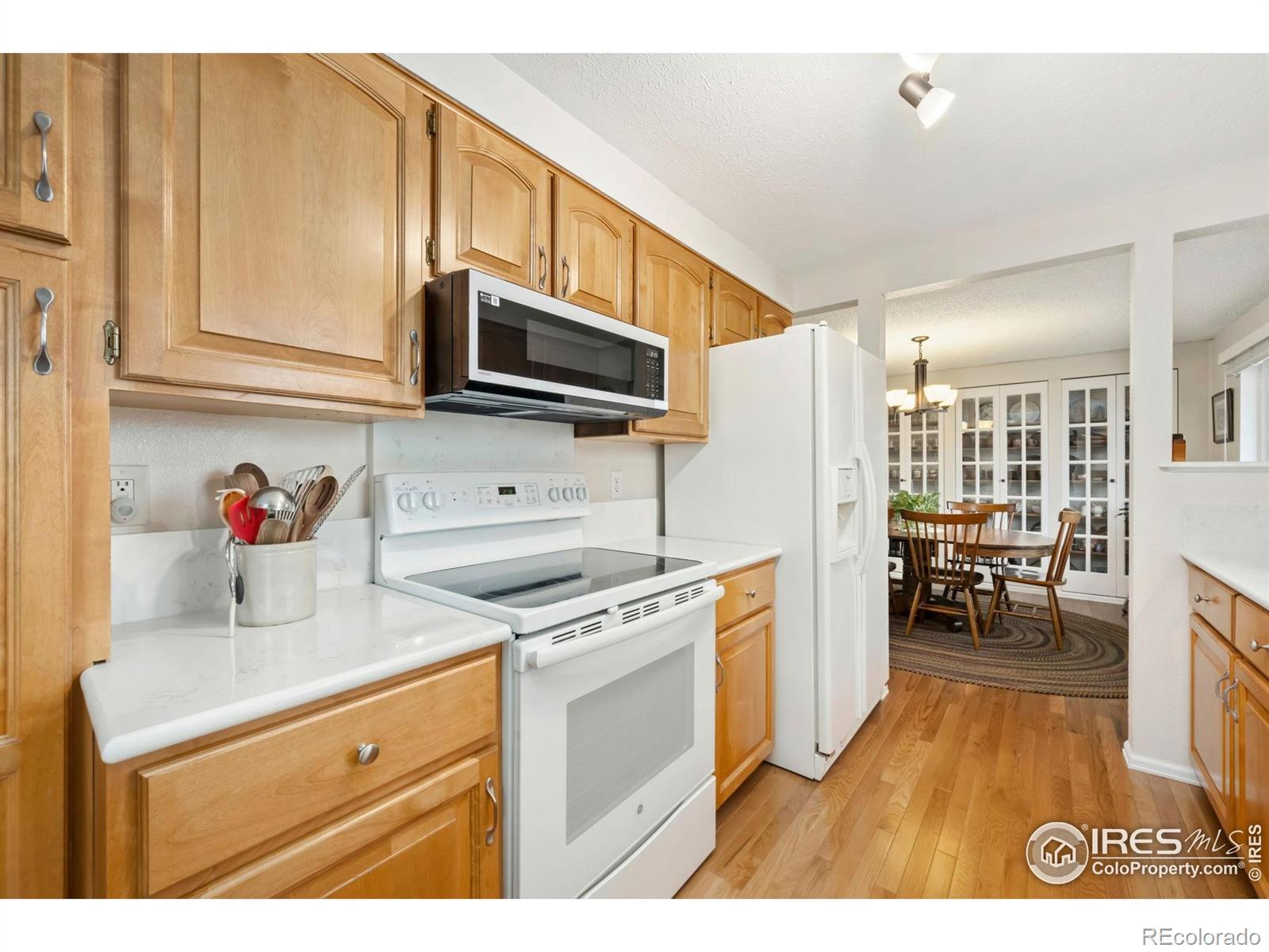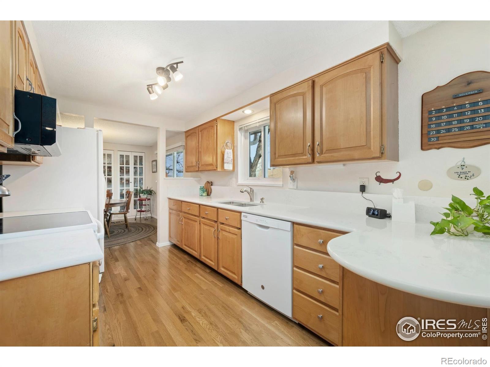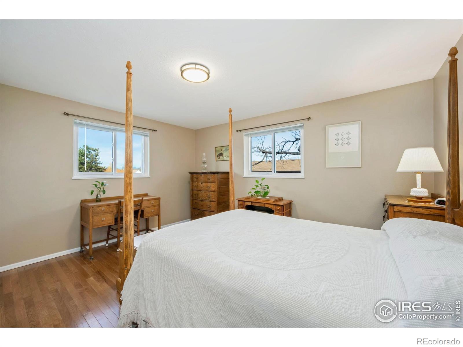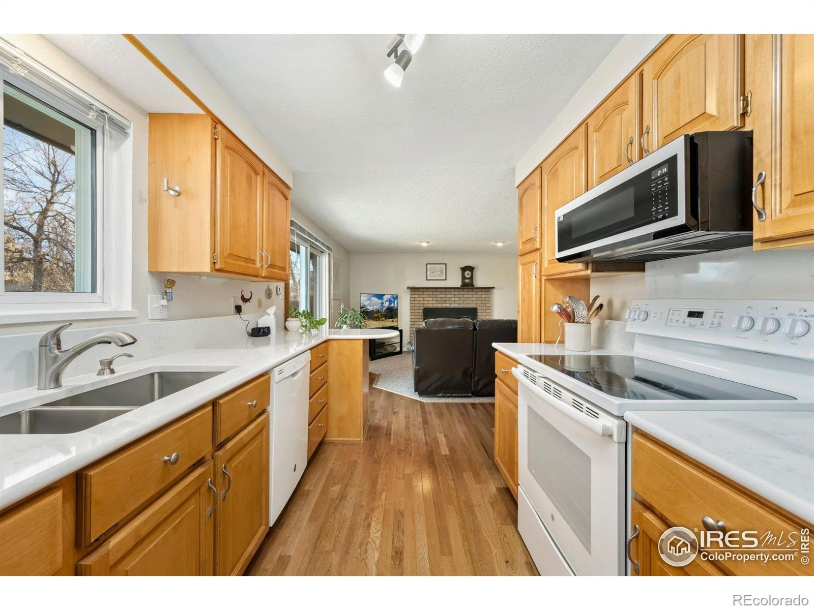 This well-maintained all-brick ranch home in North Loveland offers charming curb appeal wrapped in timeless character, giving it a warm and welcoming presence from the moment you arrive. The home comes loaded with upgrades, including electrical improvements, refreshed light fixtures, and an extra 6 inches of insulation in the attic for improved efficiency. Inside, you'll find bright, open spaces highlighted by Appalachian Red Oak hardwood floors that stretch throughout, creating a cohesive look that shines in the natural light. Every room flows naturally into the next, with well-defined areas that still feel connected and easy to navigate. The kitchen is designed for everyday ease, featuring modern white appliances, quartz counters, plus ample prep space and handy pull-out drawers in the lower cabinets that make storage simple and functional. The family room centers around a gas fireplace set on a brick hearth with both a thermostat and remote control, creating a comfortable spot for relaxing or enjoying quiet evenings. Both bedrooms on the main level offer generous space, including a primary suite complete with its own ensuite bathroom for added convenience. A convenient laundry area is also on this level, with plenty of extra room for clutter-free storage. Downstairs, the finished basement expands your living space further with a large entertainment area, an additional bed and bath, and a bonus room ideal for an office or a hobby space. The massive, fenced yard is fully landscaped and ready to enjoy, with mature trees treated for Ash borer, assorted shrubs, a concrete patio, a storage shed, plus more than enough room to play, plant, or unwind. A 2-car garage paired with a generous RV parking provides enough space for your vehicles and gear. Convenient location near Loveland favorites, you're just minutes away from Lake Loveland and Olde Course, with quick access to essential amenities and an easy drive into Fort Collins. No HOA!