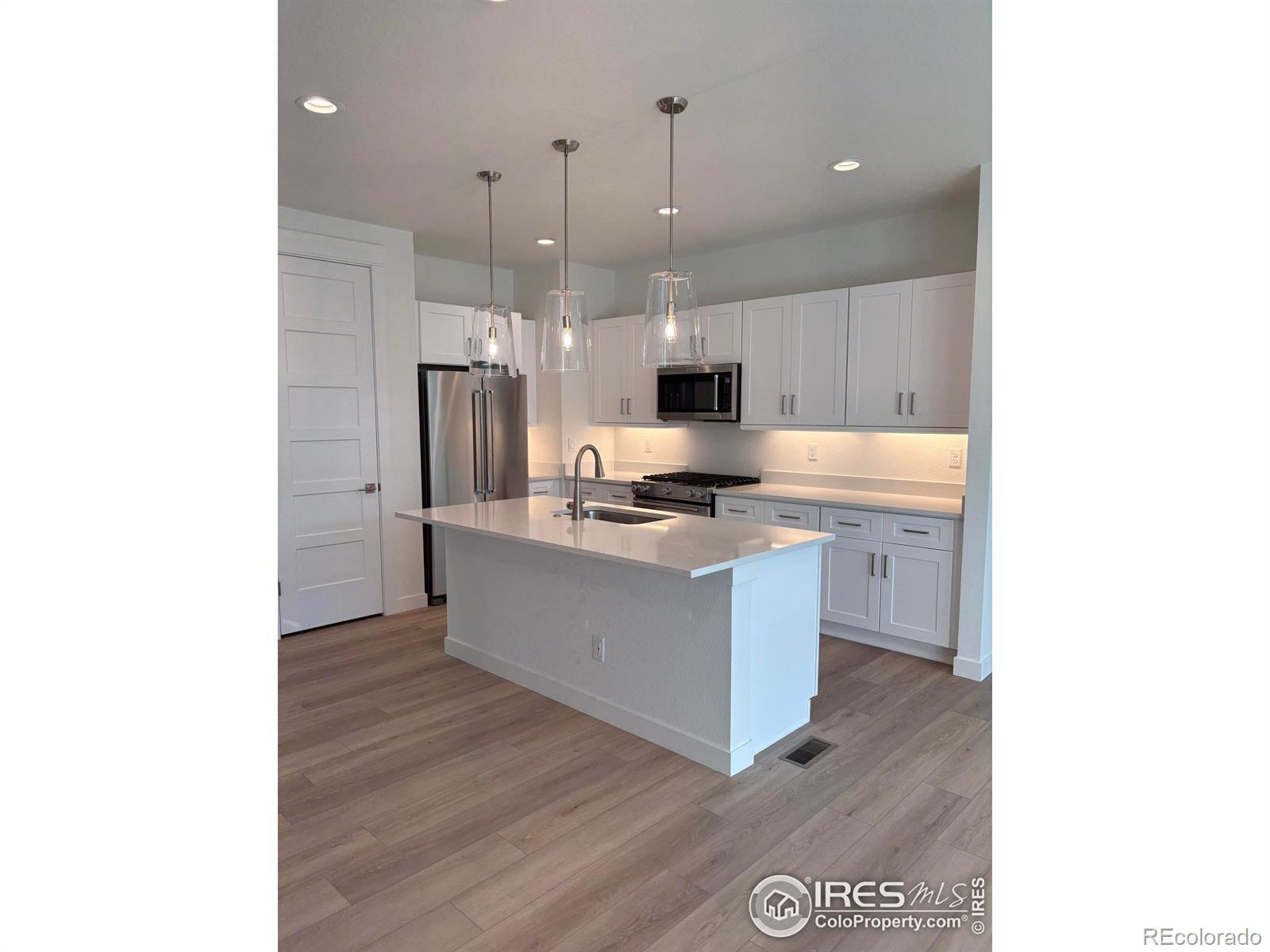 Builder offering incentives towards rate buy-down and closing costs! You will immediately notice the difference when you walk into your new home. This beautiful duplex home offers 9 foot ceilings with 8 foot doors on the main level. A large kitchen outfitted with top-of-the-line Kitchen Aid stainless steel appliances, endless cabinetry, pantry and large island is the show stopper of this home. Next to the kitchen there is room for a separate dining area and living room. Separated behind the kitchen is a powder bathroom, and a sizable attached two car garage with an 8 foot automatic garage door. Upstairs, there is a total of 3 bedrooms with double depth laundry room and shared bathroom with tub in the hall. As you come into the Primary Bedroom you will have a smart workspace with built in desk. The primary suite boasts an elegant tray ceiling, spacious walk-in closet and bathroom with double vanities and spa like shower, the icing on the cake is the private owners balcony. Don't forget your 5' fully encapsulated crawl space for all of your storage needs and access to a fully fenced side yard from your garage. This 3 bed, 2.5 bath home is one of the first available in this distinctive community with incredible views of the front range. Westerly is designed with almost 40% open space. The community will include miles of walking trails, parks, a future school site, and a Village Center. Additionally, "The Waypoint" amenity center welcomes you to lounge by the resort style pool, relax in the year round hot tub, workout in our large fitness facility, warm up by one of several fire pits, BBQ with friends, watch a game on the big screen or catch up with neighbors in the Latitude room with a coffee by the fireplace.