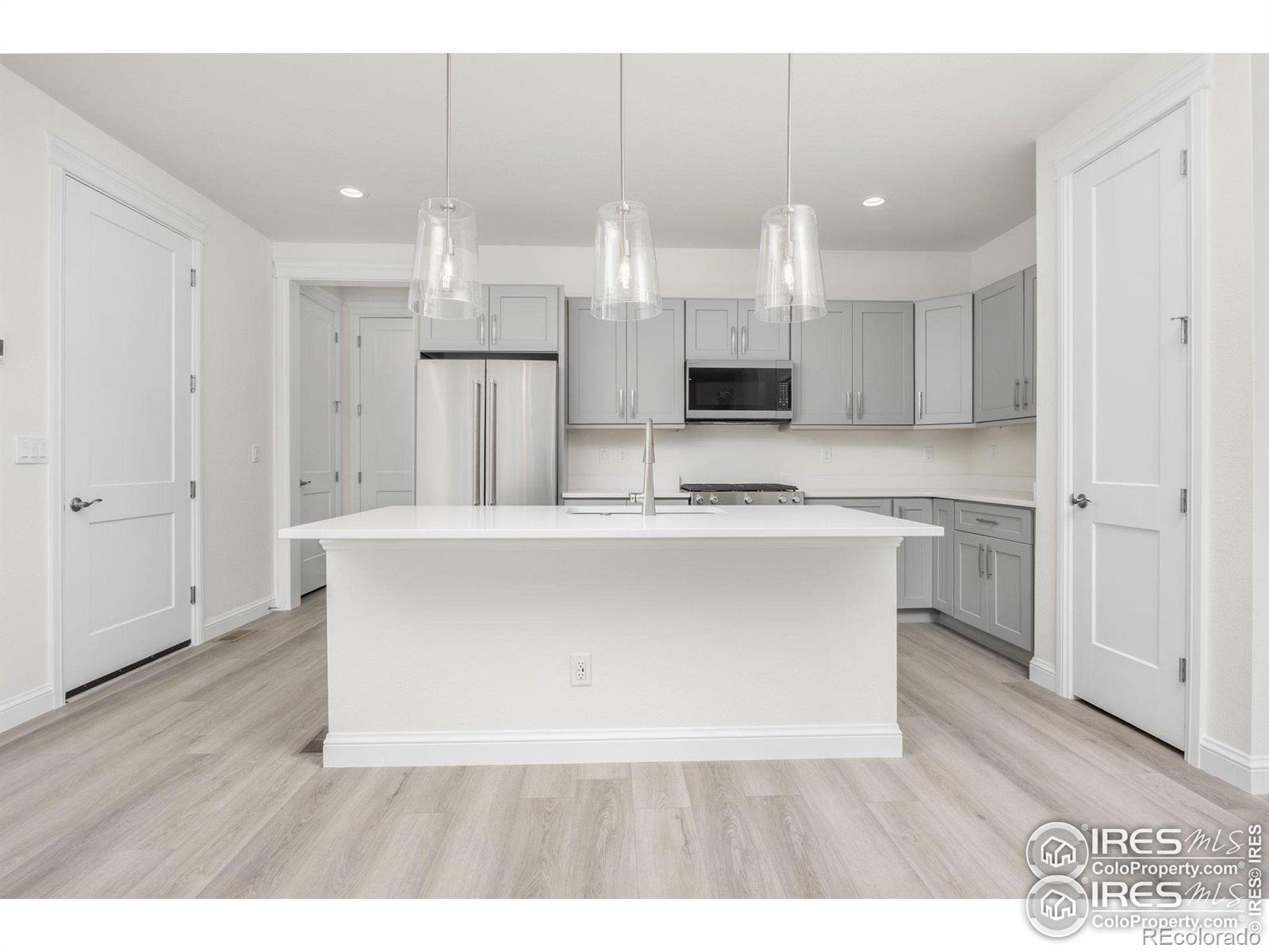 Builder offering incentives towards rate buy-down and closing costs! You will immediately notice the difference when you walk into your new home. This beautiful duplex home offers 9 foot ceilings with 8 foot doors on the main level. A large kitchen outfitted with top-of-the-line Kitchen Aid stainless steel appliances, endless cabinetry, pantry and large island is the show stopper of this home. Next to the kitchen there is room for a separate dining area and living room. Separated behind the kitchen is a powder bathroom, and a sizable attached two car garage with an 8 foot automatic garage door. Upstairs, there is a total of 3 bedrooms with double depth laundry room and shared bathroom with tub in the hall. The primary suite boasts an elegant tray ceiling, spacious walk-in closet and bathroom with double vanities and spa like shower. Don't forget your 5' fully encapsulated crawl space for all of your storage needs and access to a fully fenced side yard from your garage. This 3 bed, 2.5 bath home is one of the first available in this distinctive community with incredible views of the front range. Westerly is designed with almost 40% open space. The community will include miles of walking trails, parks, a future school site, and a Village Center. Additionally, "The Waypoint" amenity center welcomes you to lounge by the resort style pool, relax in the year round hot tub, workout in our large fitness facility, warm up by one of several fire pits, BBQ with friends, watch a game on the big screen or catch up with neighbors in the Latitude room with a coffee by the fireplace.