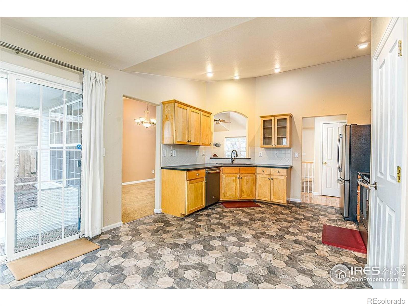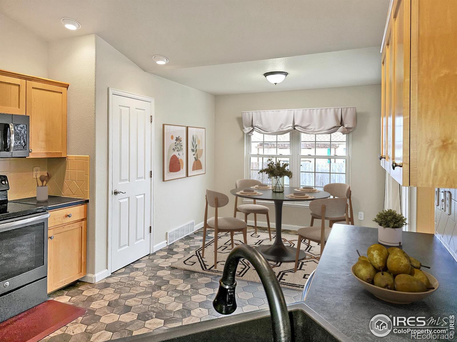 Original owner! This move-in-ready ranch-style home in the highly sought-after Kelly Farms community in West Greeley features an inviting spacious eat-in kitchen with newer stainless steel appliances and a bright, well-lit pantry. Highlights include walk-in closets, main-floor laundry, updated kitchen and bathrooms including a unique, one-of-a-kind hydro-therapy dual shower, gas fireplace, full finished basement, picturesque covered front porch, and a covered back patio. Other features are a well-maintained lawn, water hookups in the family room for a potential wet bar, a complete surround sound system, an oversized garage that accommodates a full-size truck, security system, outdoor natural gas line for a BBQ grill, five-year-old fence, and raised garden beds. Kelly Farms provides membership options that offer access to the pool, clubhouse, gym, playground, park, and courts, along with convenient access to UNC, Poudre River Trail, local dining, shopping, three golf courses, and Highway 34. It is also known for it beautiful tree-lined streets, giving the neighborhood a mature, landscaped, and pleasant feel. Some images in this listing have been virtually staged to demonstrate potential use of space.