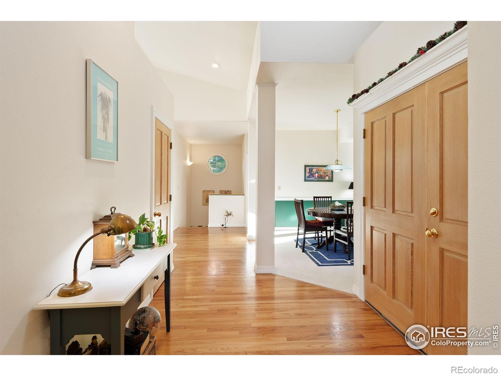 Ring in the New Year in this lovingly cared for home in The Mallards at The Landings. The original owner has meticulously maintained and has thoughtfully made many updates to this home. The welcoming entryway is bright and inviting- so come on in! Flooded with natural light you'll find over 2000 square feet on the main level with well planned spaces including a private owners suite, two additional bedrooms (or an optional office), a vaulted living room, formal dining room, a large eat in kitchen as well as a main level laundry room. The primary suite has a full 5-pc. bath, a walk in closet and private access to the deck. Design features include extensive use of hardwood flooring, skylights, arches, walk in closets, vaulted ceilings, refurbished cabinets, wood doors, new carpeting, and custom window treatments. The 2 car attached garage enters conveniently to the laundry room. Outside you will find a fenced yard, sprinkler and drip systems, a flagstone patio and a terrific deck! There is an unfinished basement for future expansion, and a partial crawl space that makes for great storage. This property comes with full access to all of the amenities in The Landings- including access on the coveted private Warren Lake which is an incredible resource offering fishing, paddleboarding, enjoyment of nature and more - right in the heart of Fort Collins. You will also enjoy the private pool, walking trails, greenbelts, and tennis. Come see this great home!!