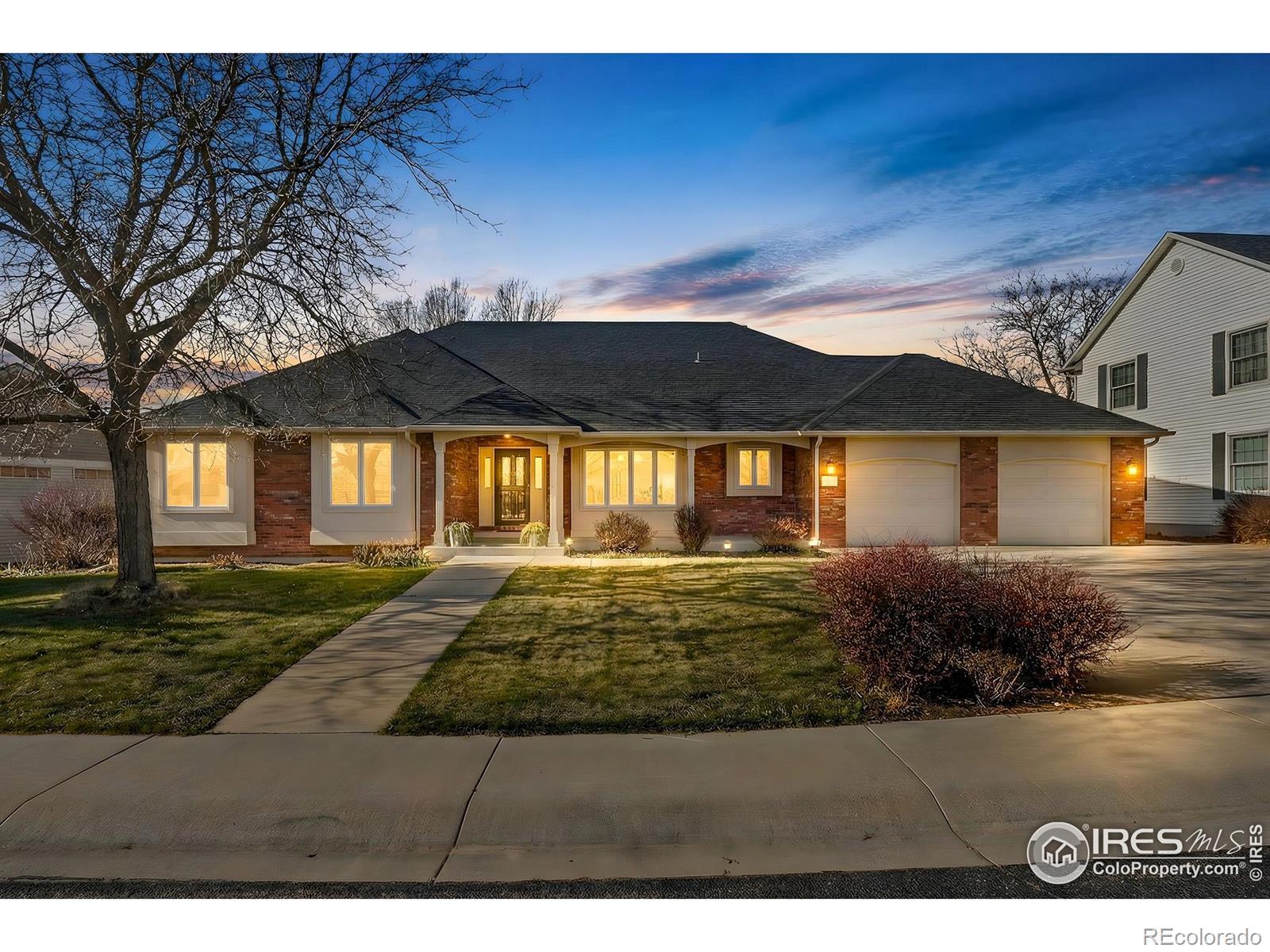 Sprawling brick ranch in the highly coveted Hawkstone Subdivision! This bright and open home features vaulted ceilings and over 2,100 sq ft on the main level, offering 3 bedrooms, 2 baths, laundry, a spacious kitchen with island, updated stainless appliances, granite counters, and an inviting living room with gas fireplace. Enjoy both an eat-in kitchen and formal dining area. The large primary suite includes dual closets, an updated bath, and access to a private patio. The finished basement expands the living space with two generous rec/family rooms, a bedroom and bath, an office/non-conforming 5th bedroom, plus a huge storage room with second laundry and workshop. The oversized heated garage with water line adds even more convenience. Recent updates include a newer furnace, A/C, roof, and tankless water heater with re-circ pump. The backyard is an entertainer's dream with a covered patio, fenced yard, mature landscaping and direct access to the walking path. Hawkstone is a true golf cart community with access to Eaton Country Club, pool, parks, and trails. This home has it all-schedule your private tour today!